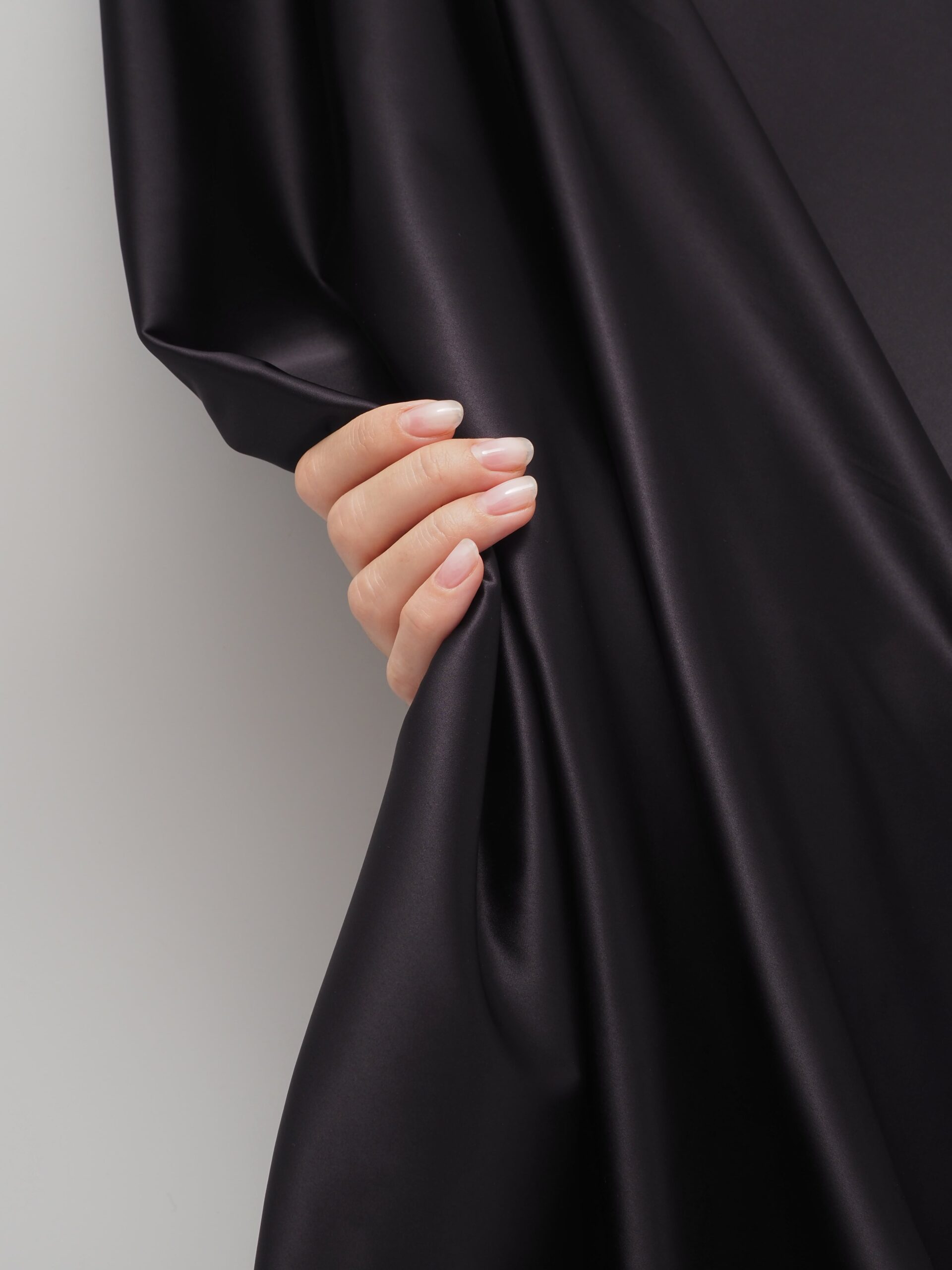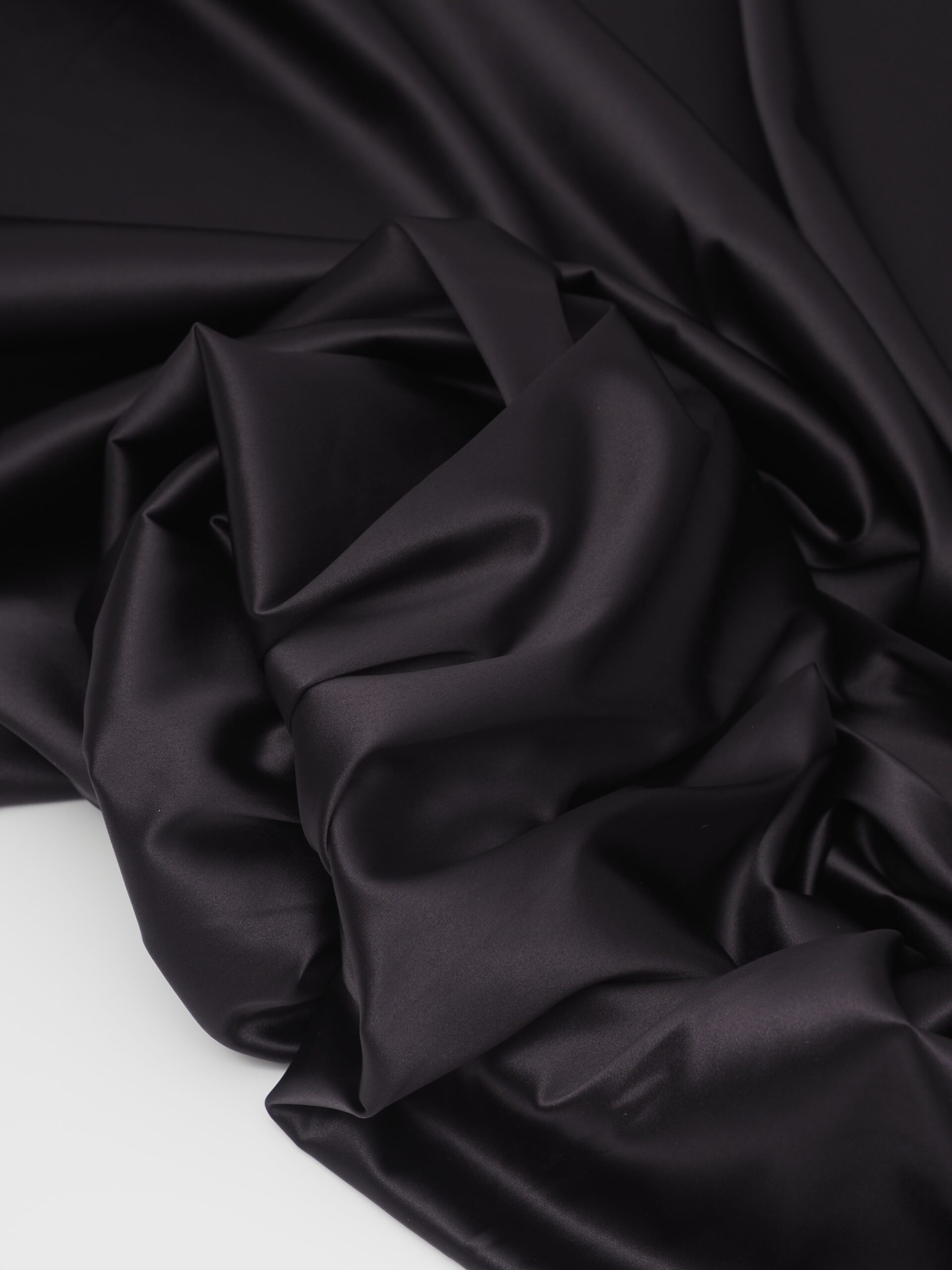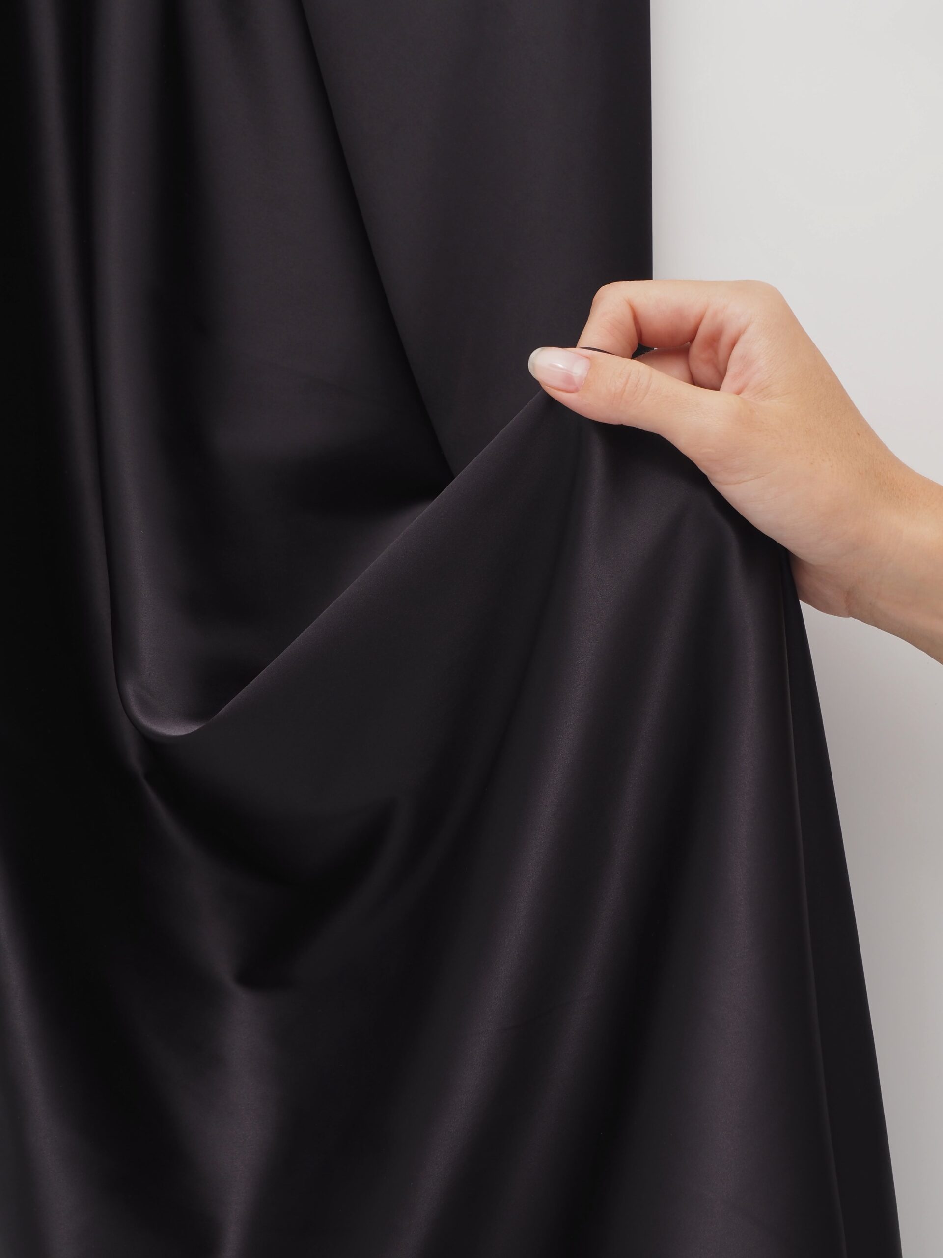 Атлас эластичный глянцевый односторонний. Сатин черного оттенка бельевой.