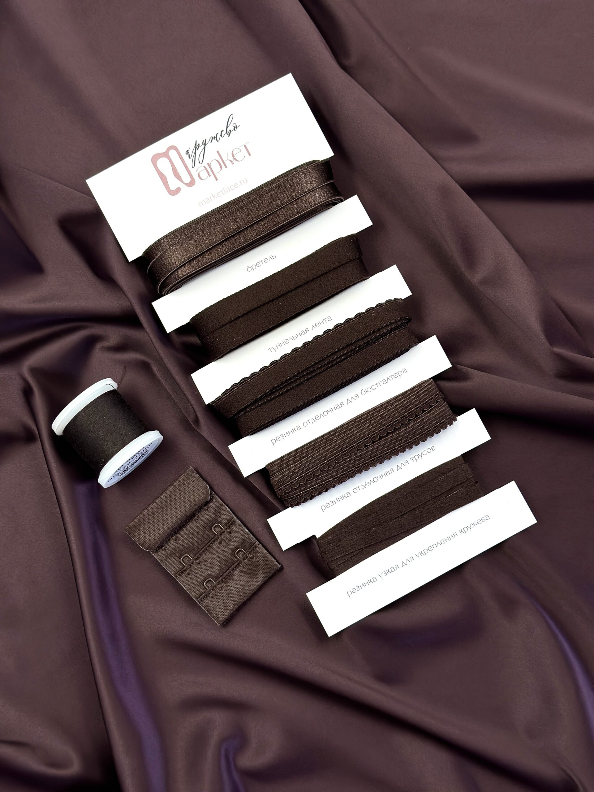 Атлас эластичный глянцевый односторонний. Сатин коричневого оттенка бельевой. Отличается от резинок шоколад оттенком на полтона.