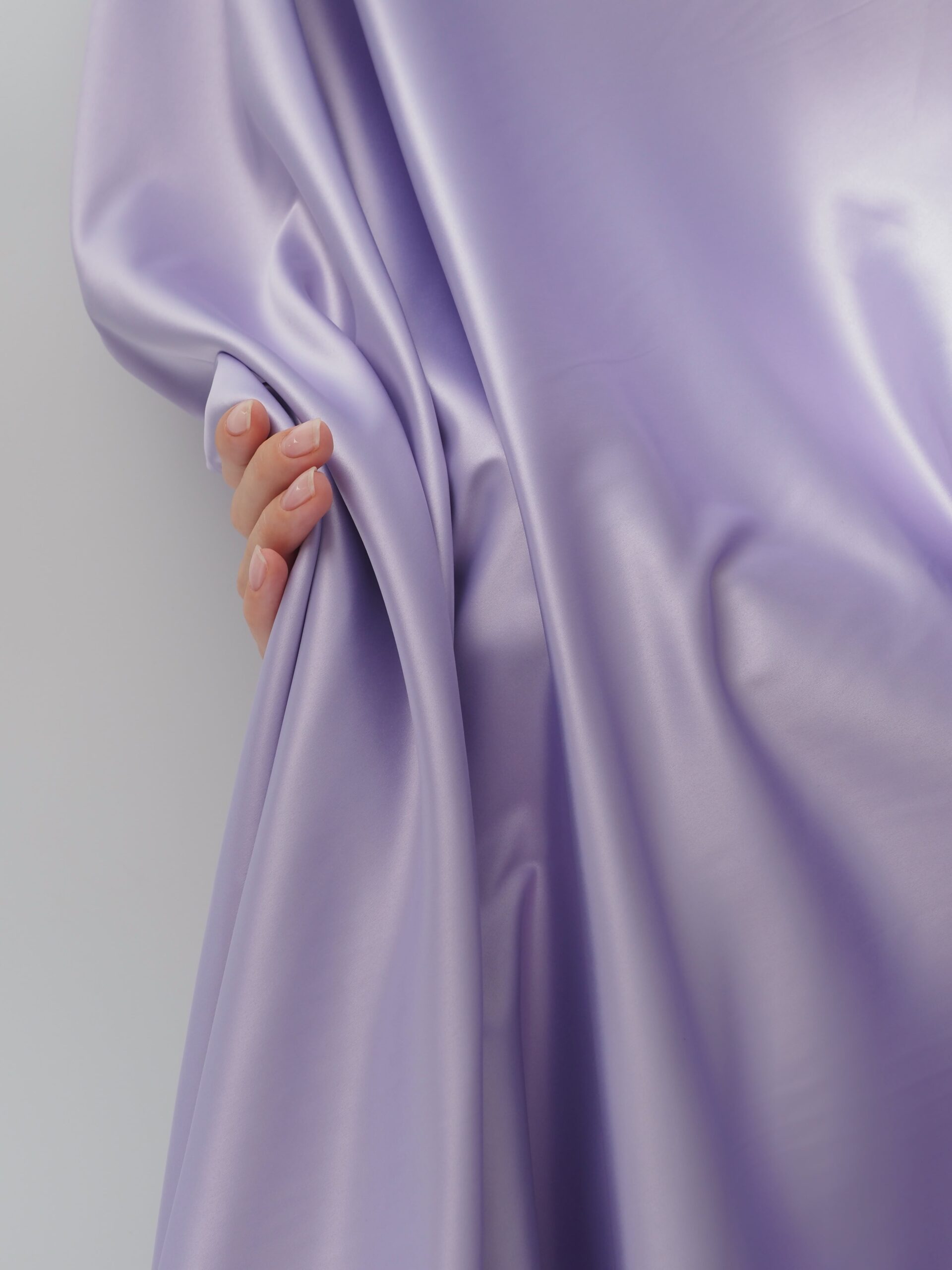 Атлас стрейч яркая лаванда - лёгкая, приятная к телу ткань, основа состава это полиэстер и эластан. Ткань тянется по утку (поперечное сечение). Сатин очень тонкий, но при этом имеет достаточную плотность, что делает его упругим. Ткань хорошо "дышит", отводит влагу, а при низких температурах не холодит тело. Атлас эластичный, практичный, медленно изнашивается, не даёт усадку. Подходит для пошива купальников, нижнего белья, вечерних платьев, платков и другой повседневной одежды.