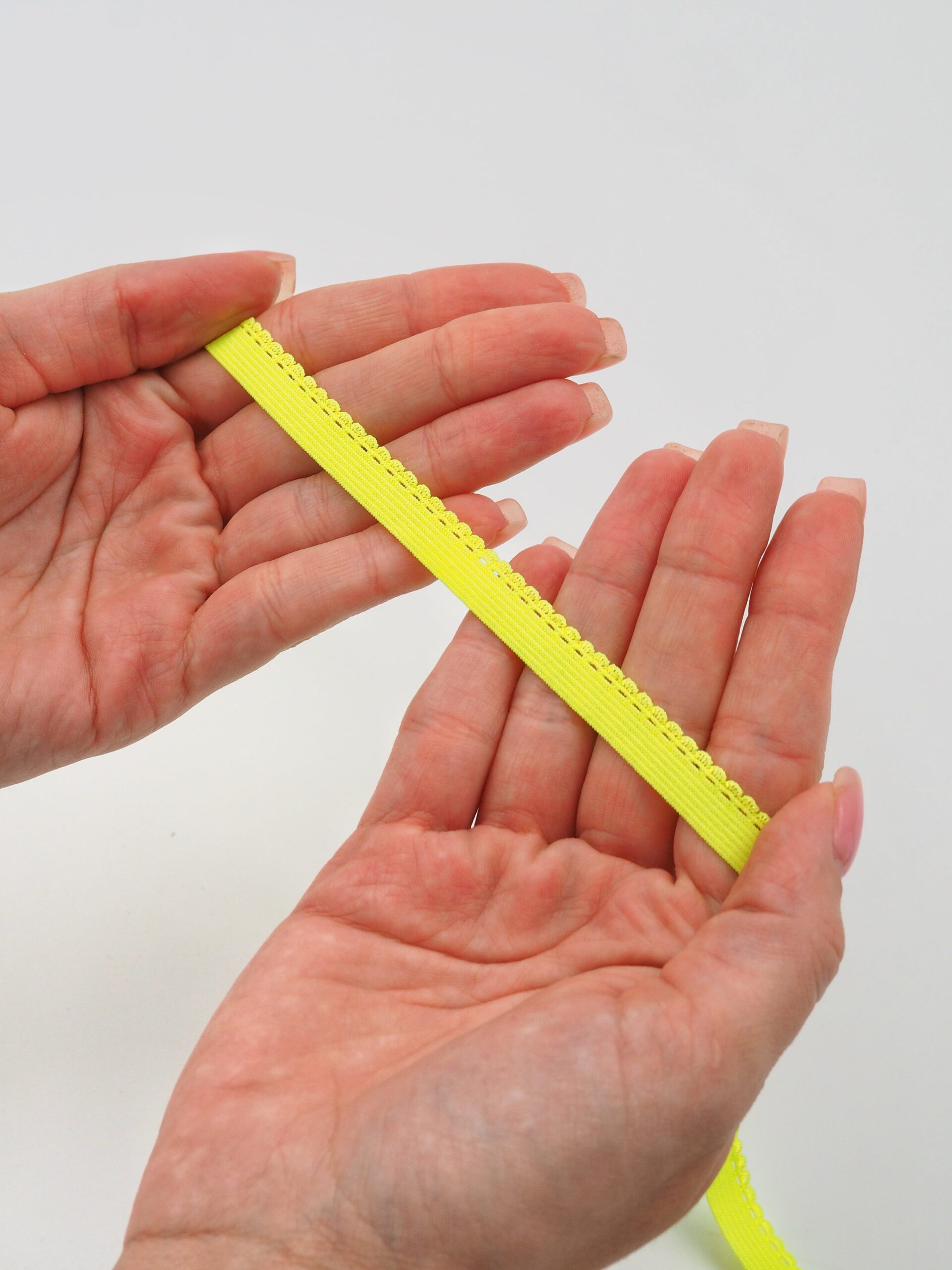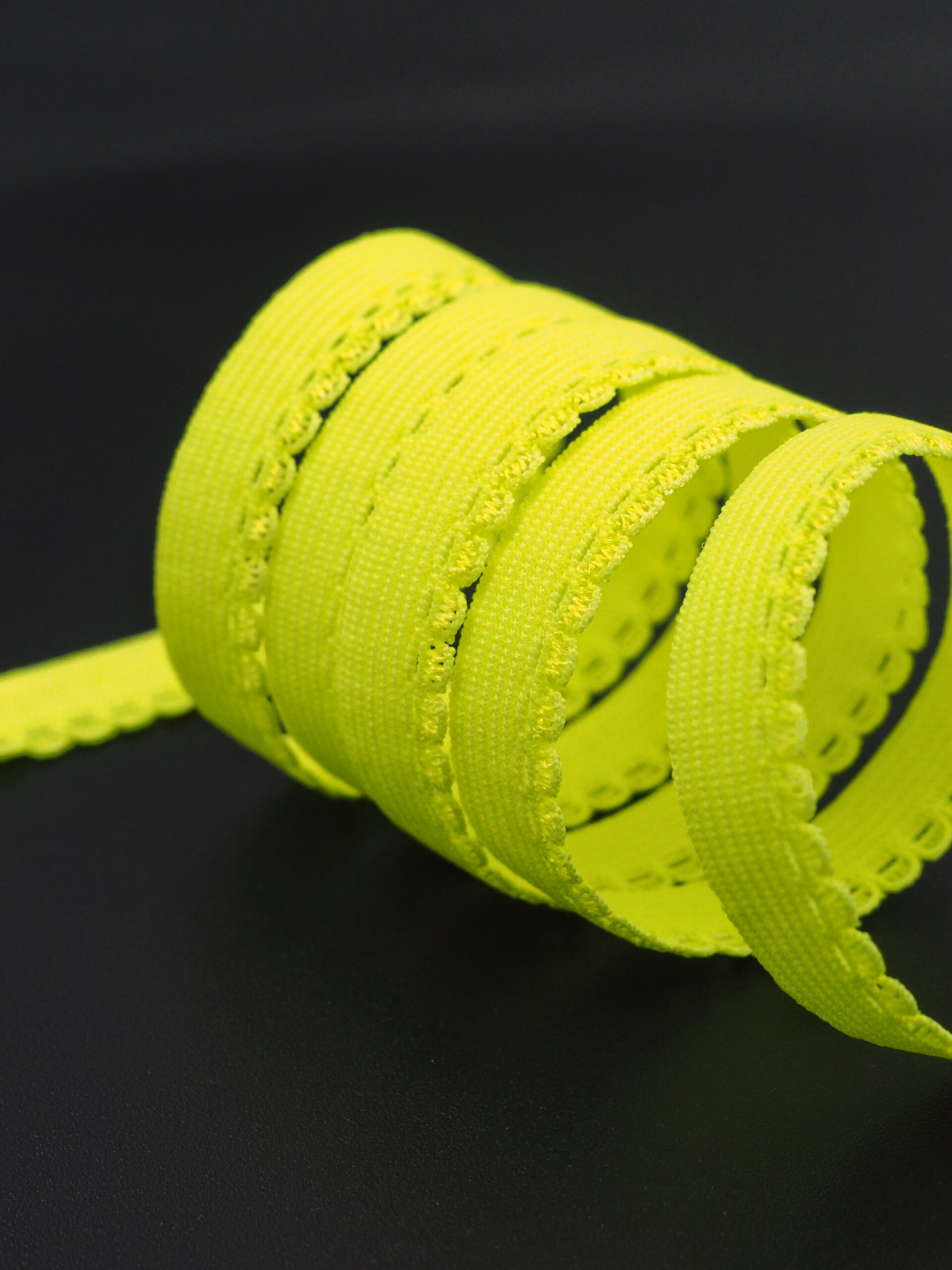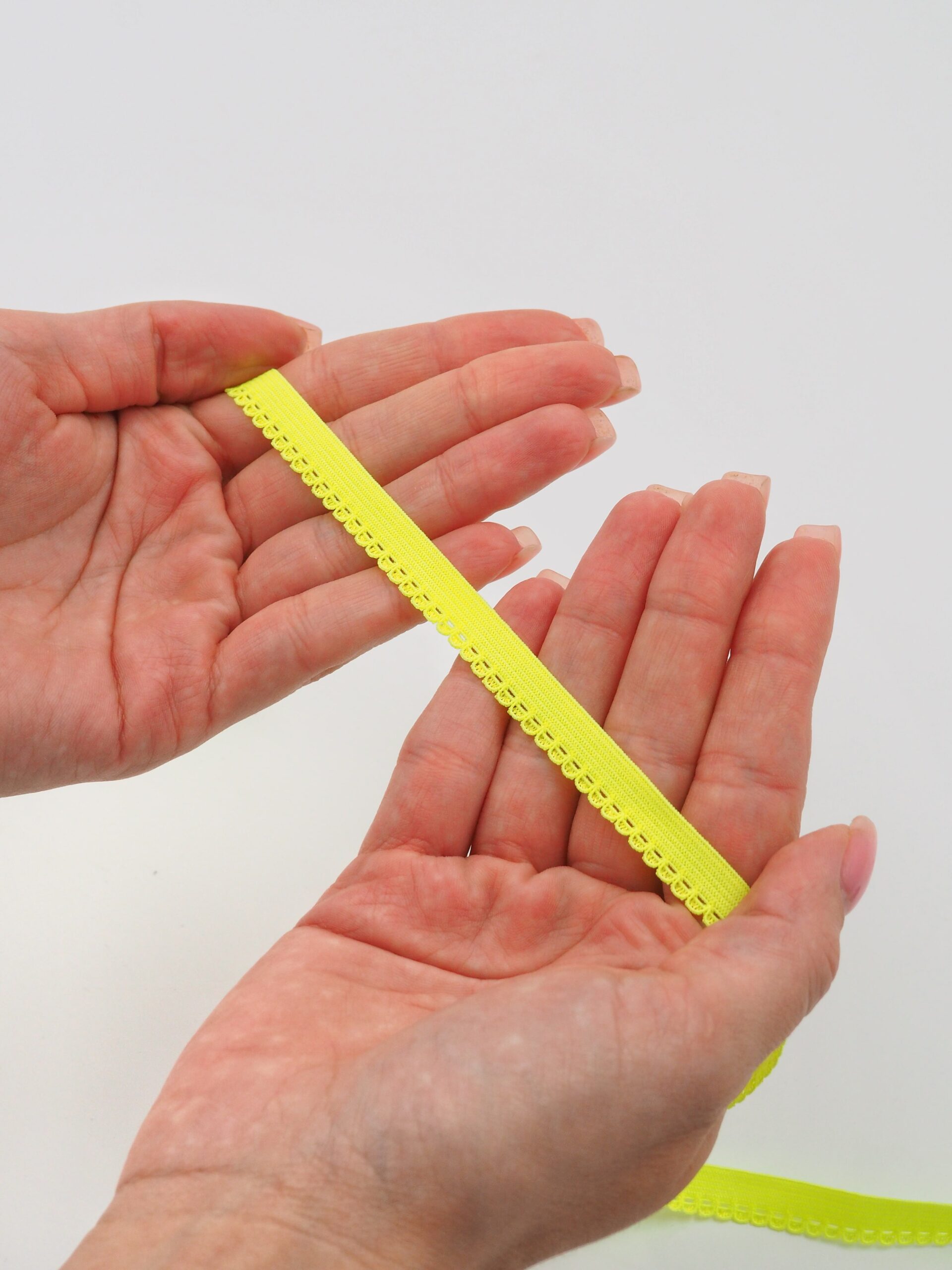 Резинка бельевая отделочная ажурная тонкая желтого оттенка. Лента эластичная тонкая лимон-лайм.