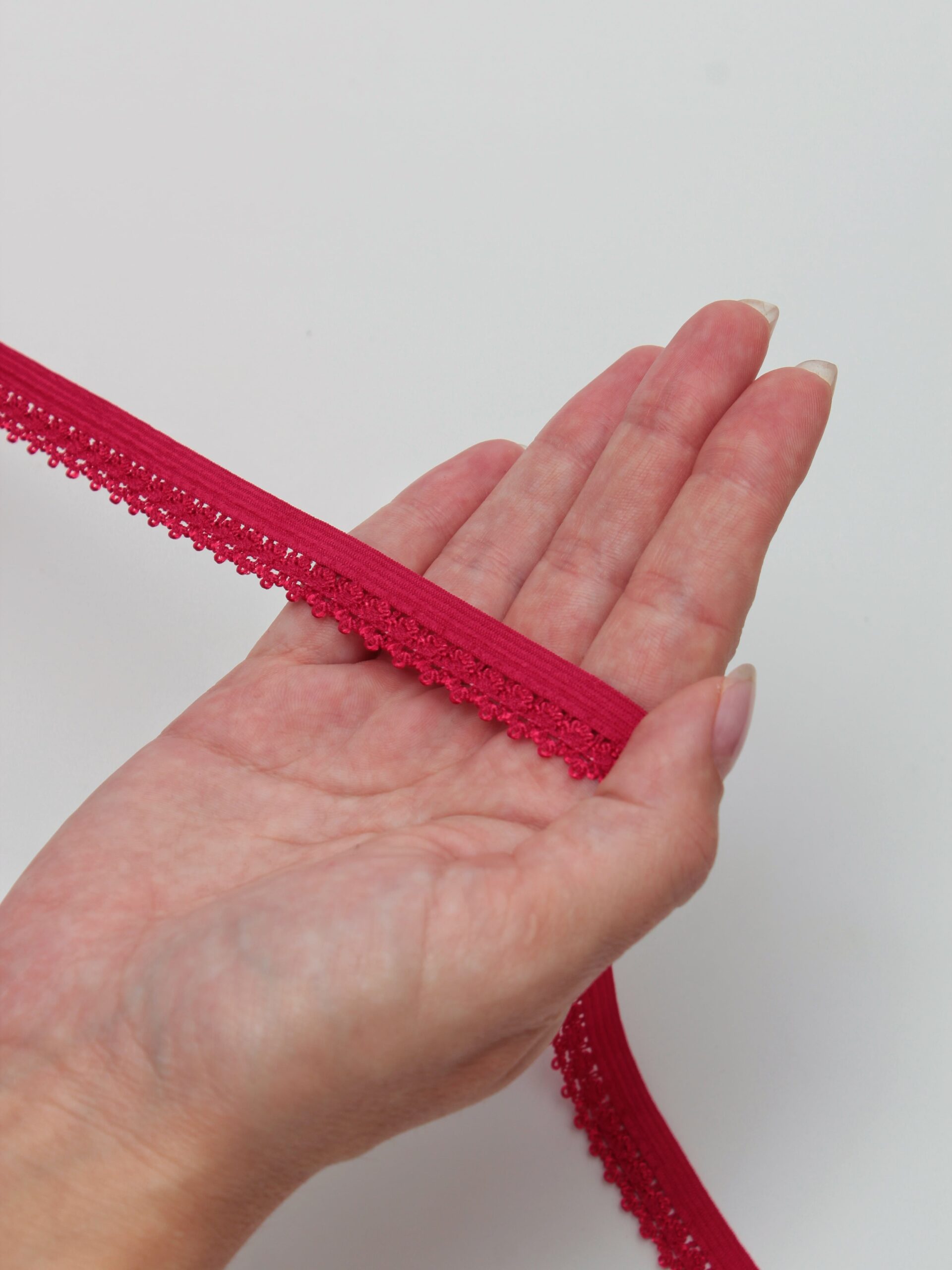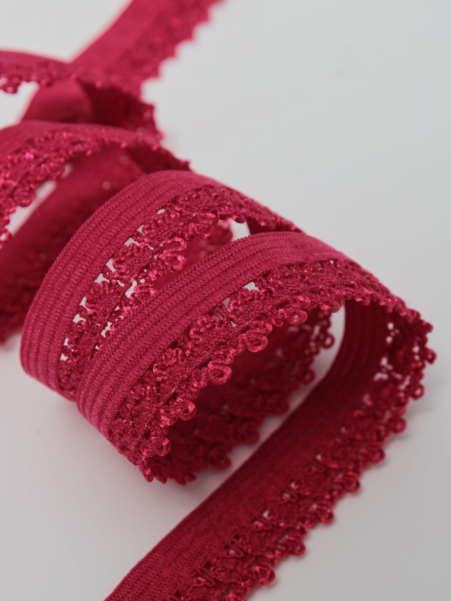Резинка бельевая отделочная ажурная тонкая красного оттенка. Лента эластичная тонкая малиново-красная.