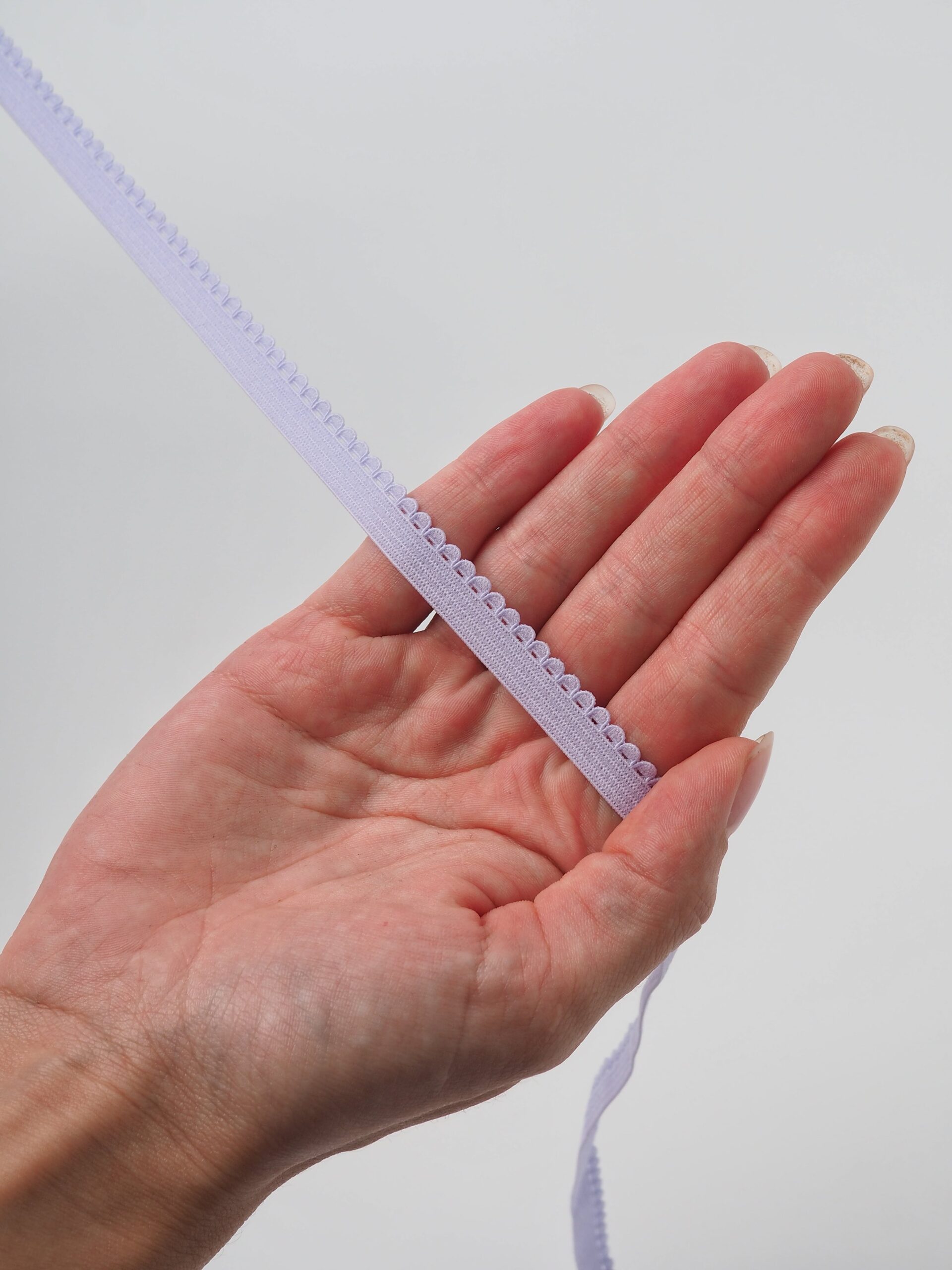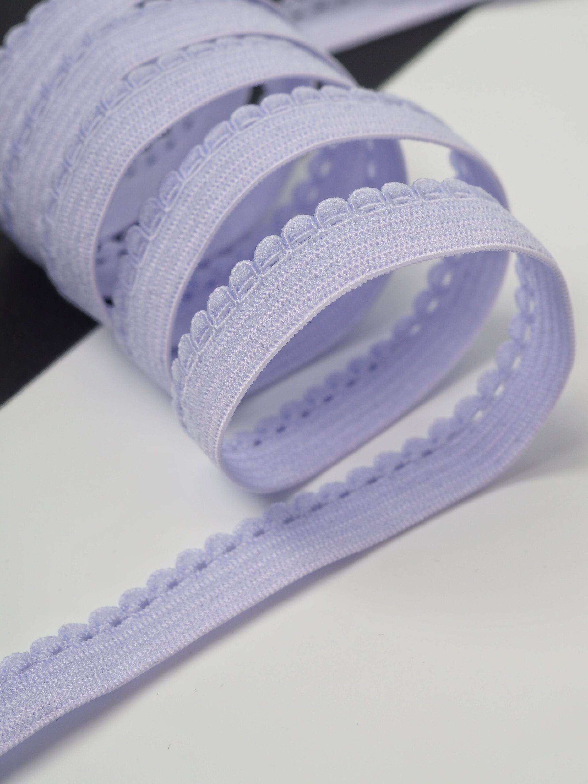 Резинка бельевая отделочная ажурная тонкая фиолетового оттенка. Лента эластичная тонкая орхидея.