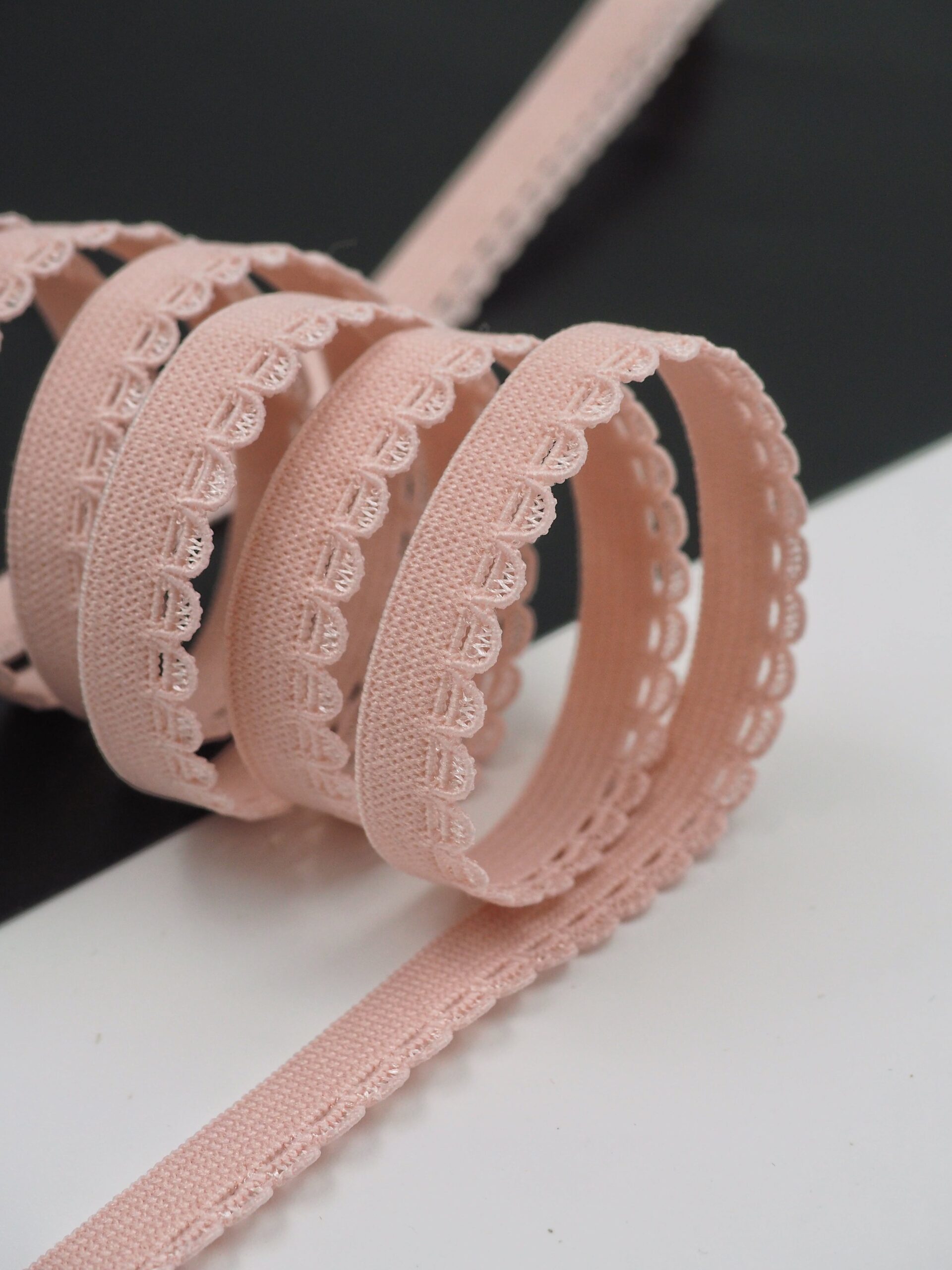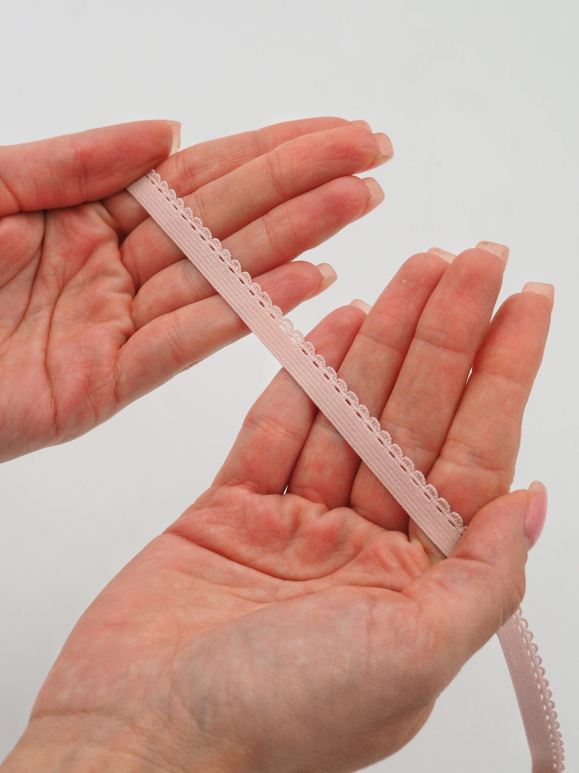 Резинка бельевая отделочная ажурная тонкая пудрового оттенка. Лента эластичная тонкая пудровая.
