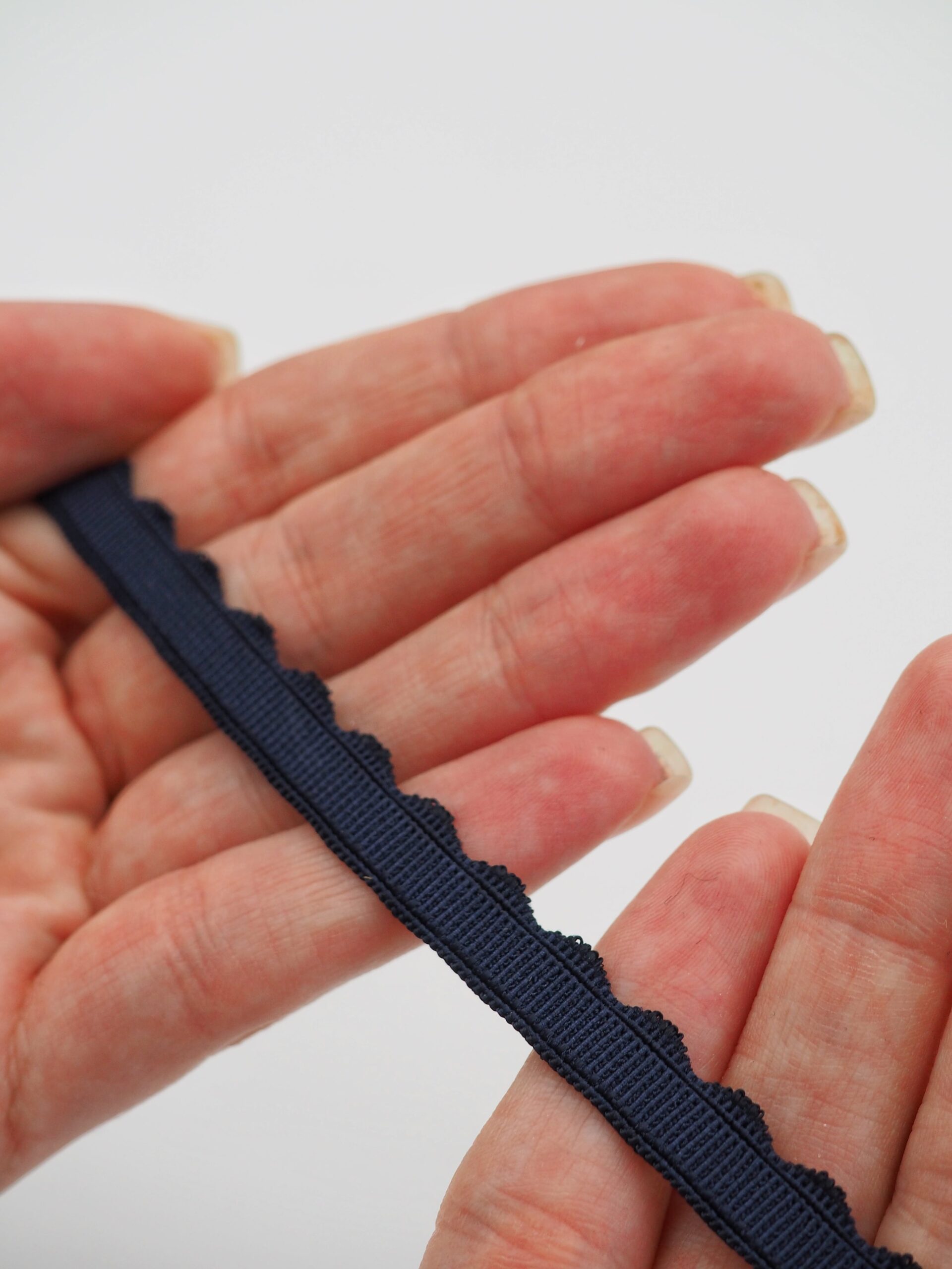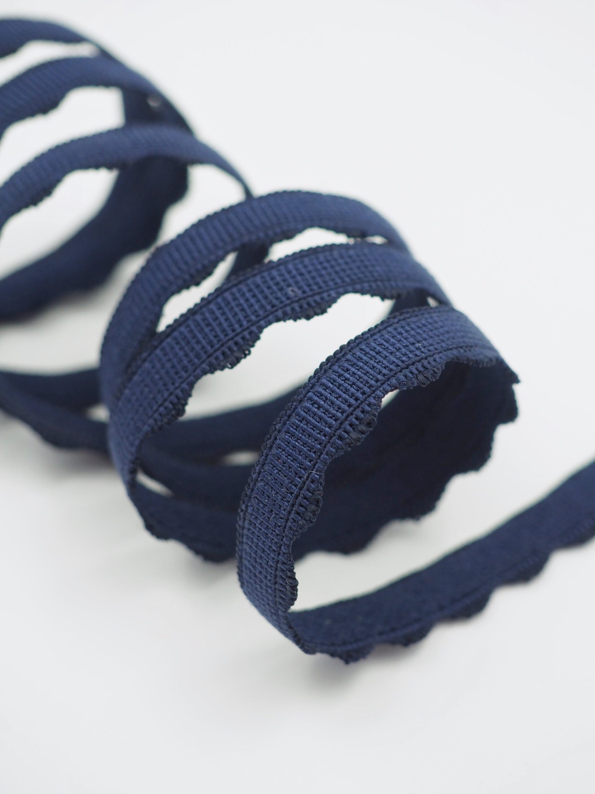 Резинка бельевая отделочная ажурная тонкая синего оттенка. Лента эластичная тонкая темно-синяя.