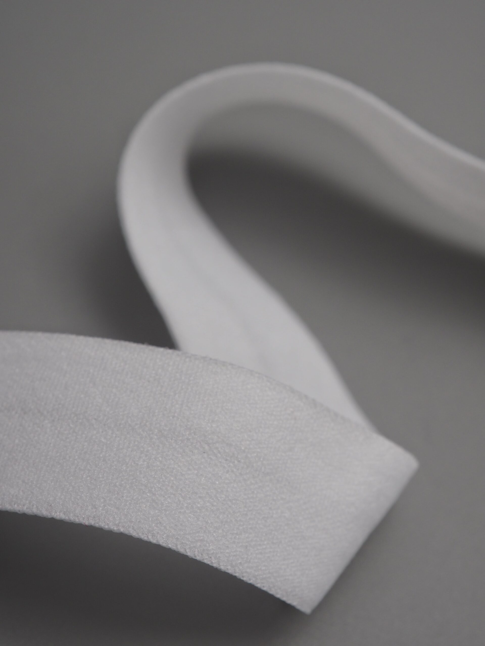 Бейка косая стрейч окантовочная текстильная холодного белого оттенка. Ширина бейки 15 мм +- 1 мм.