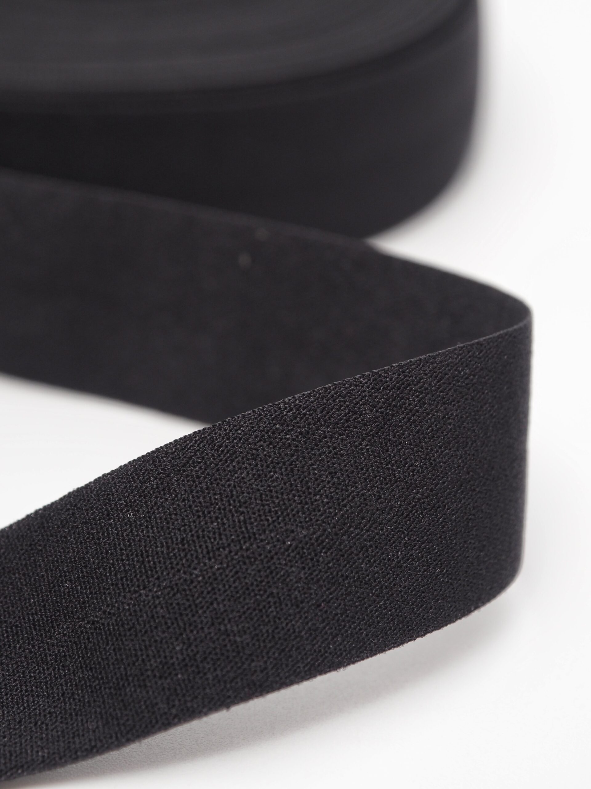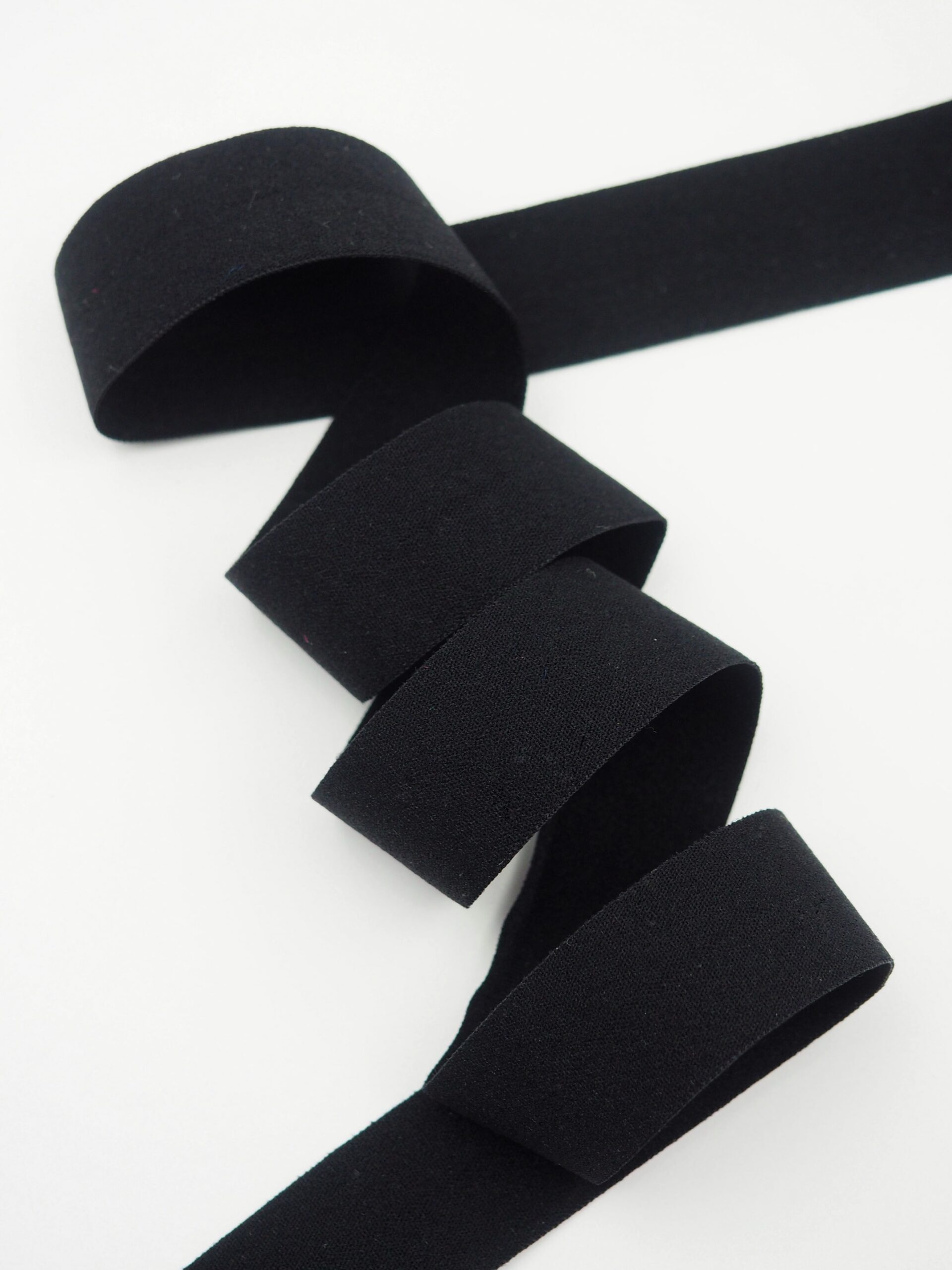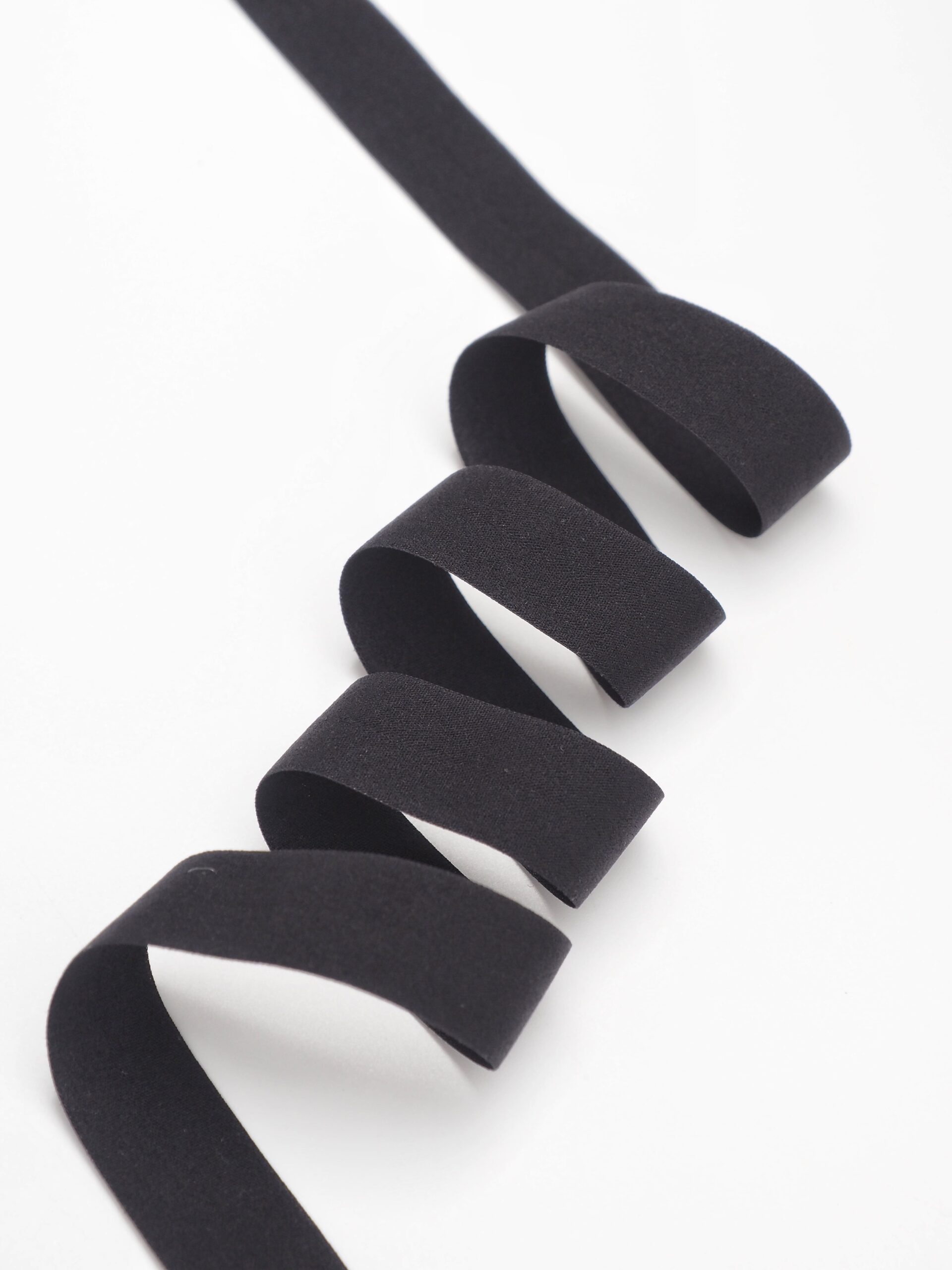 Бейка косая стрейч окантовочная текстильная черного оттенка.