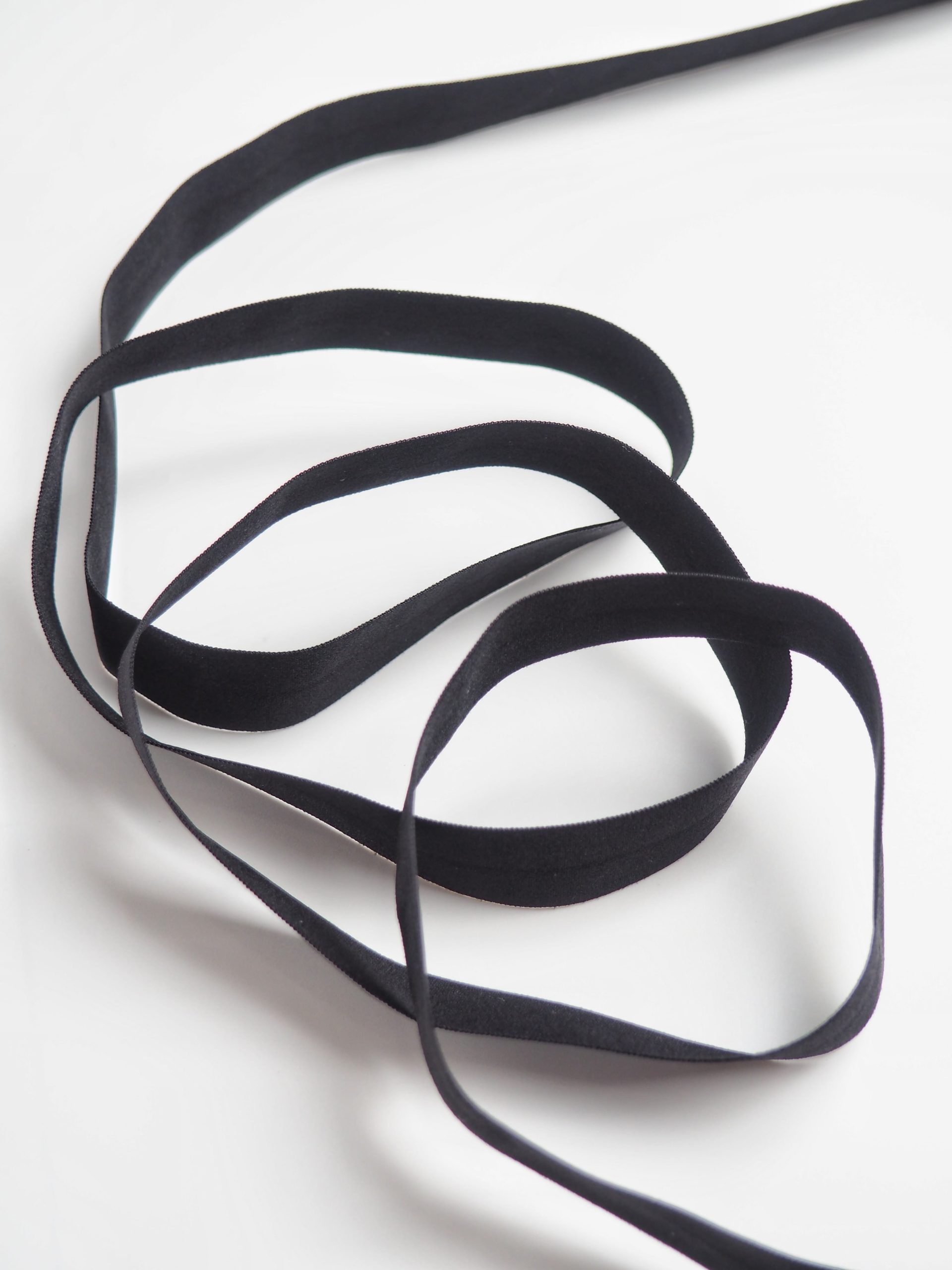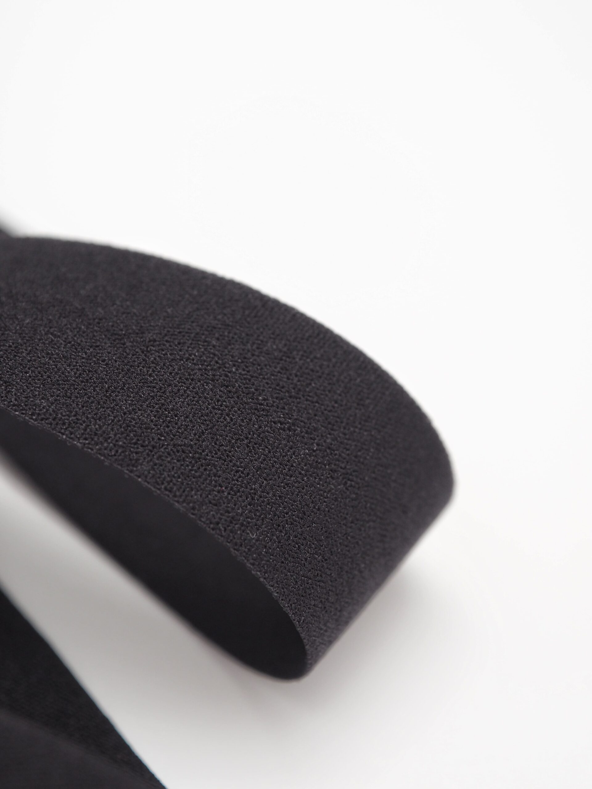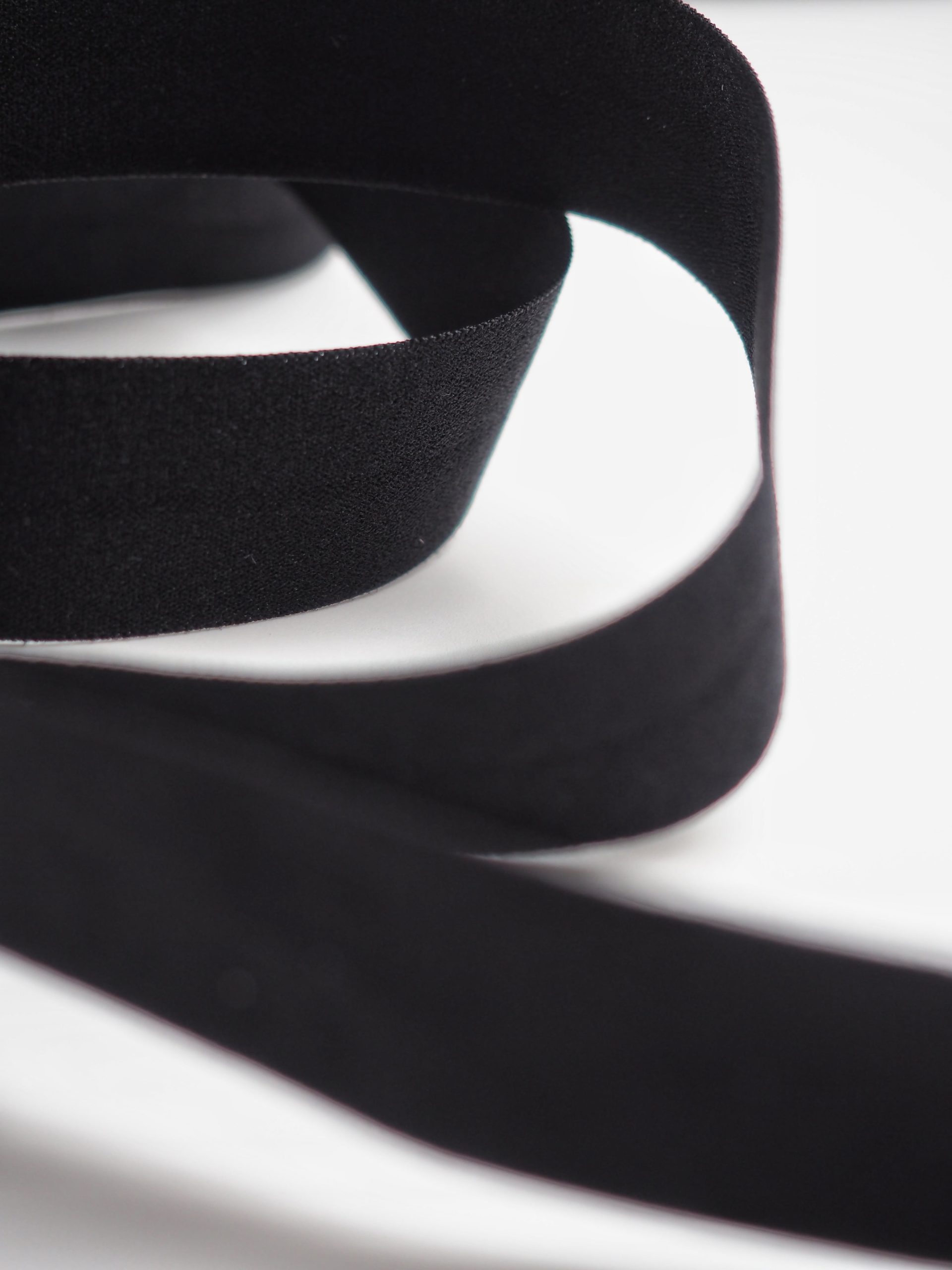 Бейка косая стрейч окантовочная текстильная черного оттенка.