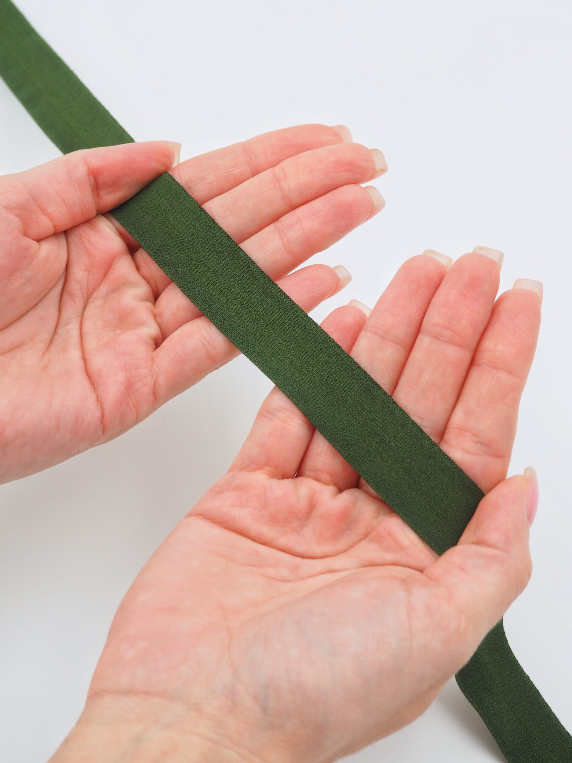 Бейка косая стрейч окантовочная текстильная зеленого оттенка.