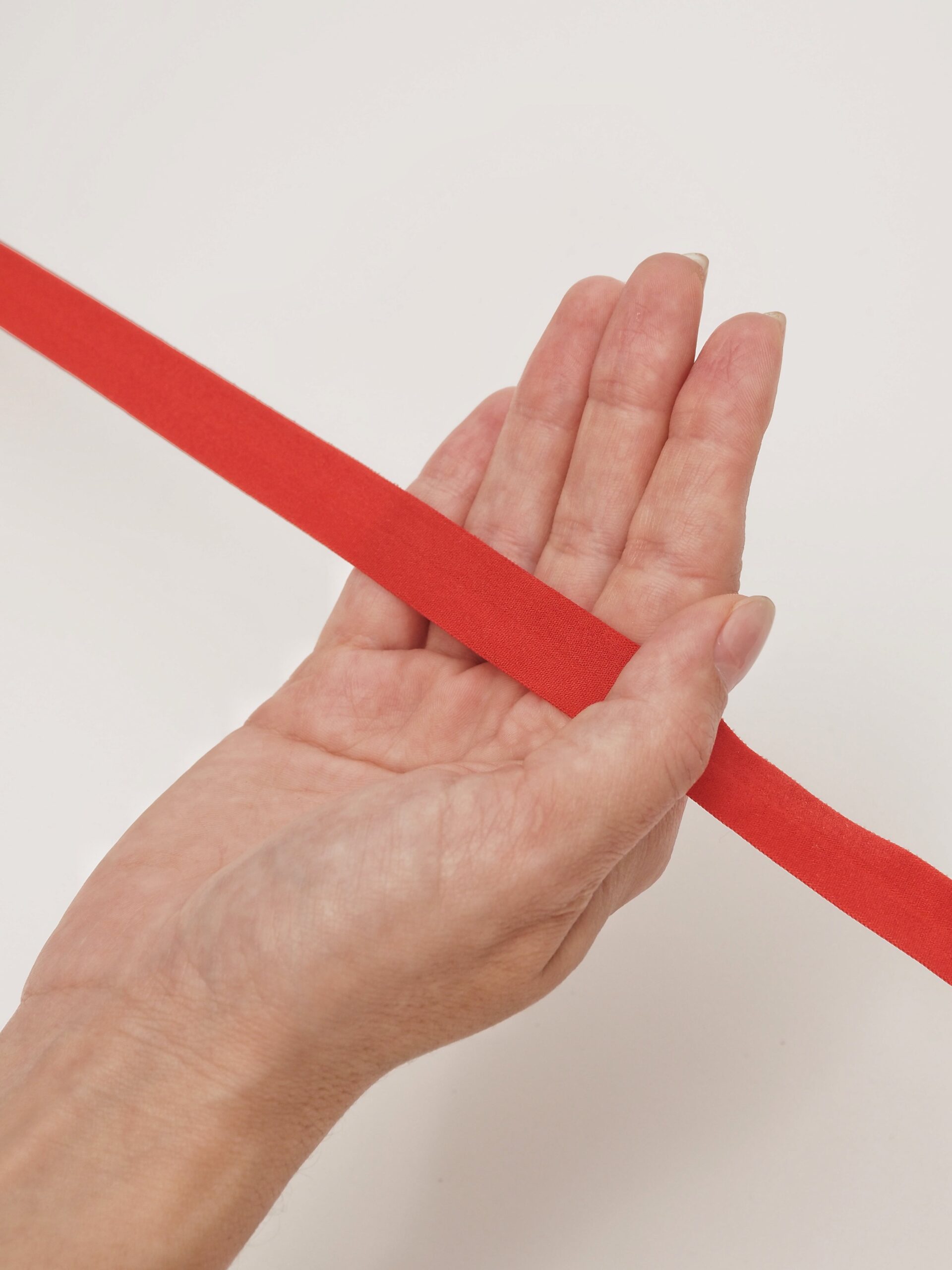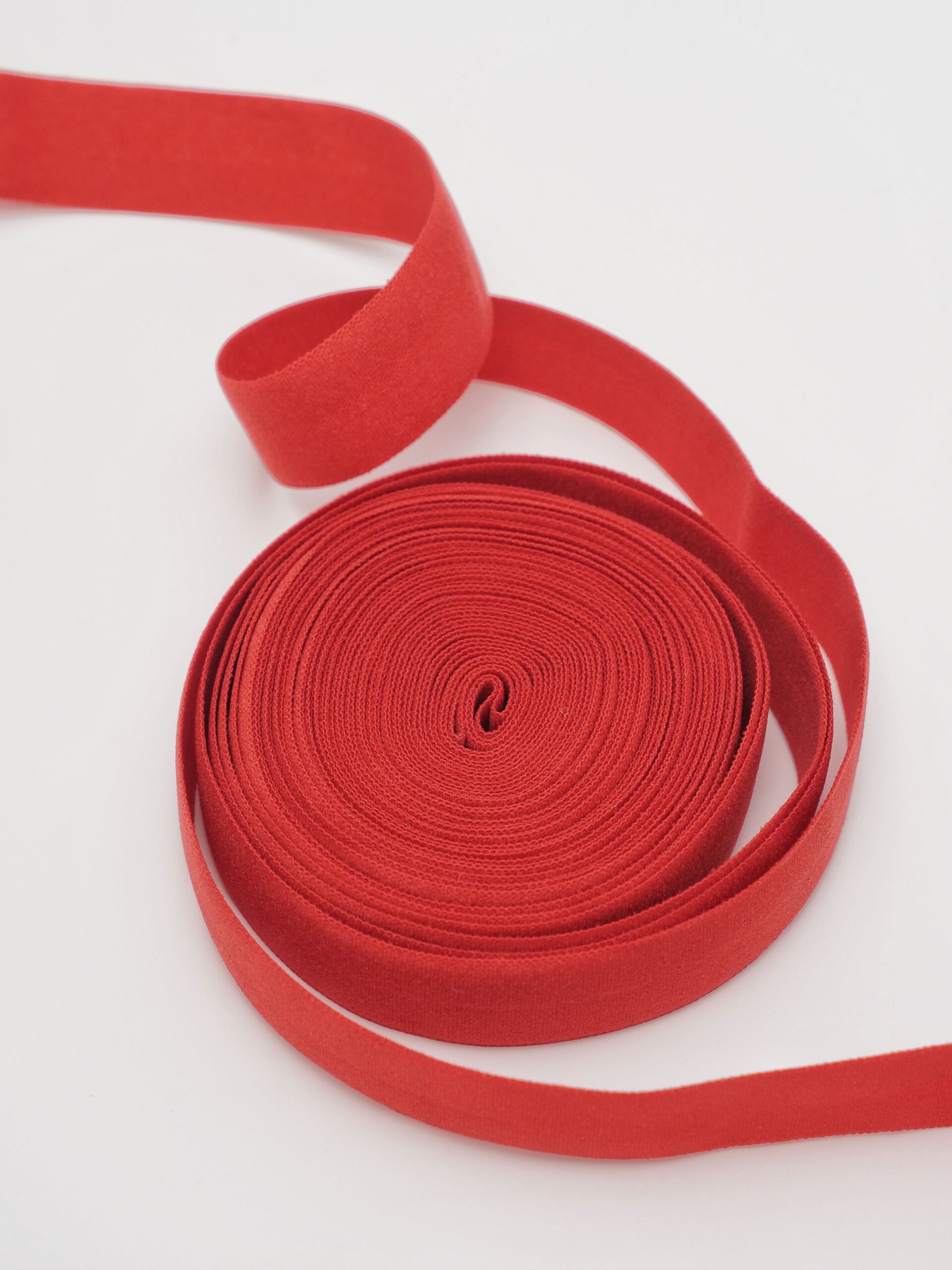 Бейка косая стрейч окантовочная текстильная красного оттенка. Ширина бейки 15 мм +- 1 мм.