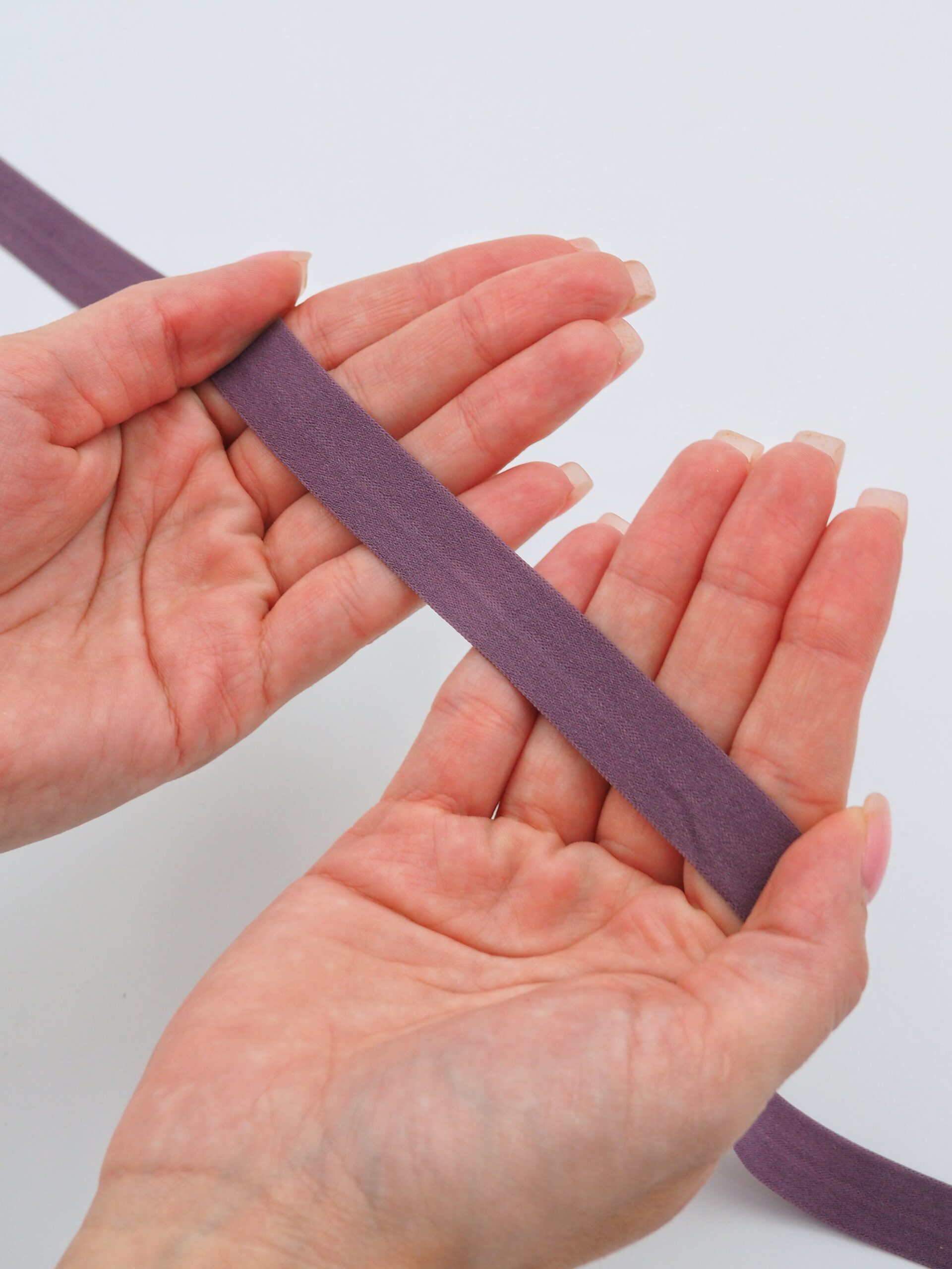 Бейка косая стрейч окантовочная текстильная фиолетового оттенка.