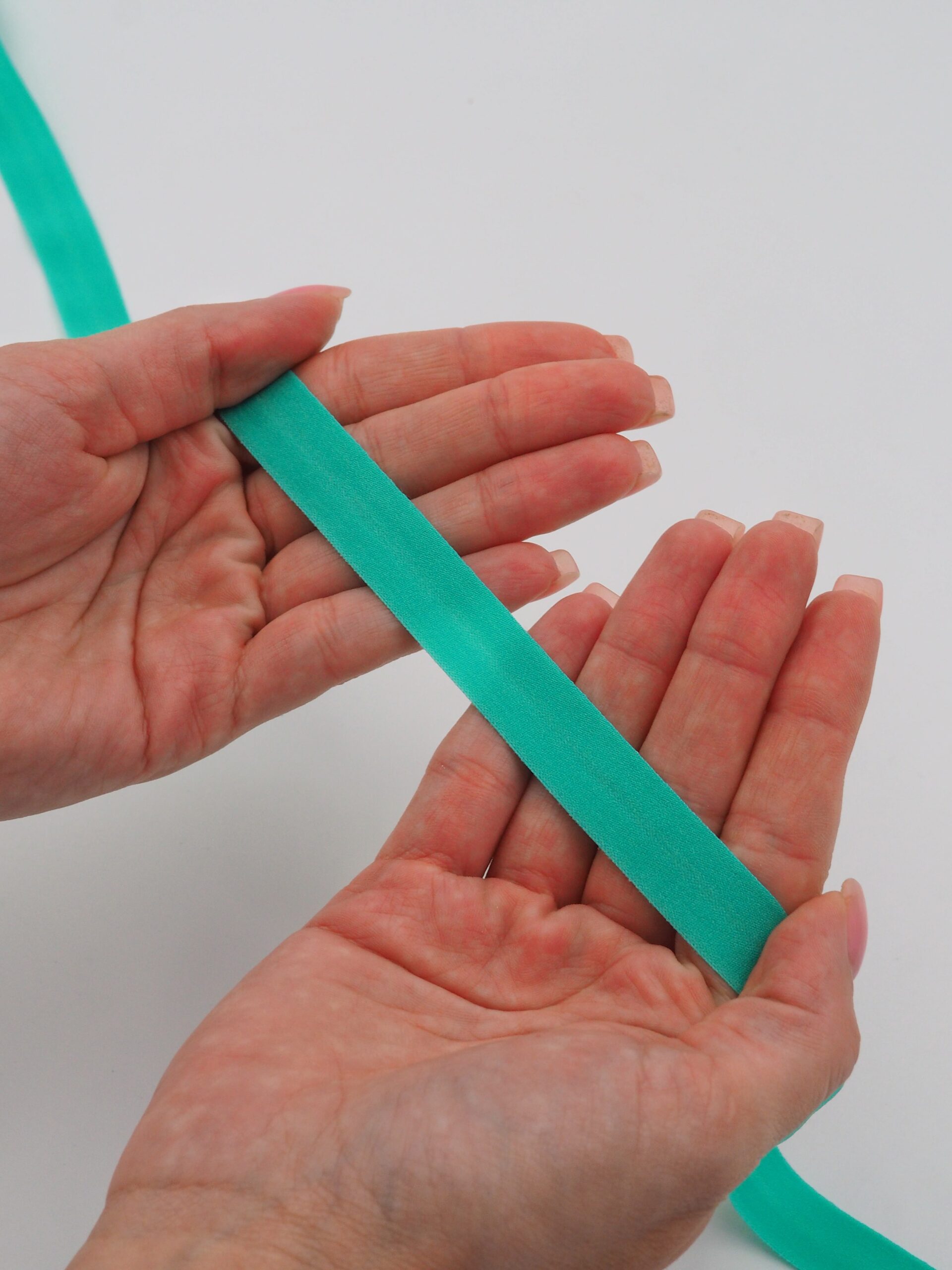 Бейка косая стрейч окантовочная текстильная мятного оттенка.