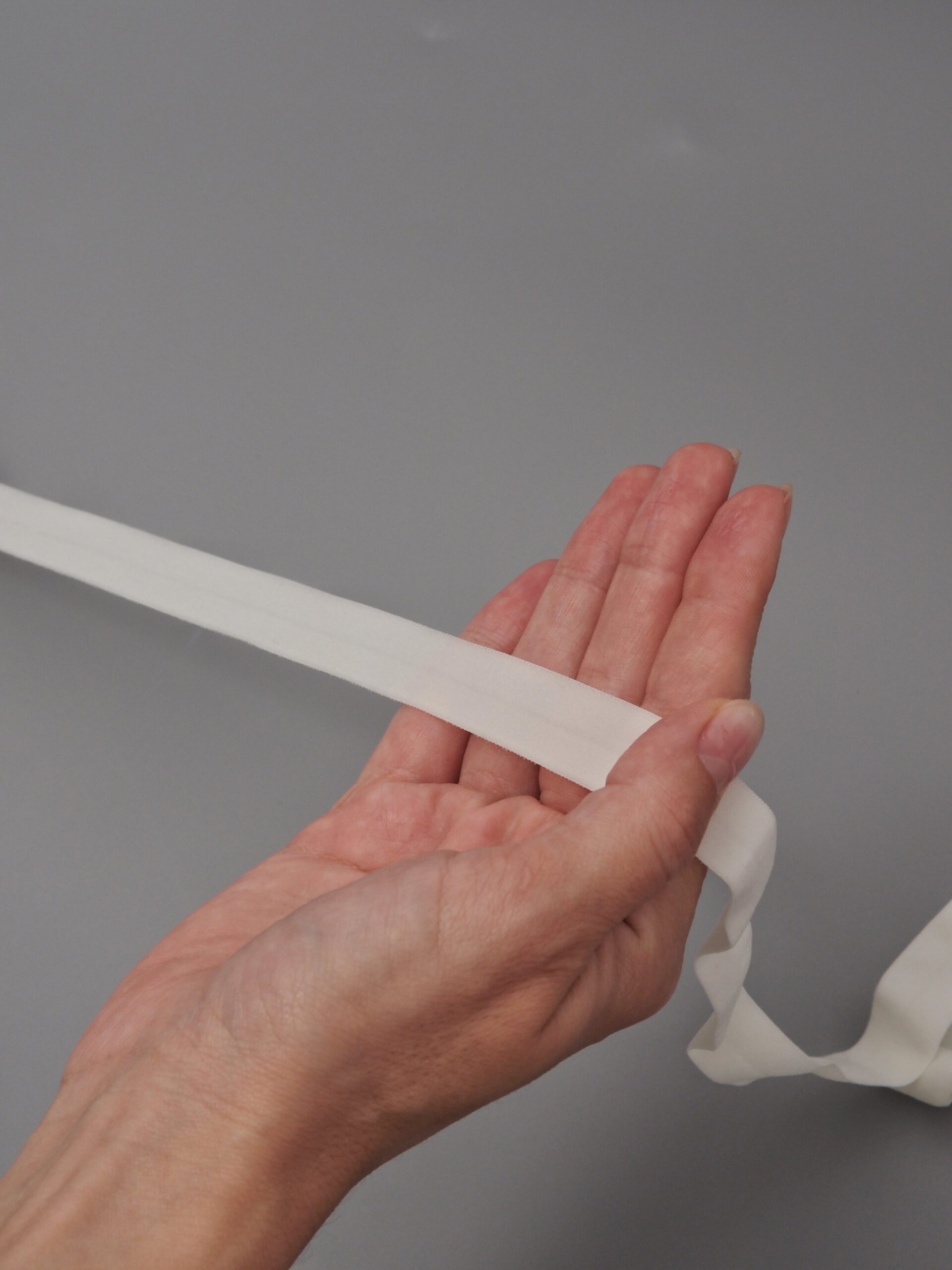 Бейка косая стрейч окантовочная текстильная кремового оттенка.