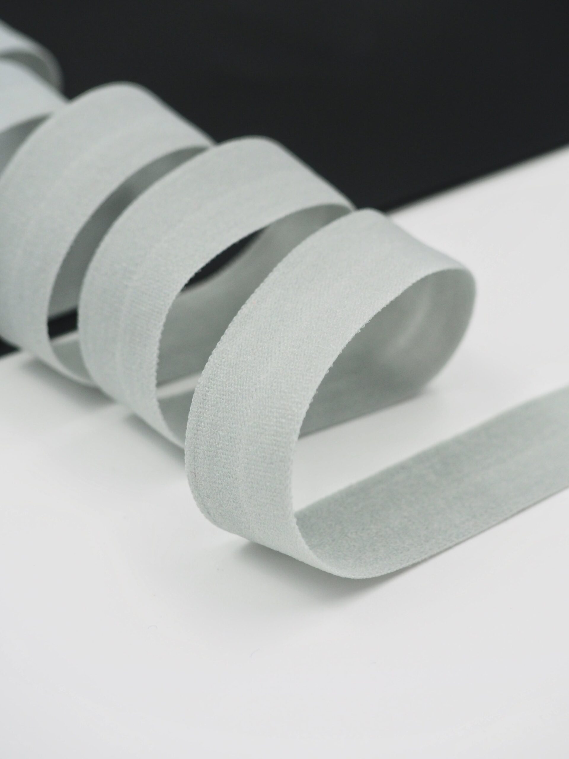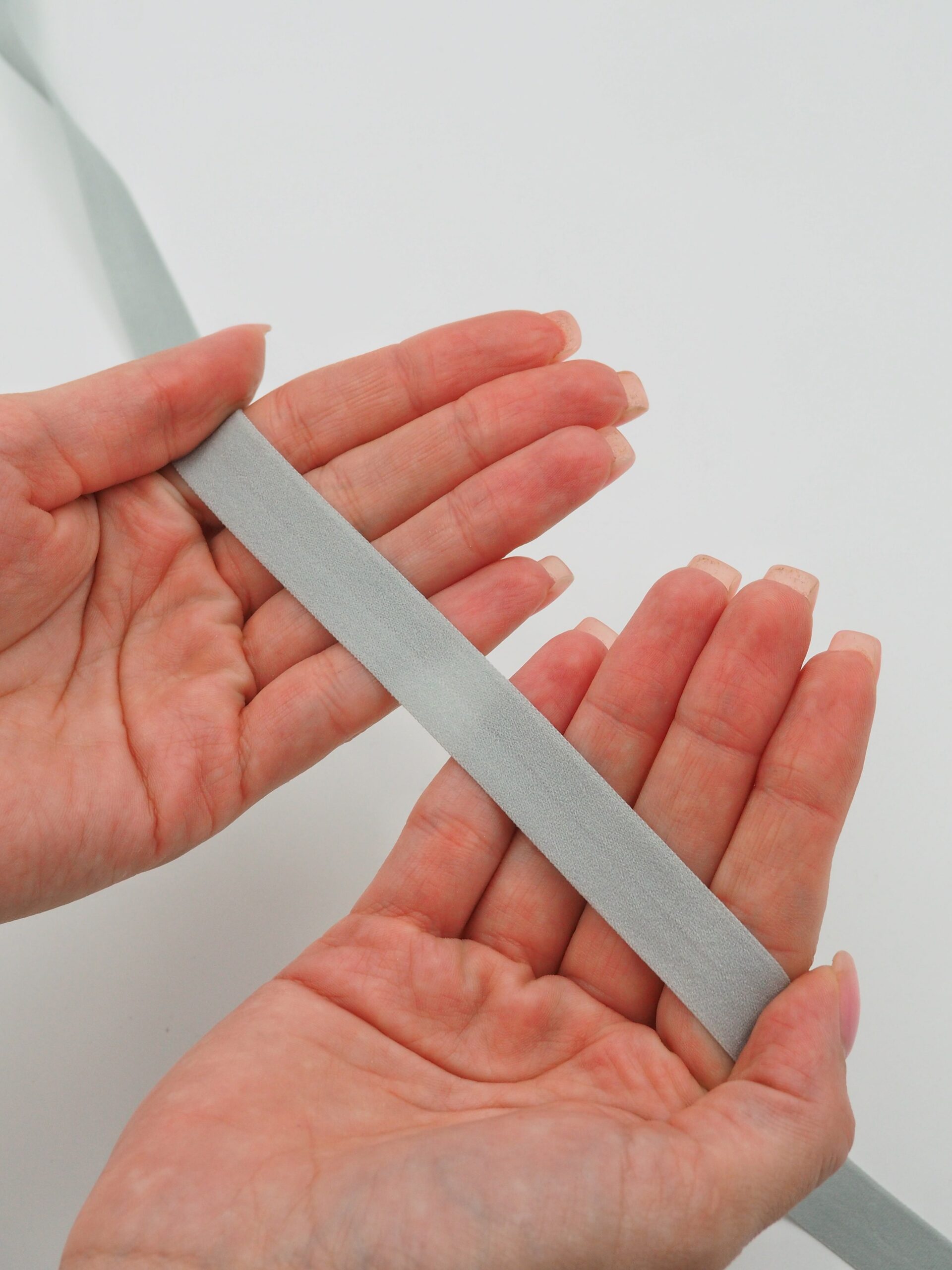 Бейка косая стрейч окантовочная текстильная серого оттенка.