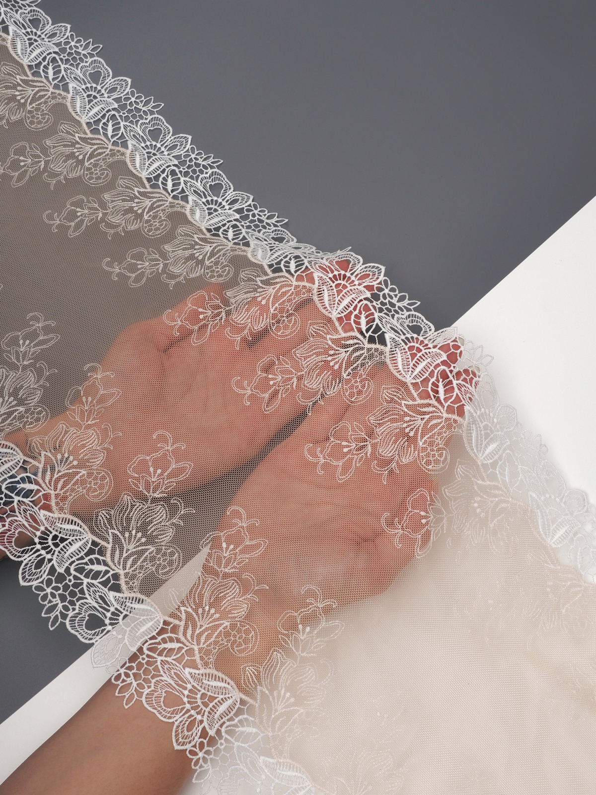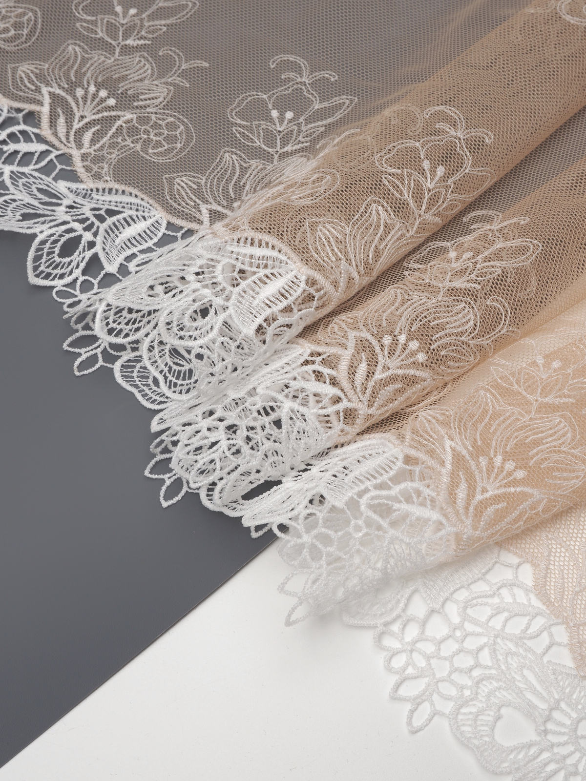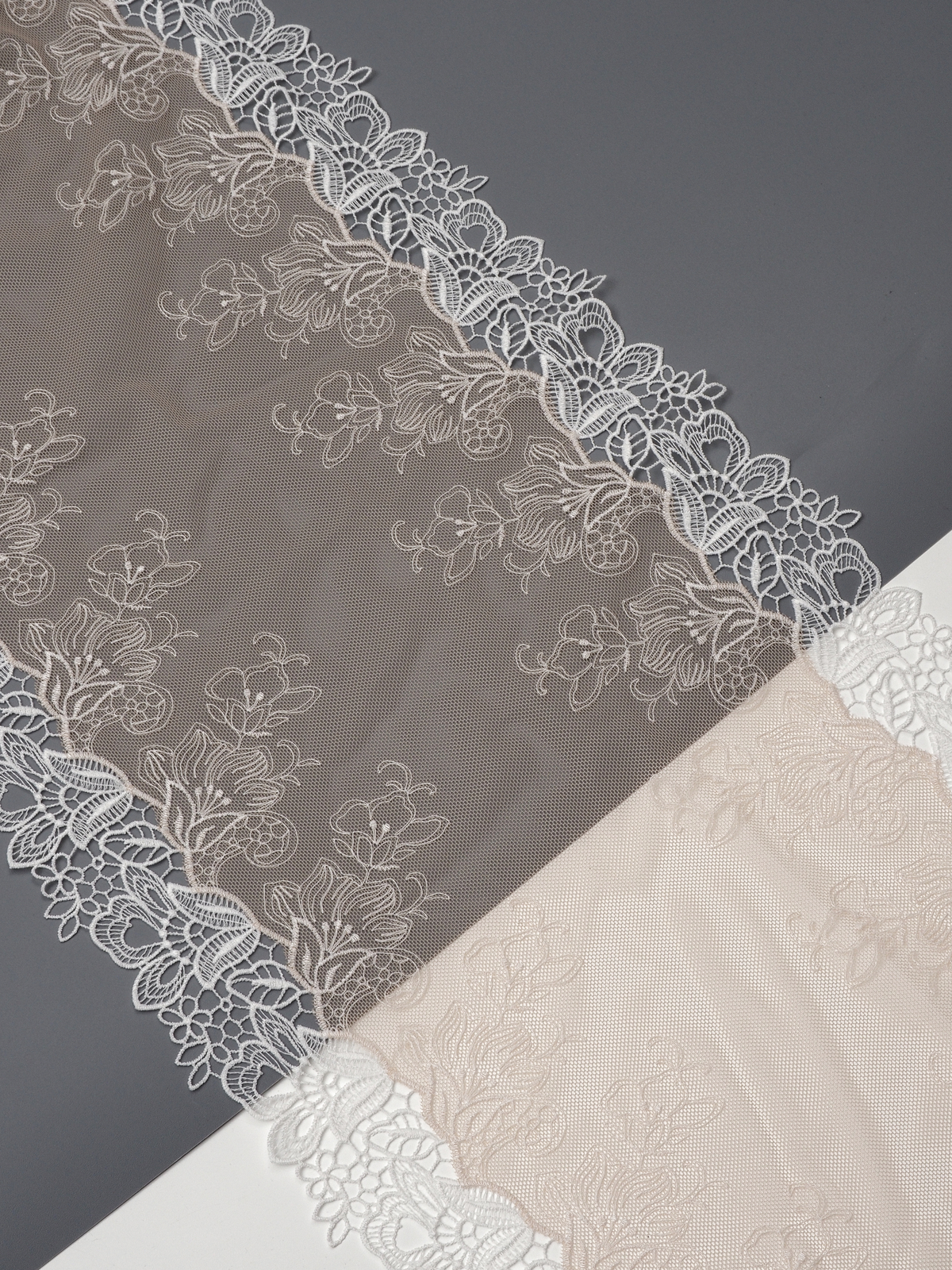 Ваше идеальное решение для создания эксклюзивного белья. Двухстороннее кружево с вышивкой на сетке сочетает эстетику и функциональность. Сочетание цвета с вышитым рисунком придаёт материалу особый шарм и универсальность.