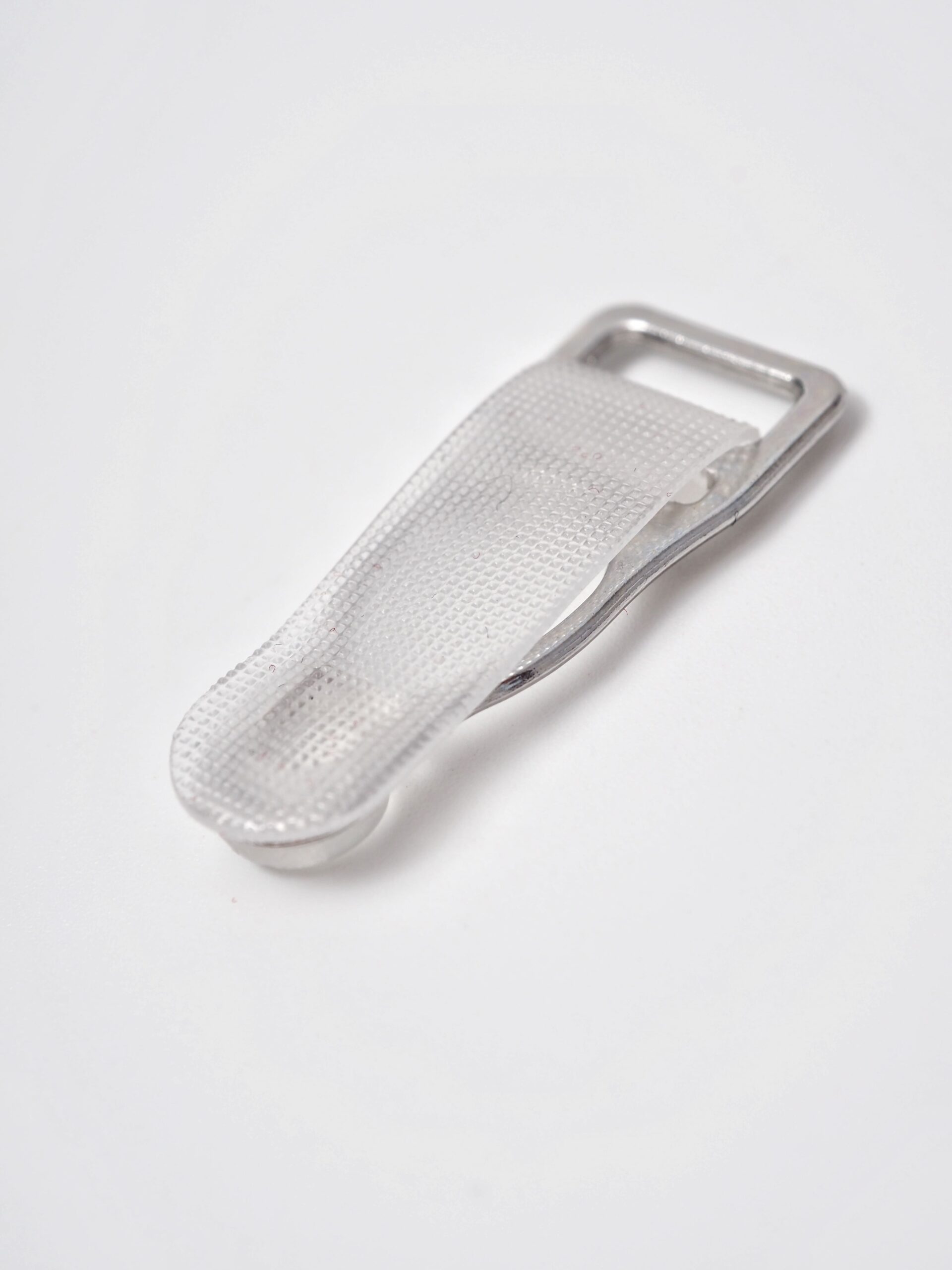 Застежка для чулок или пояса металлическая серебристого оттенка с резиновой вставкой. На поверхности имеются потертости.