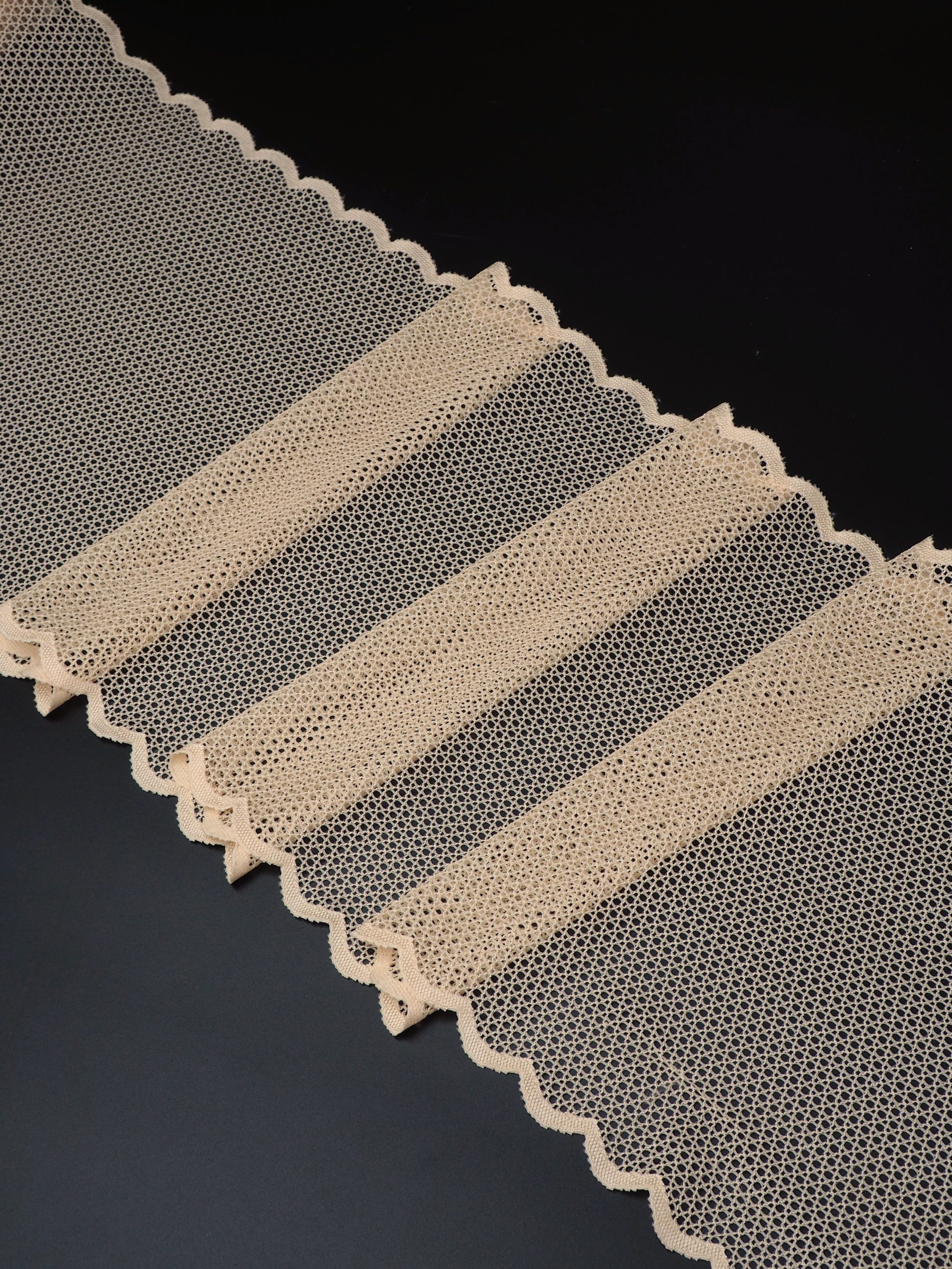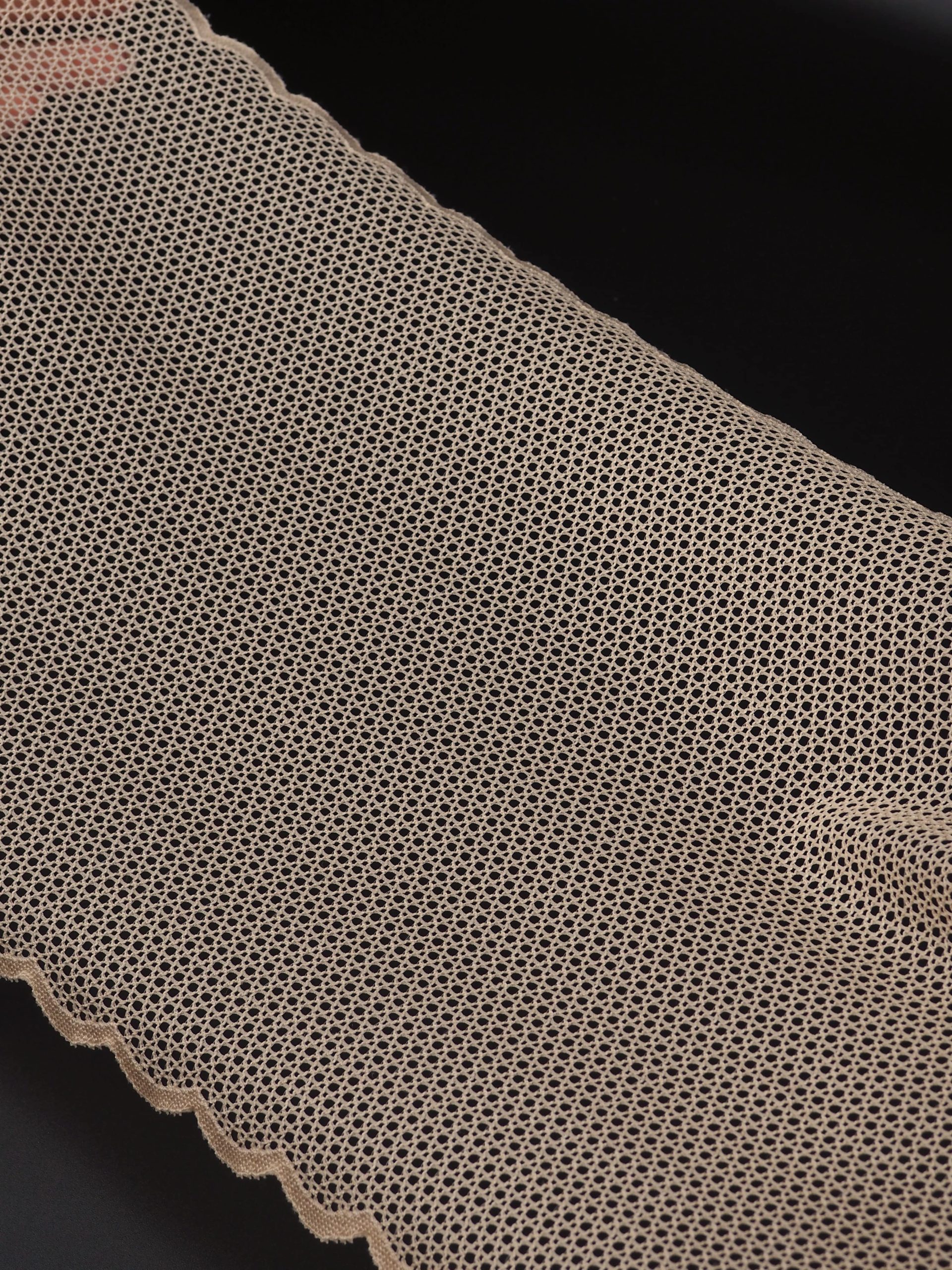 Кружево эластичное стрейч бежевого оттенка. В сетку крупная ячейка.