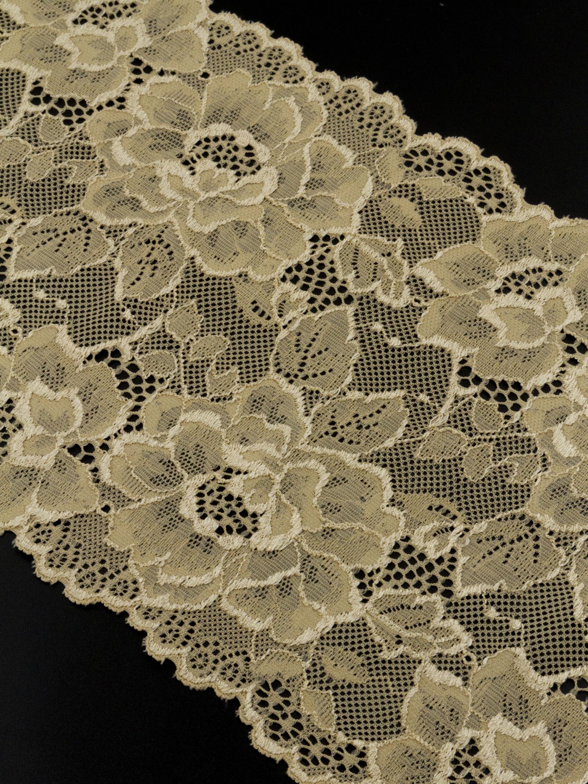 Кружево эластичное бежевое. Кружево стрейч бежевое с цветочным рисунком.