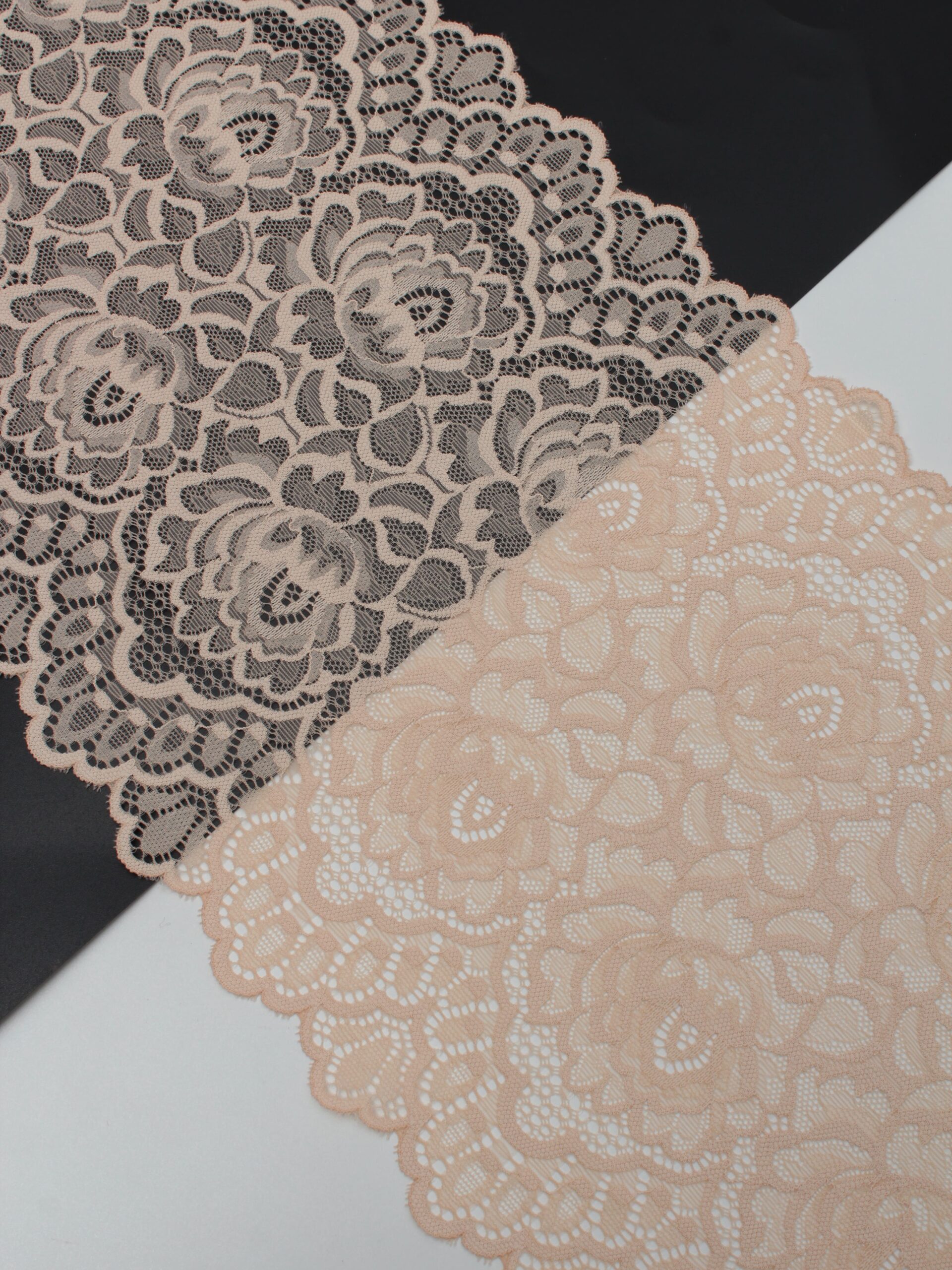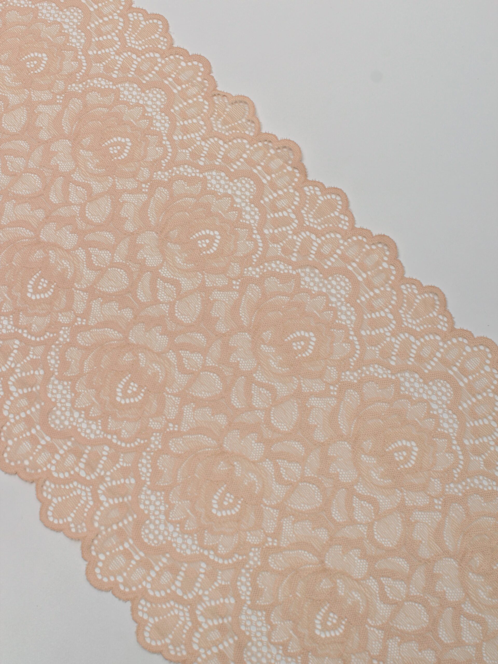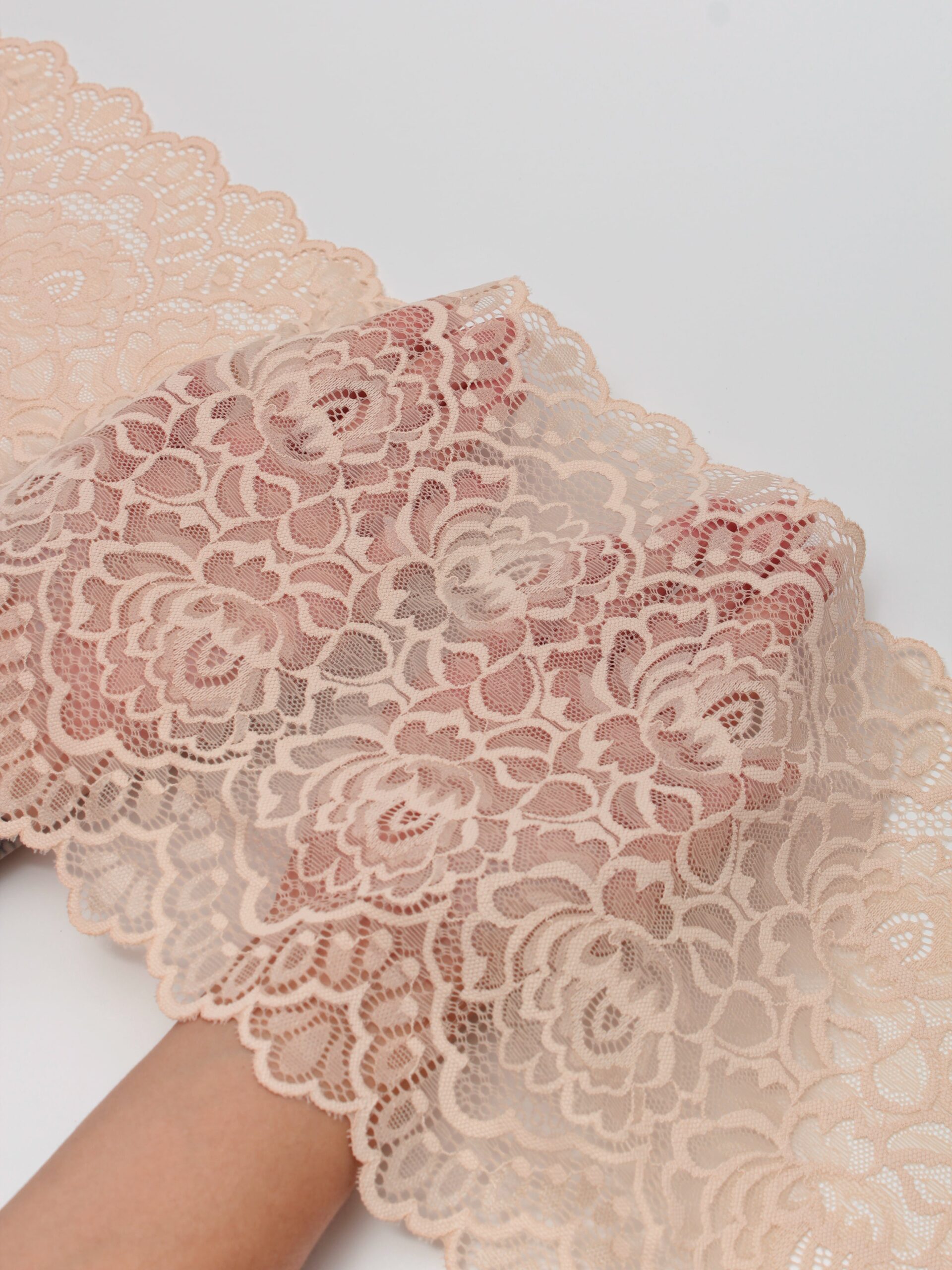 Кружево эластичное бежевого цвета. Стрейч кружево бежевое с цветочным рисунком.