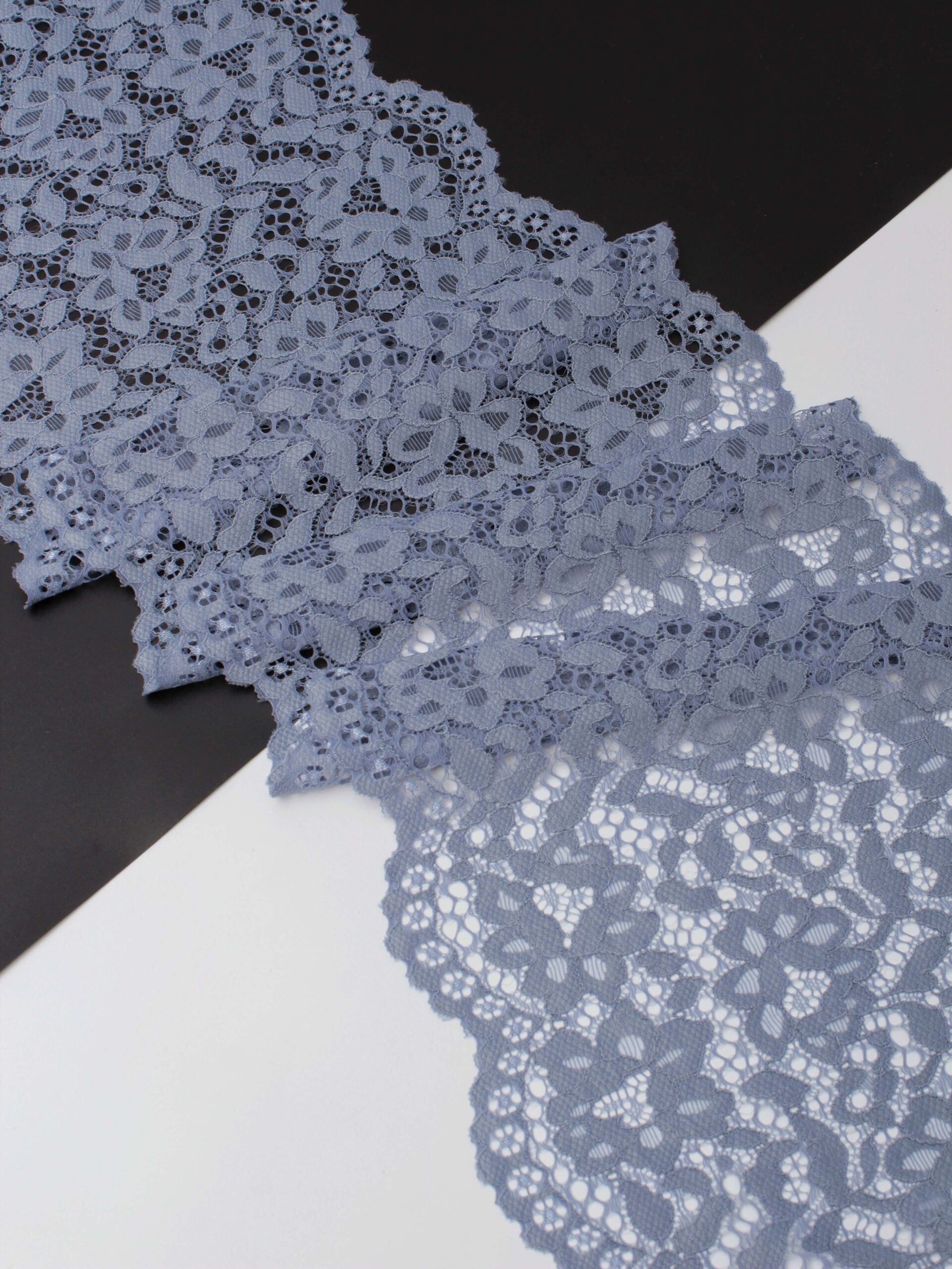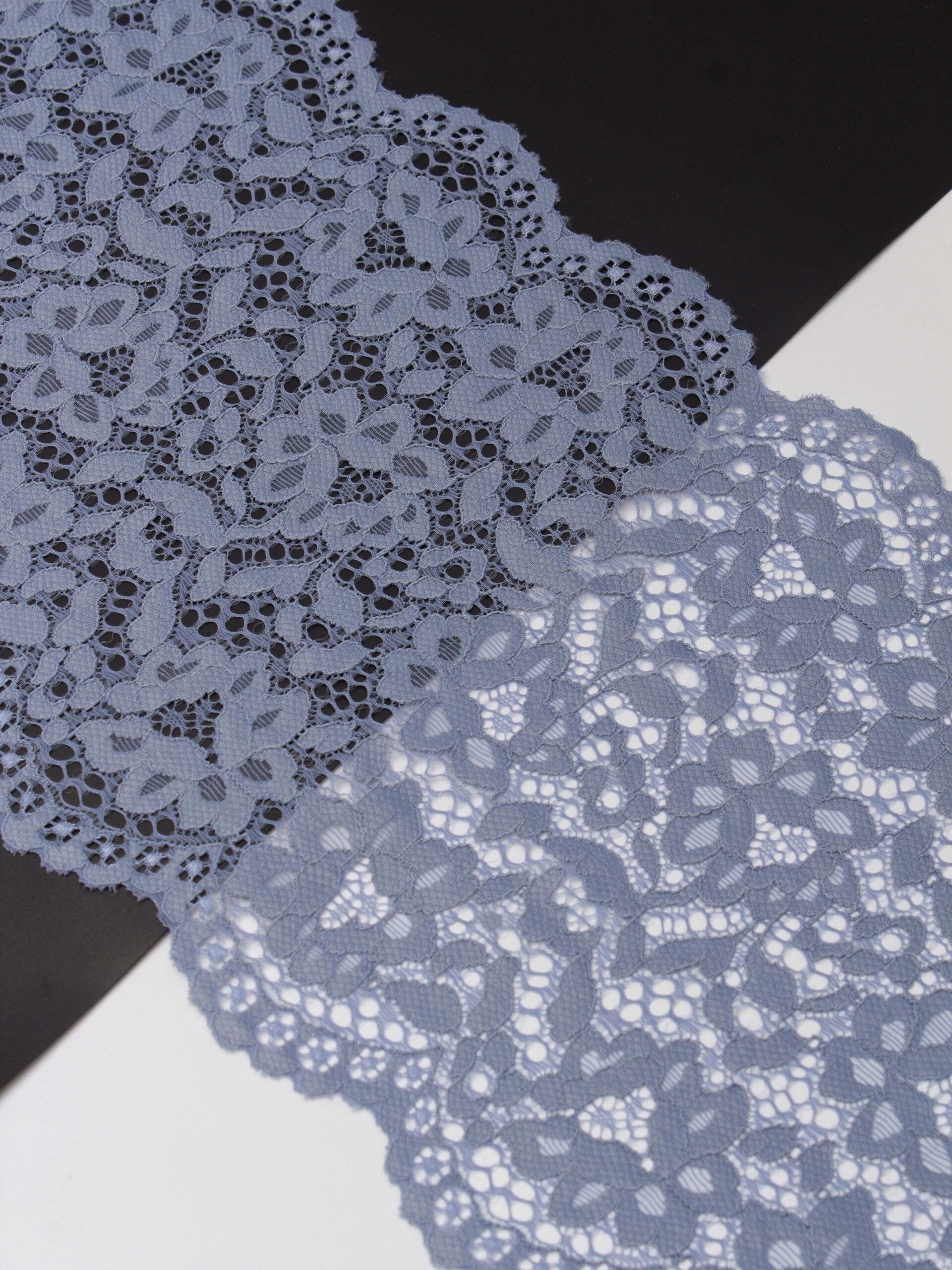 Кружево эластичное голубое. Стрейч кружево дымчато-голубое с цветочным узором.