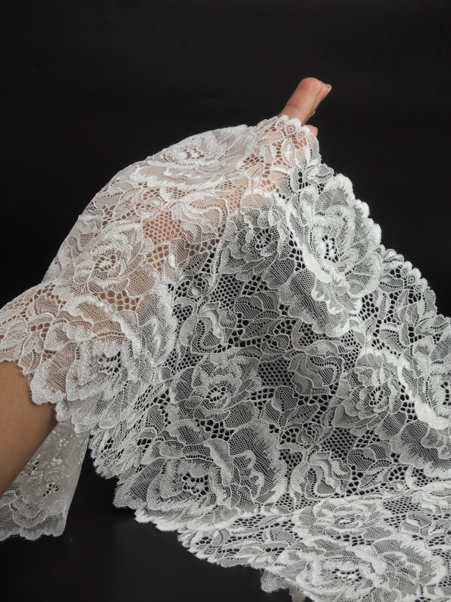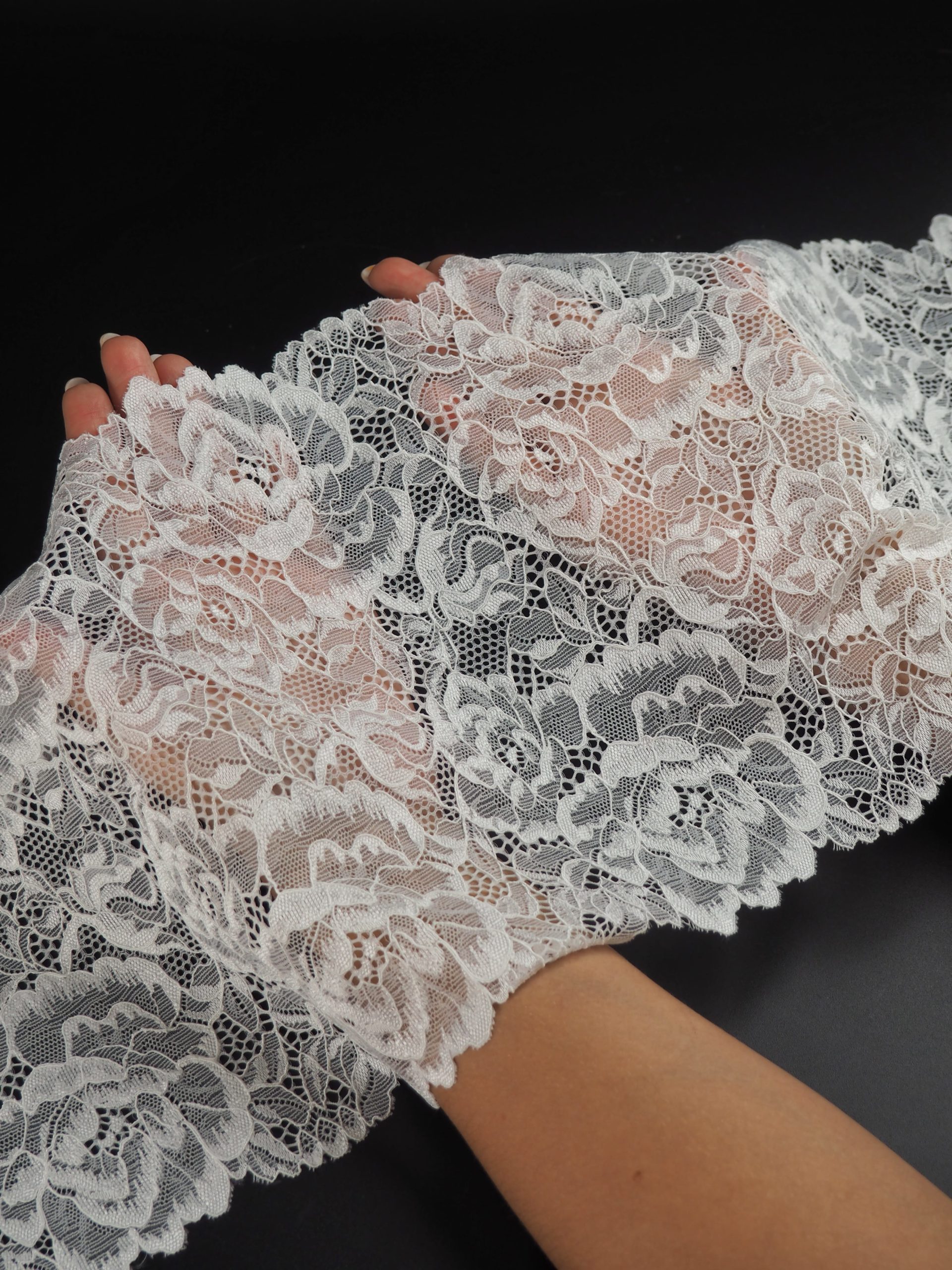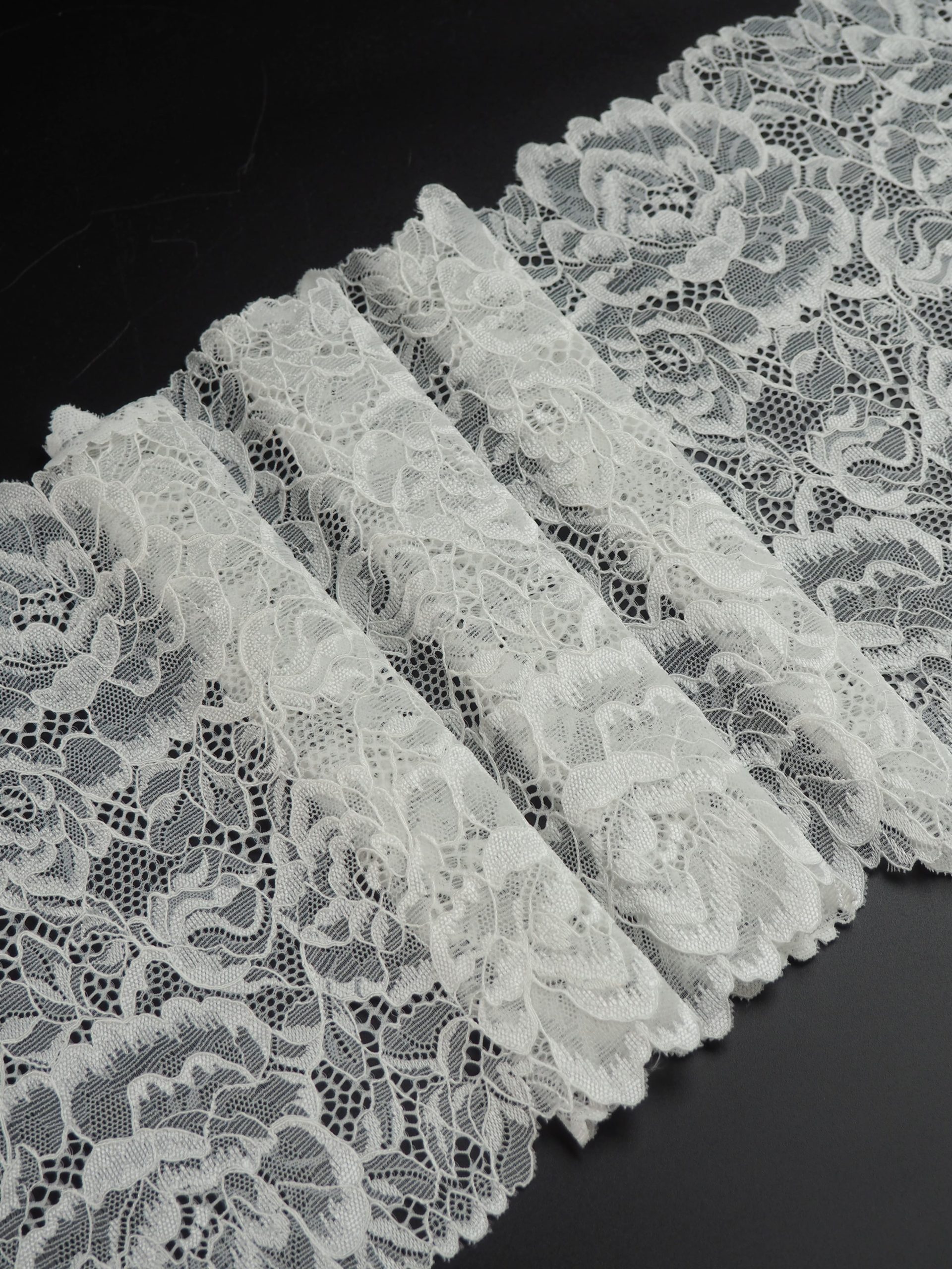 Кружево эластичное белого цвета. Кружево стрейч экрю.
