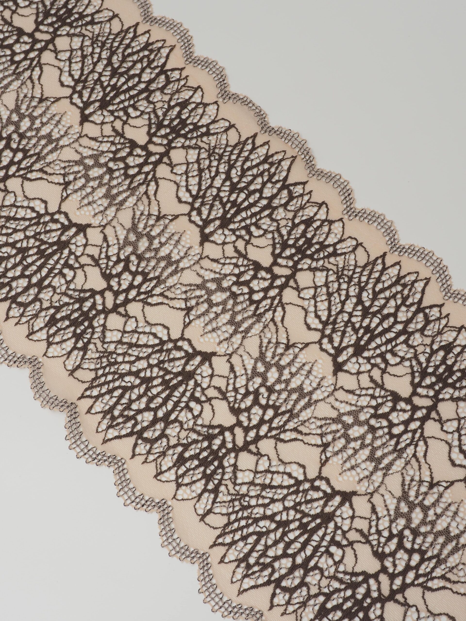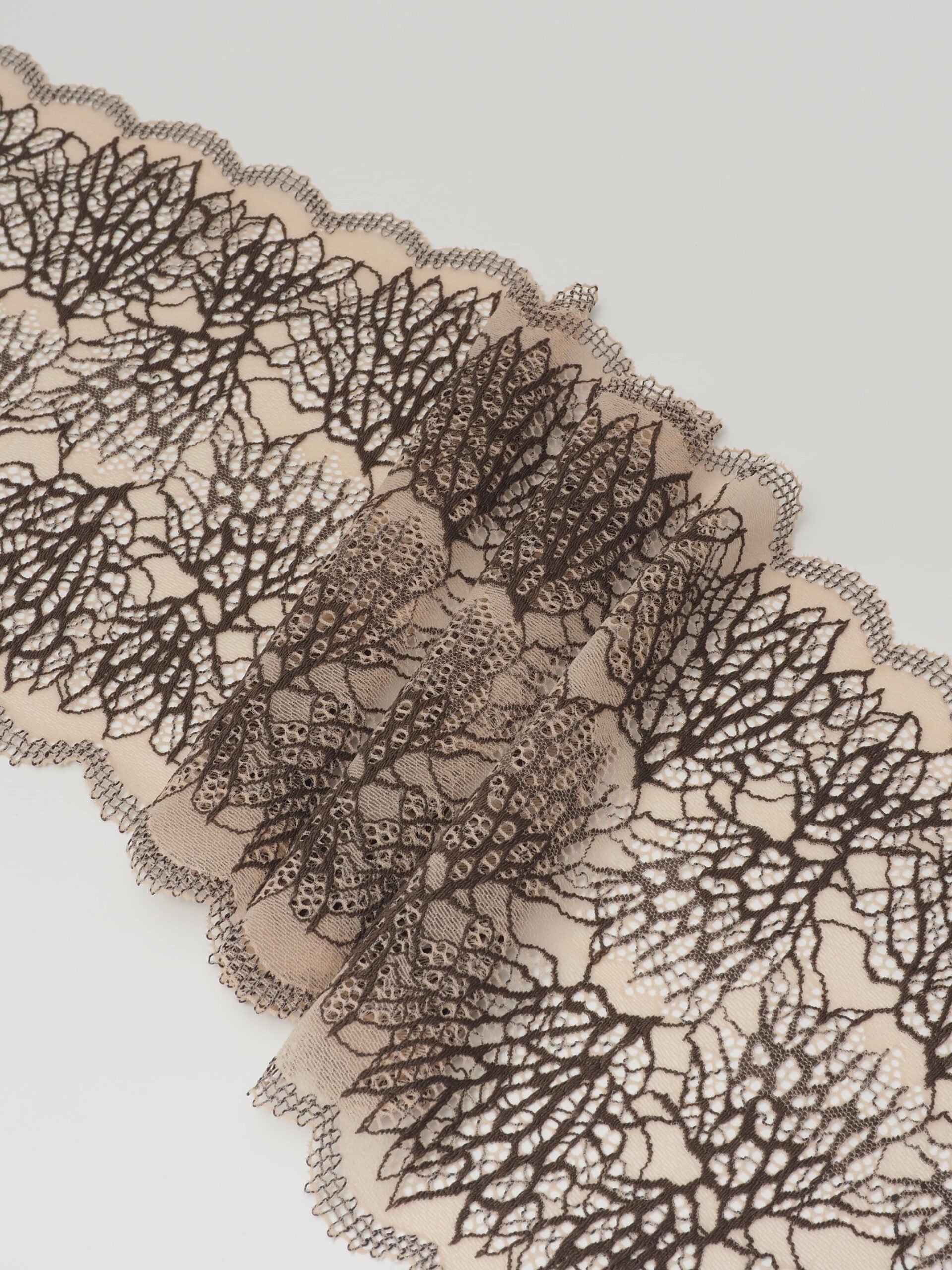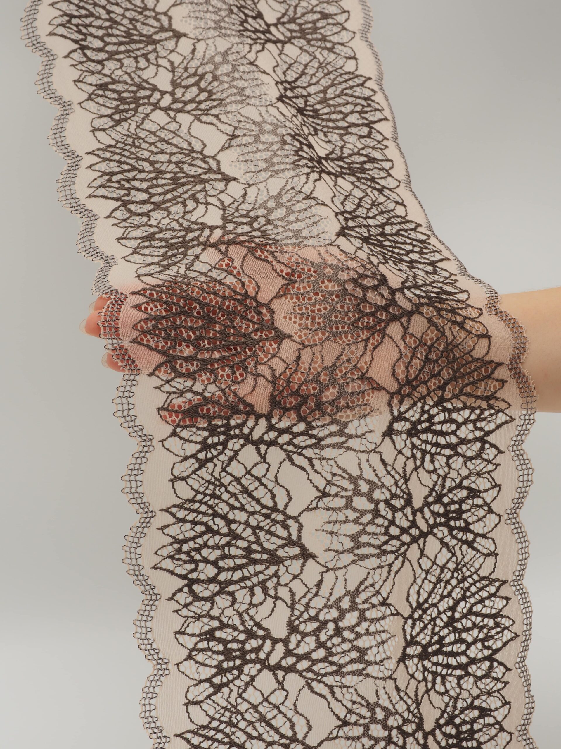 Кружево эластичное бежевое с коричневым. Стрейч кружево бежевое с цветочным узором оттенка перец.