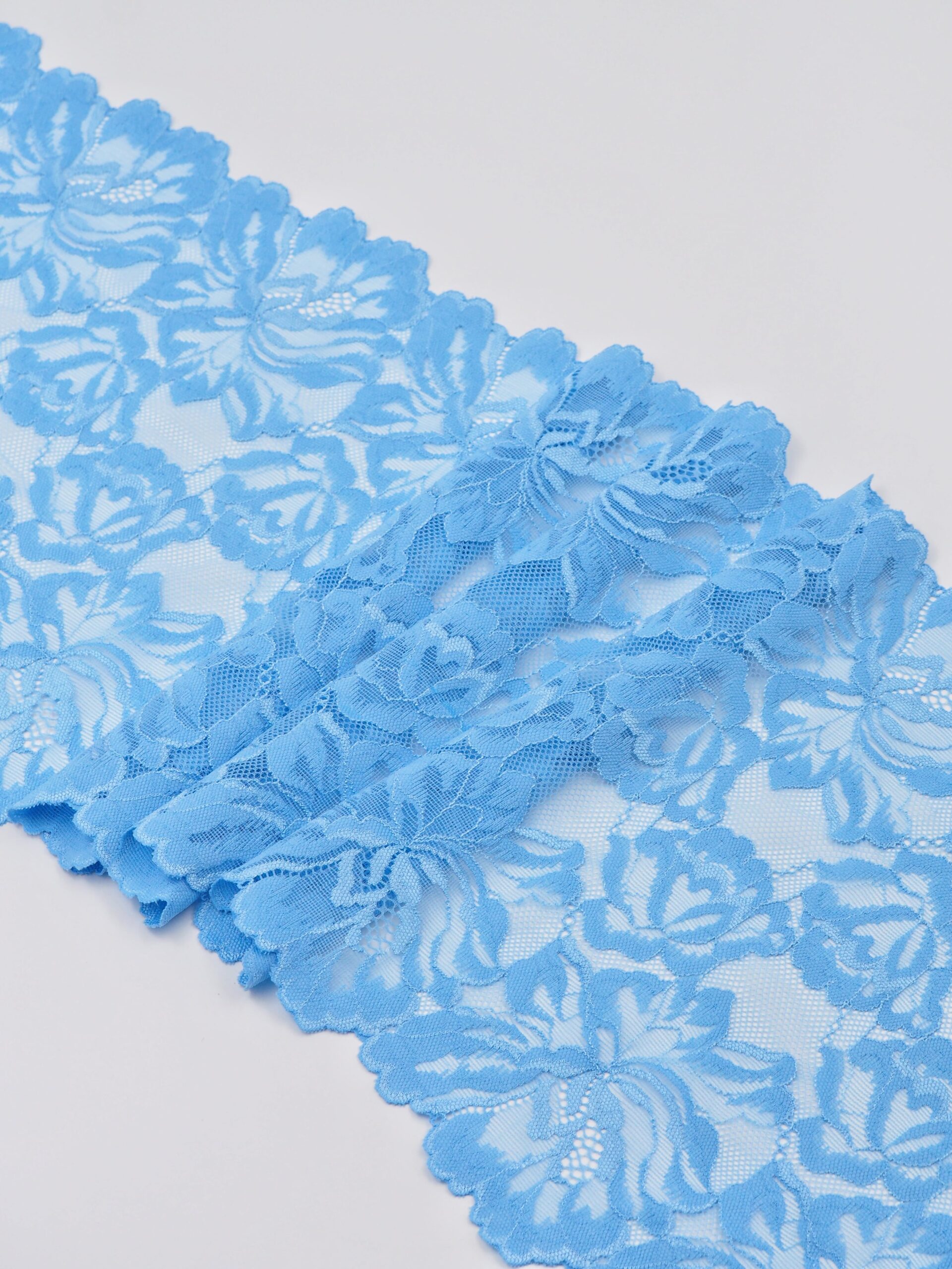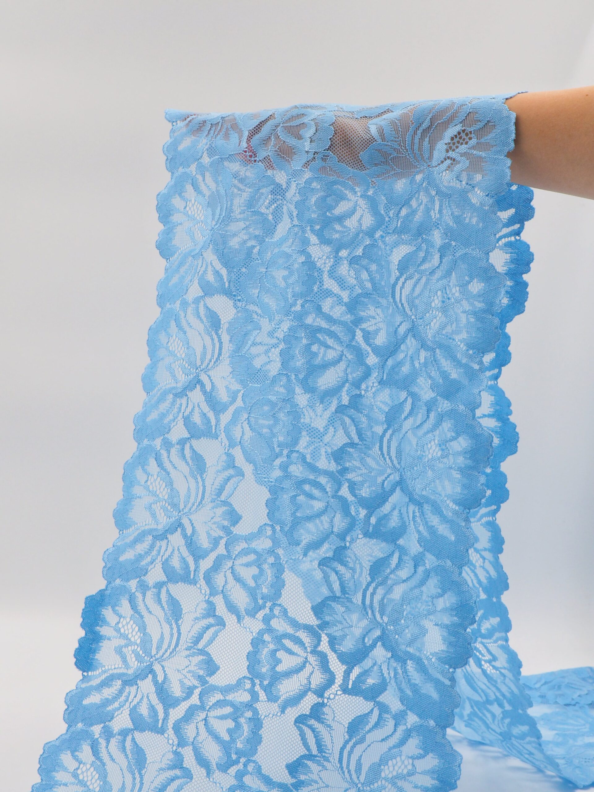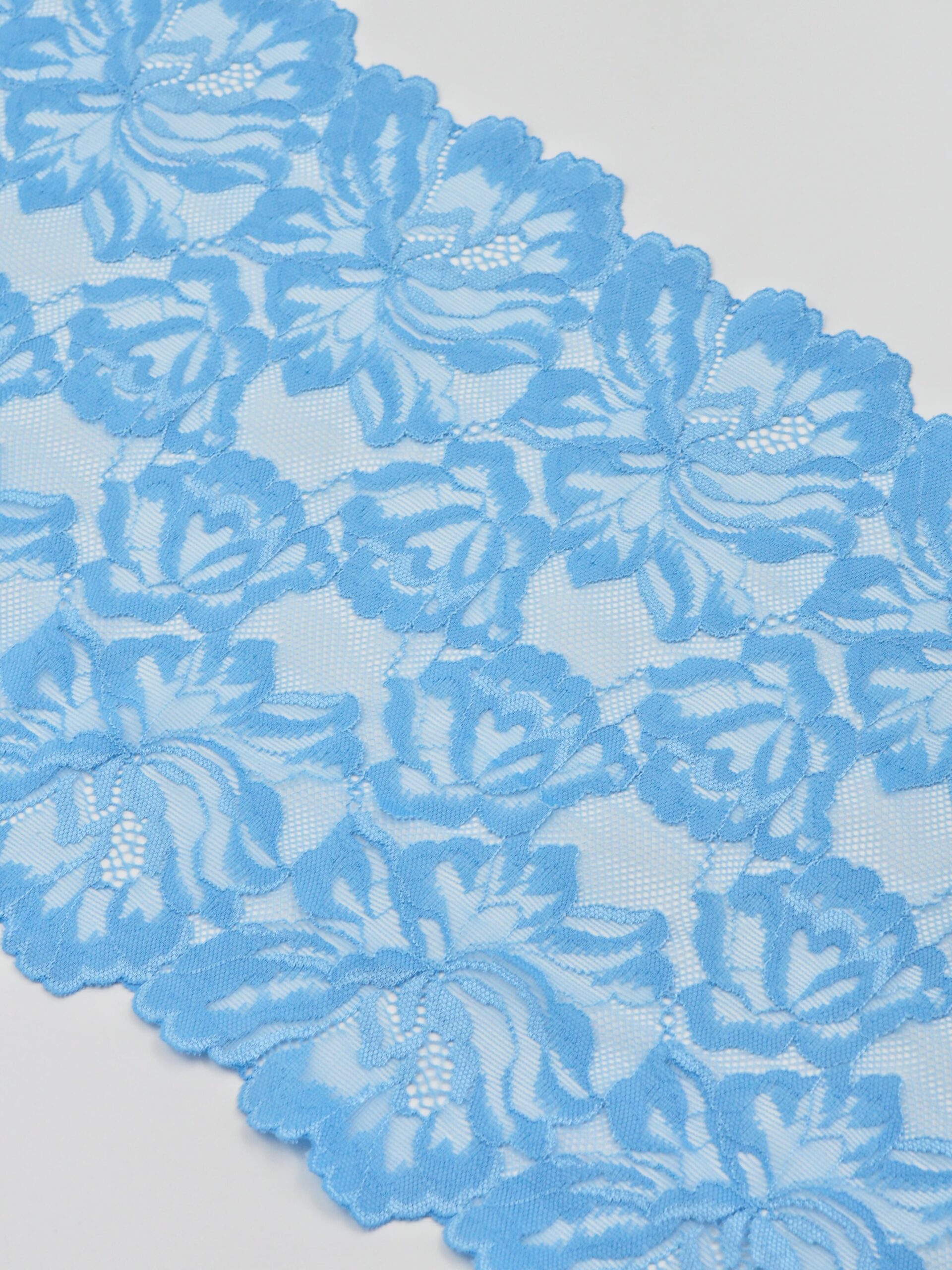 Кружево эластичное стрейч голубого цвета. Рисунок цветочный.