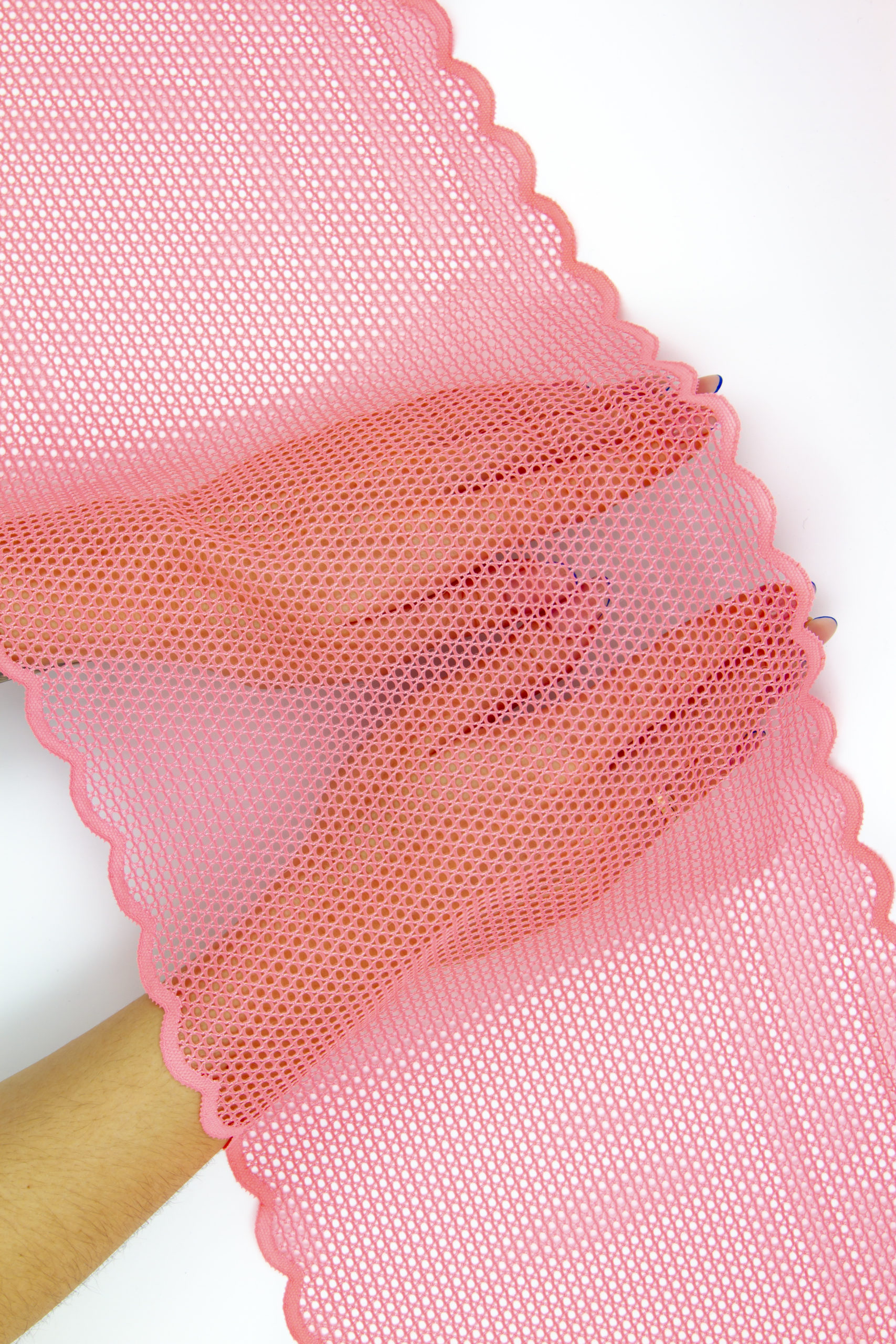 Кружево эластичное коралловое. Стрейч кружево коралловое неоновое в сетку. Крупная ячейка.