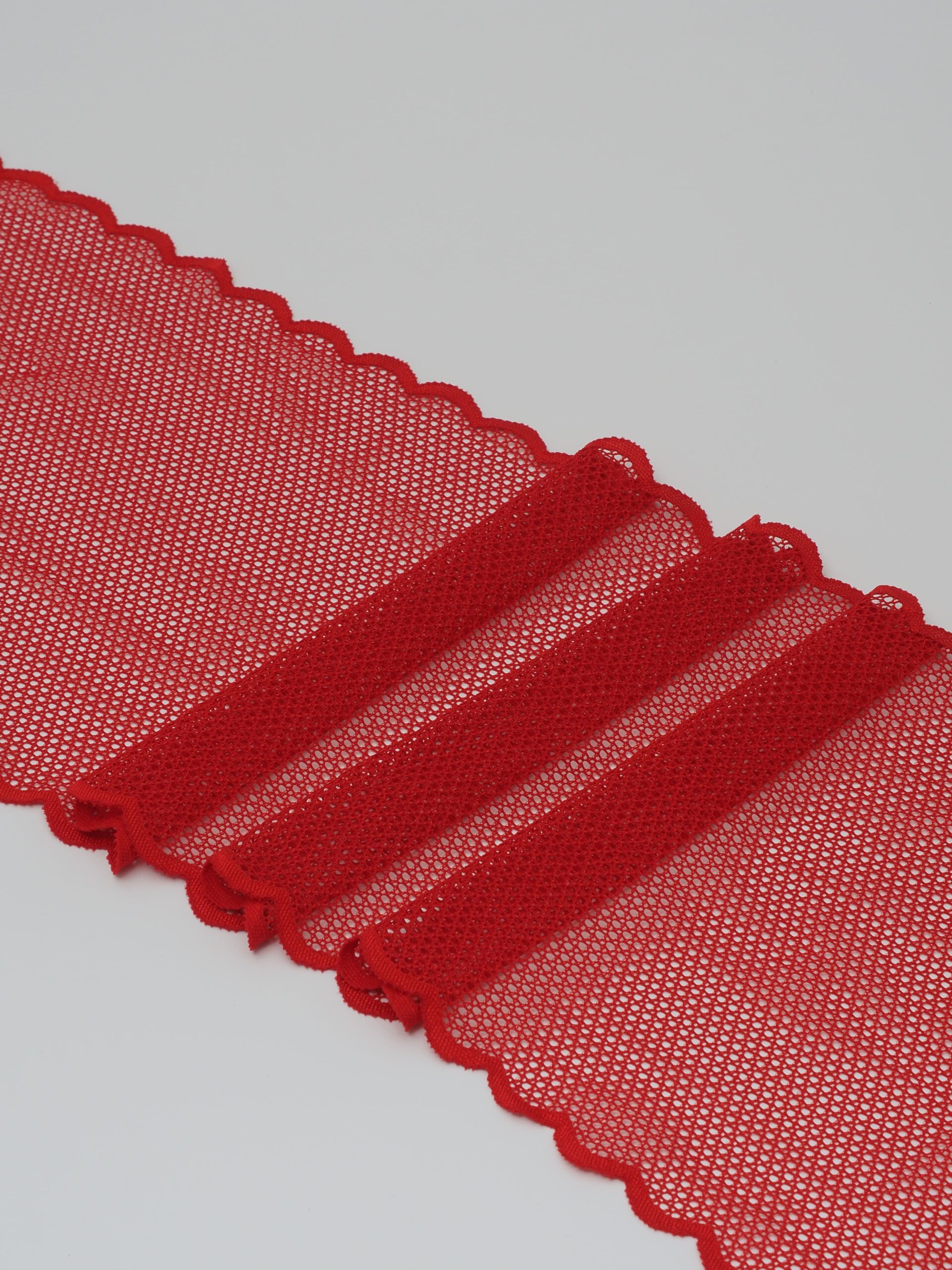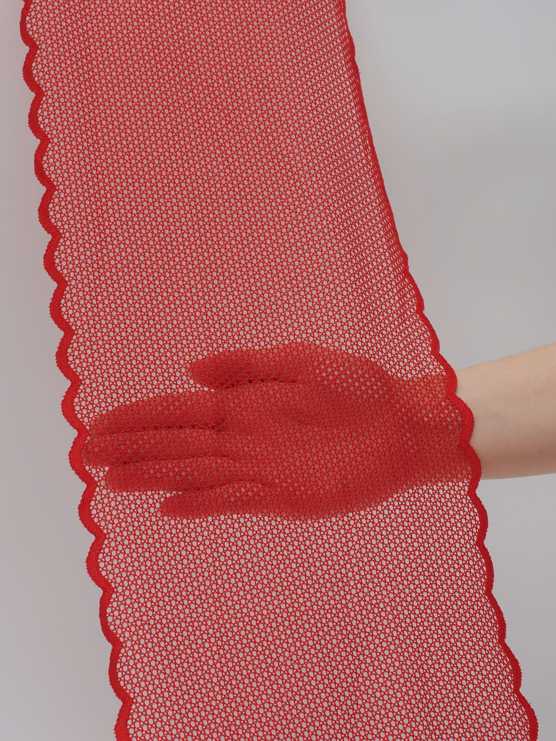 Кружево эластичное красного цвета. Стрейч кружево красное в сеточку. .