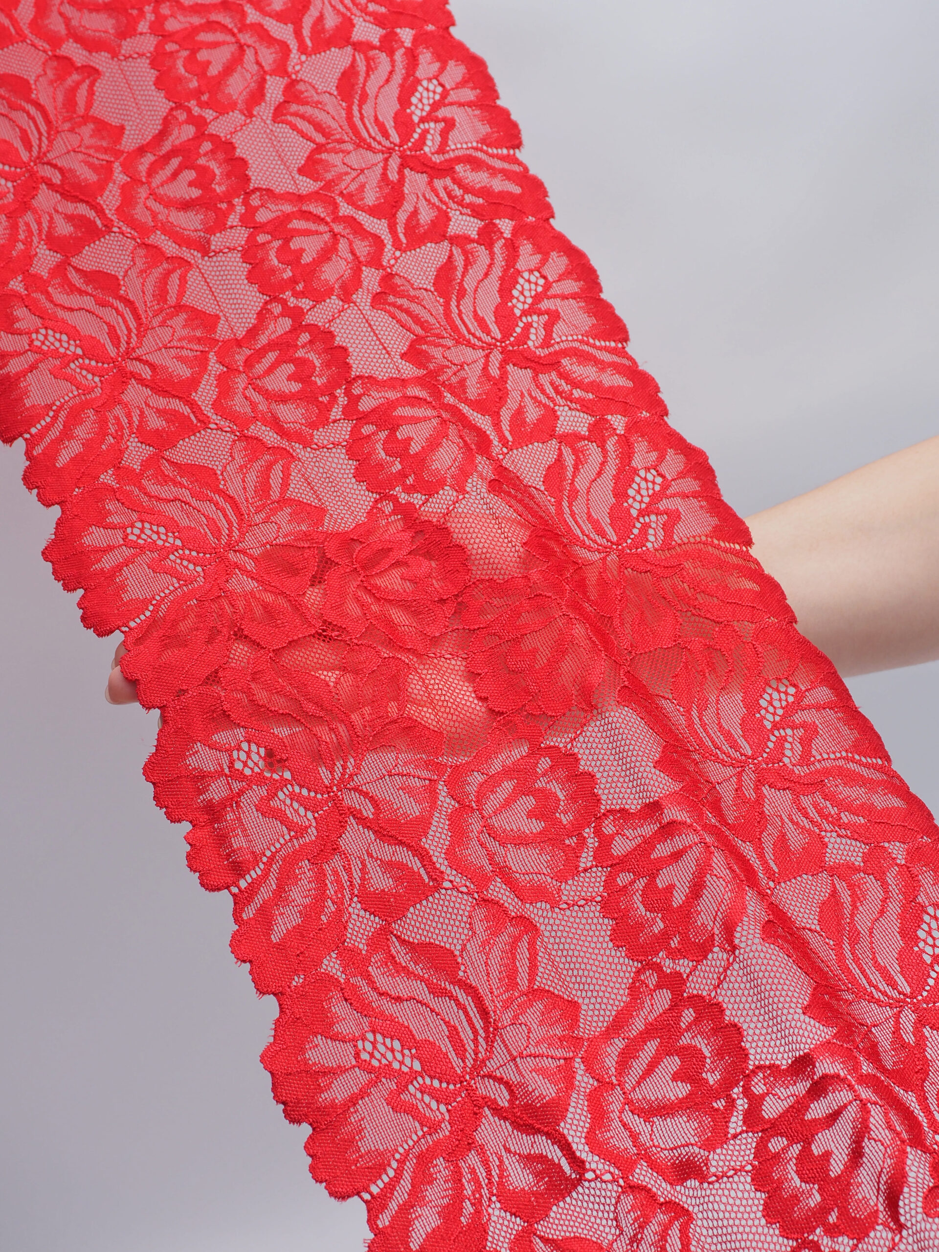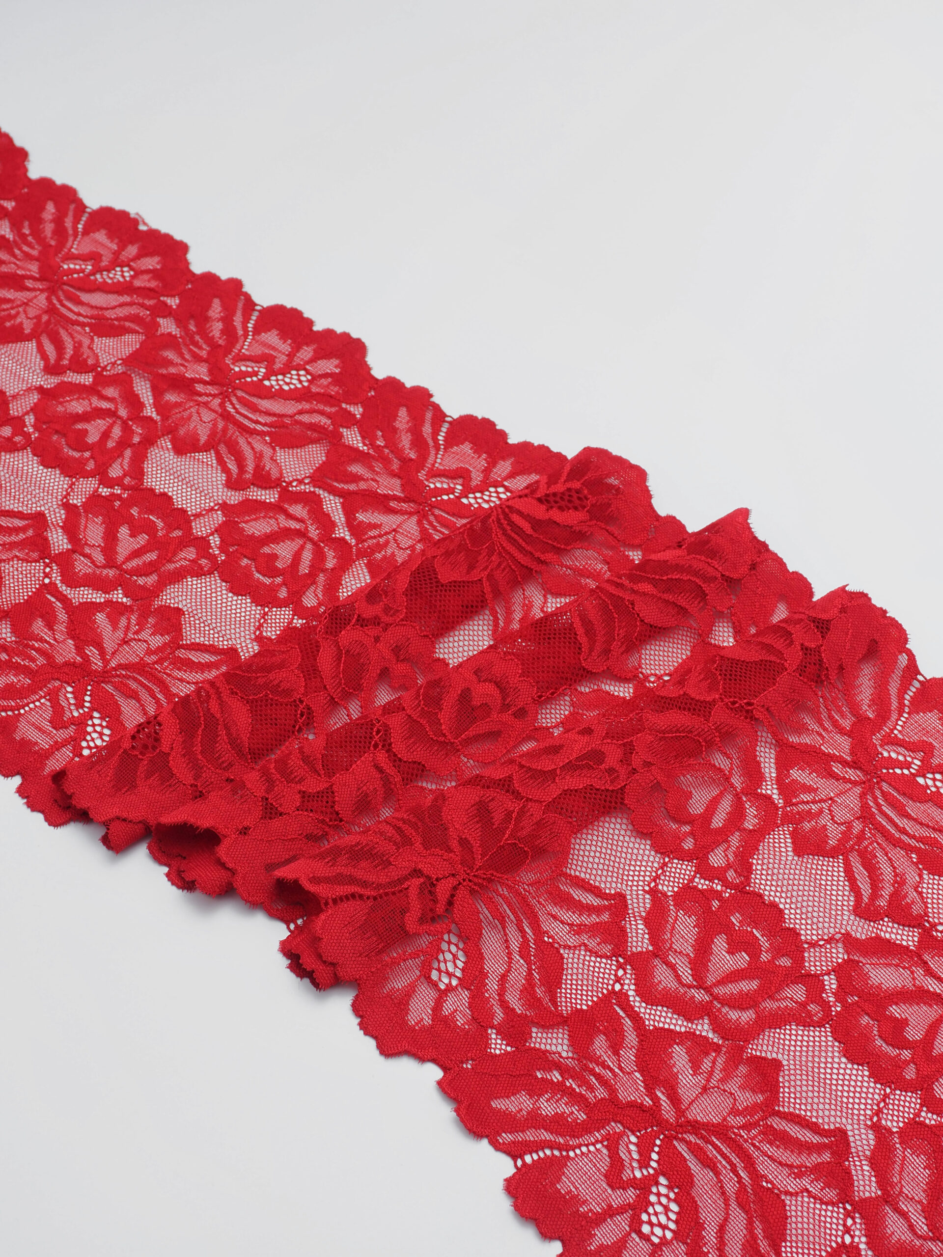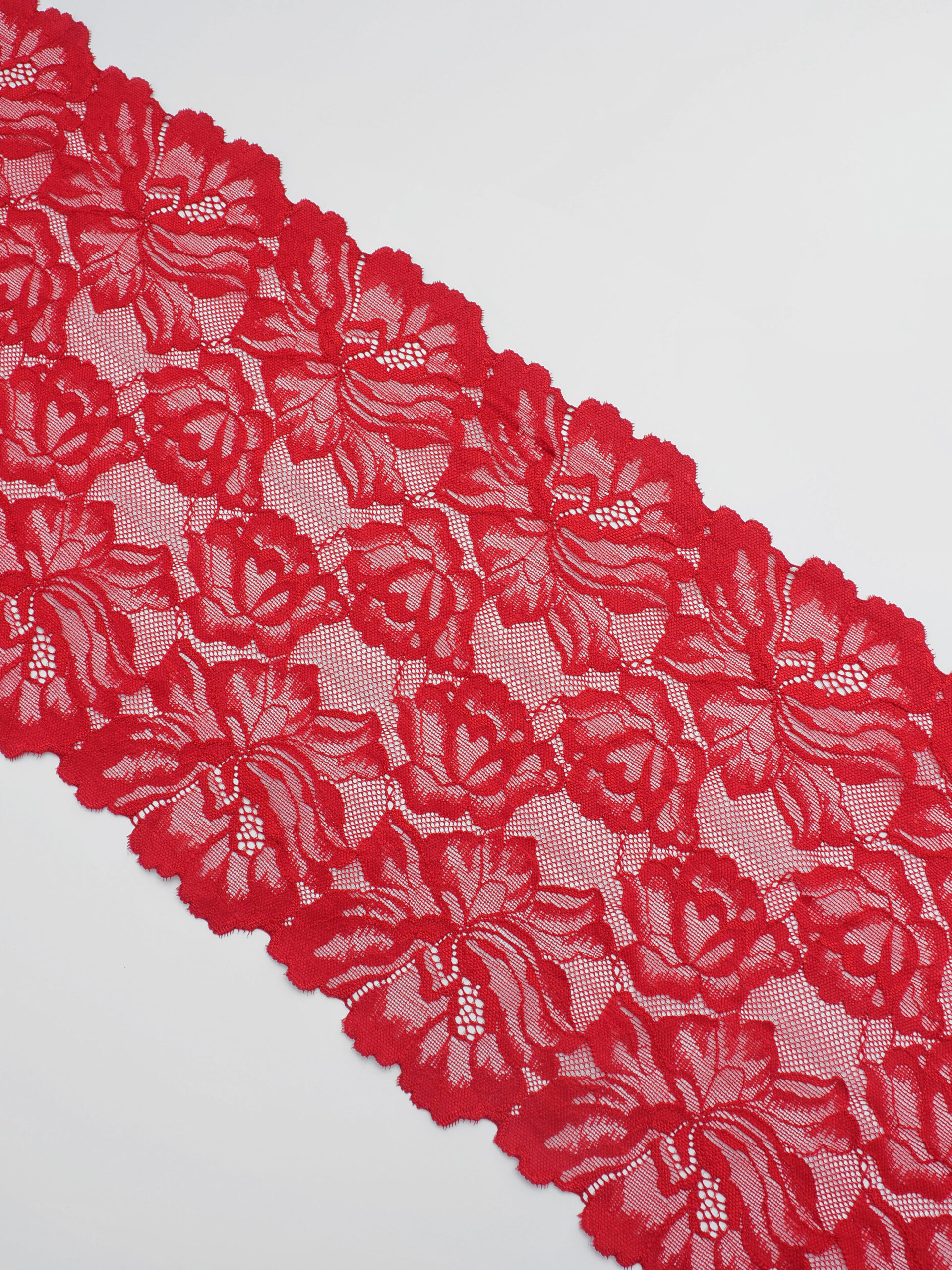 Кружево эластичное красное. Рисунок цветочный.