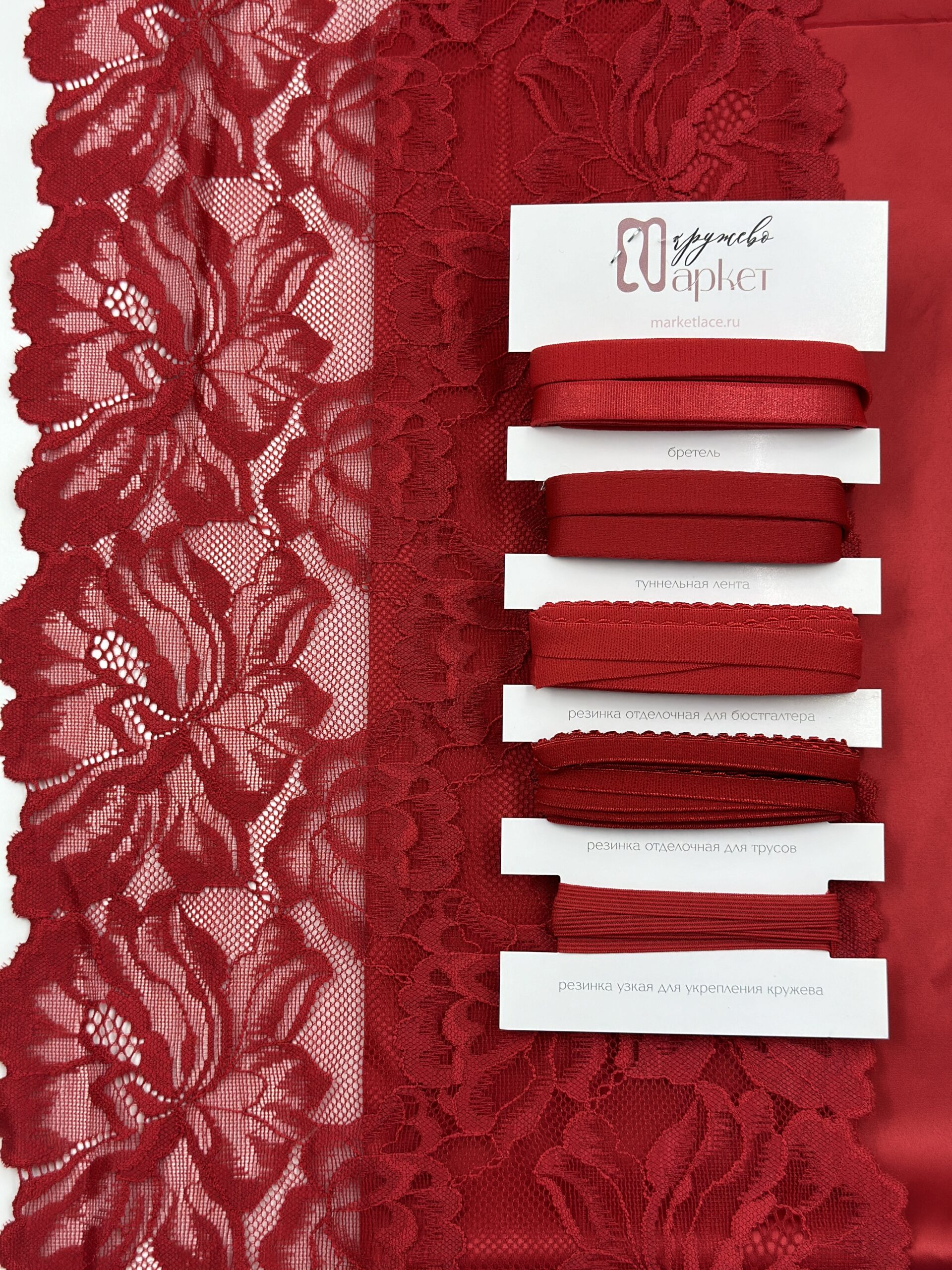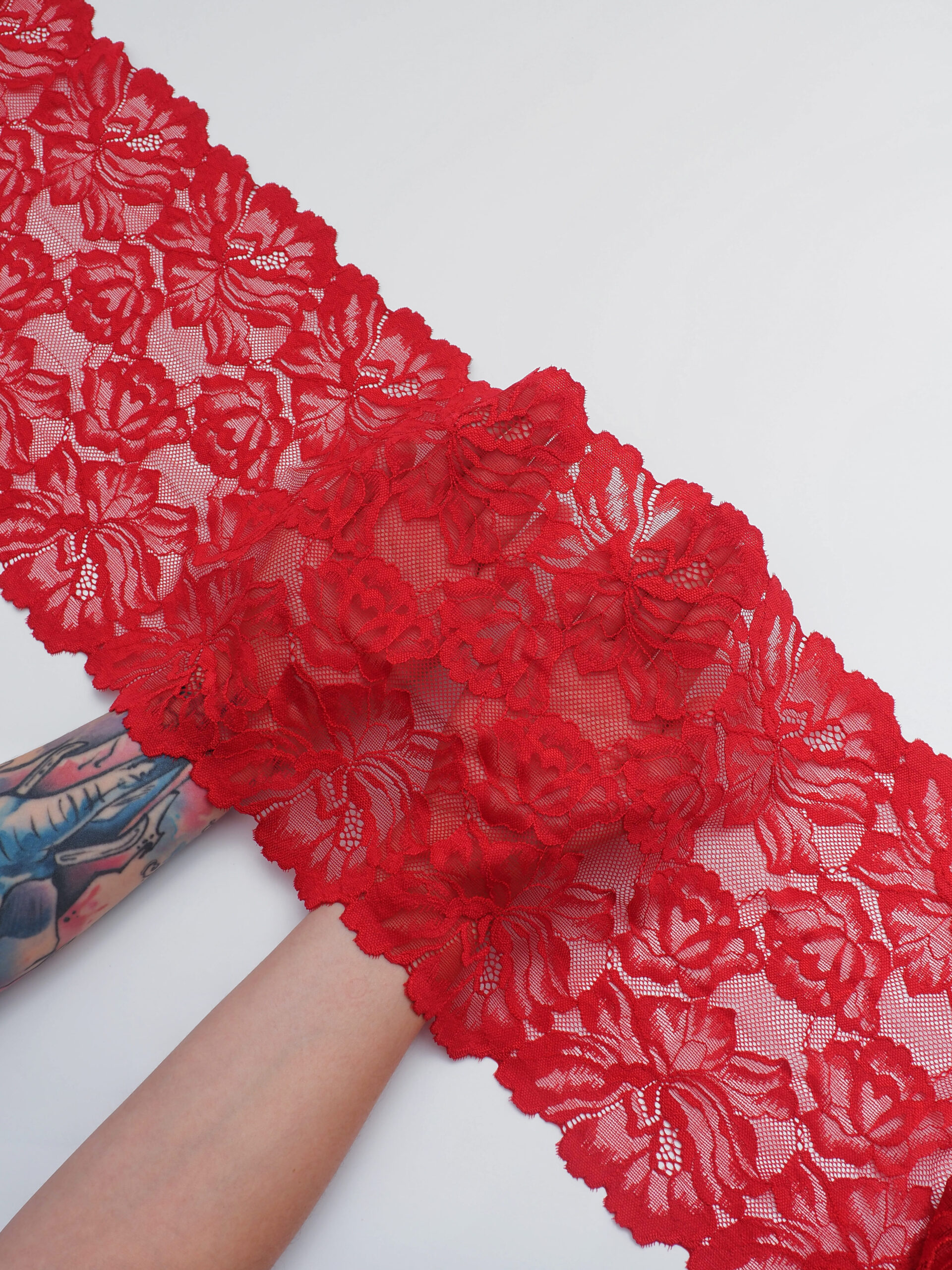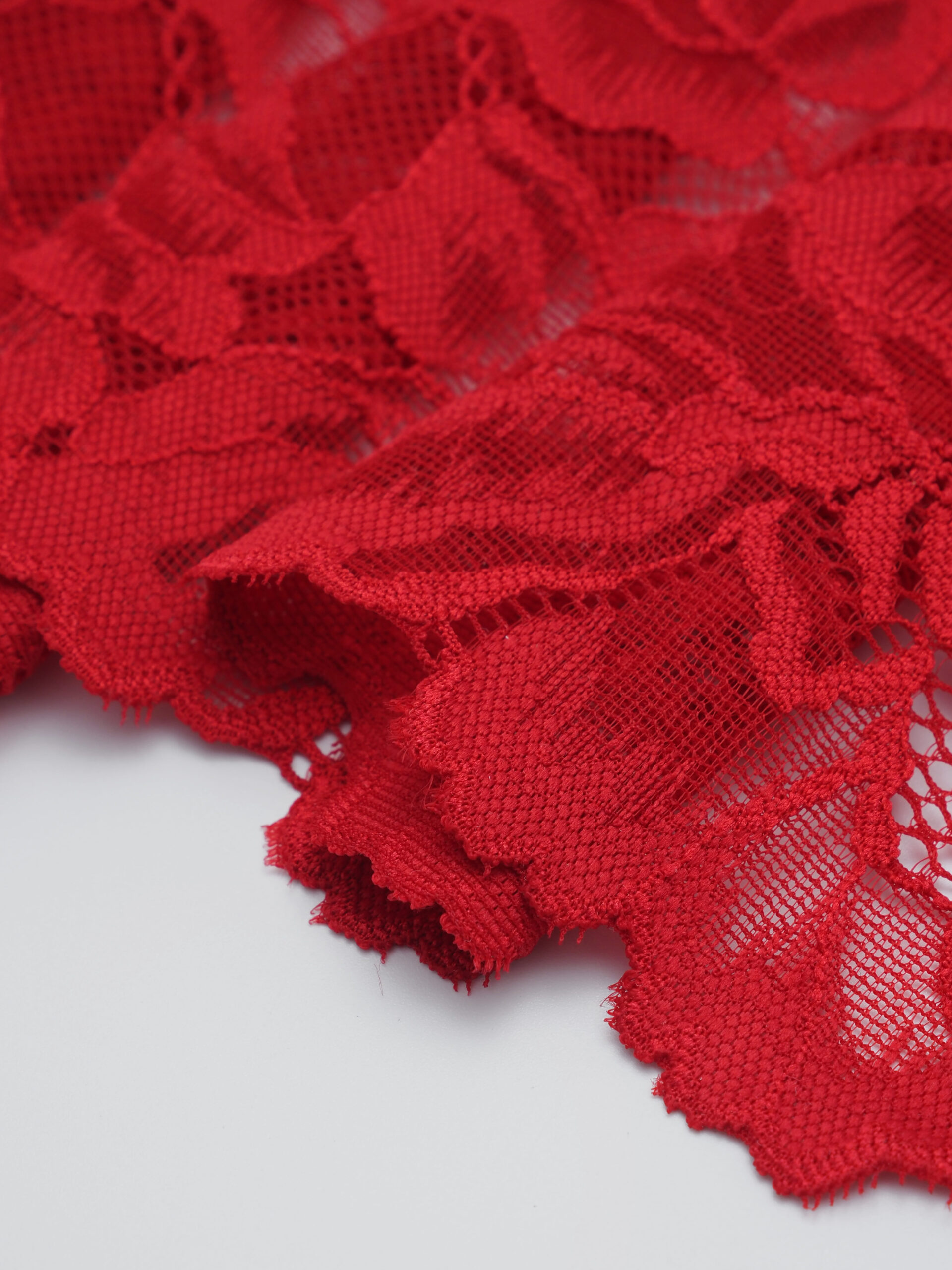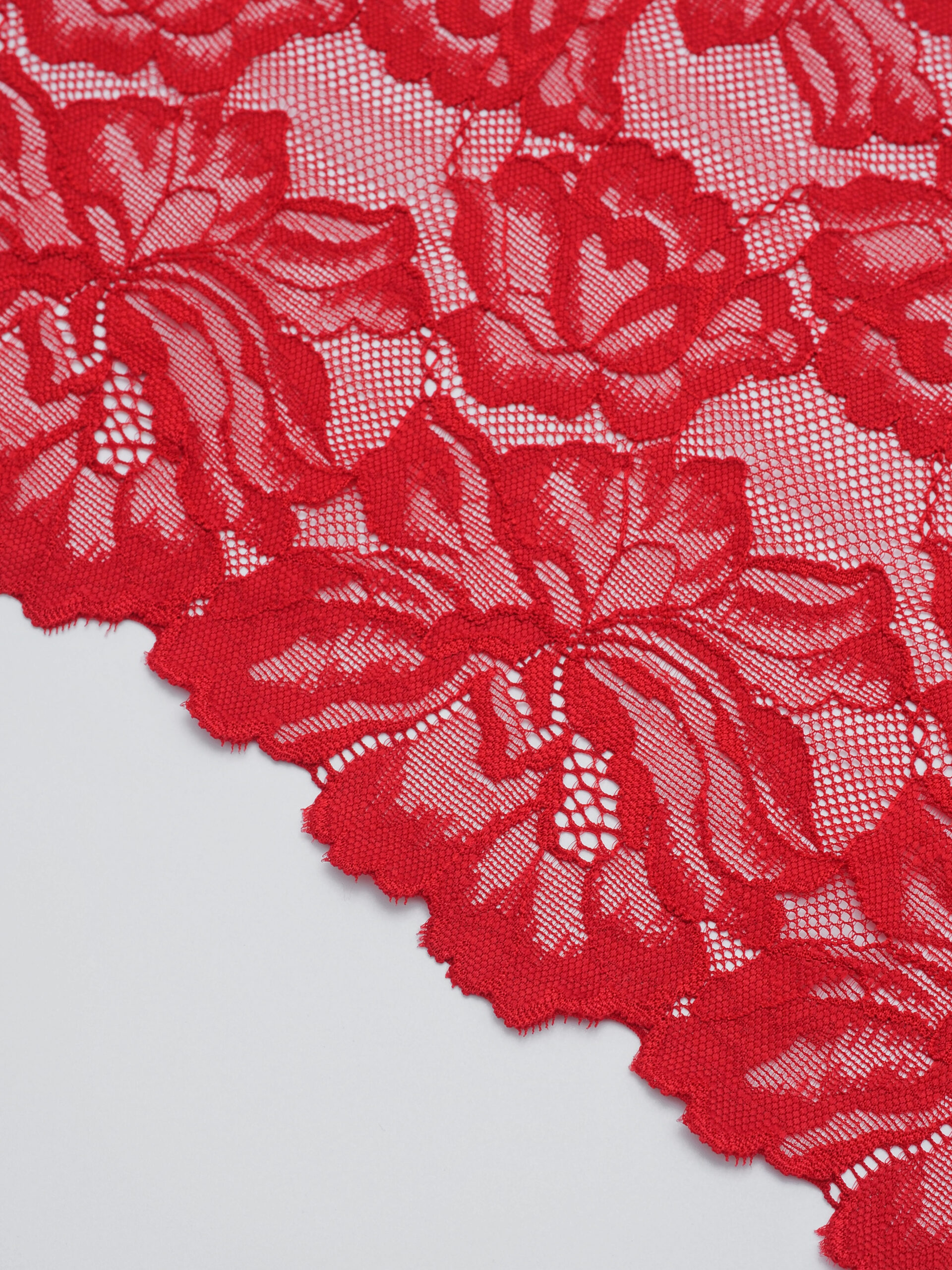 Кружево эластичное красное. Рисунок цветочный.