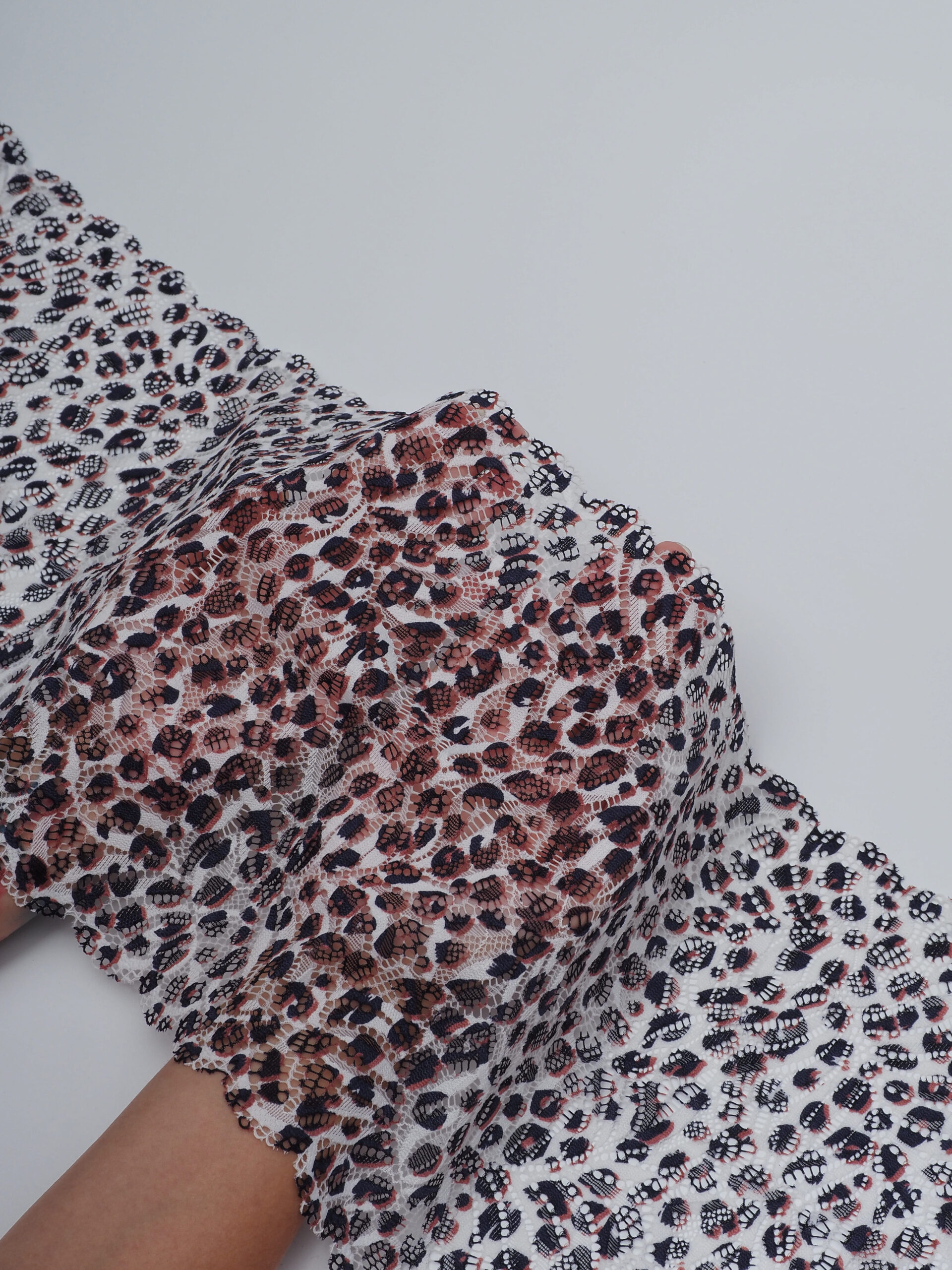 Кружево эластичное белого цвета. Стрейч кружево белое с леопардовым принтом.