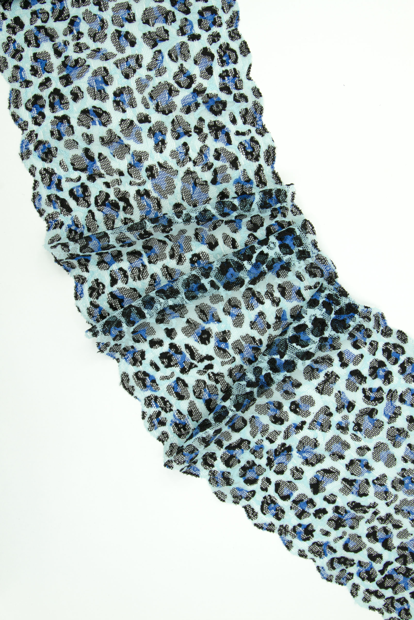 Кружево эластичное бирюзового цвета. Кружево стрейч с леопаровым рисунком.