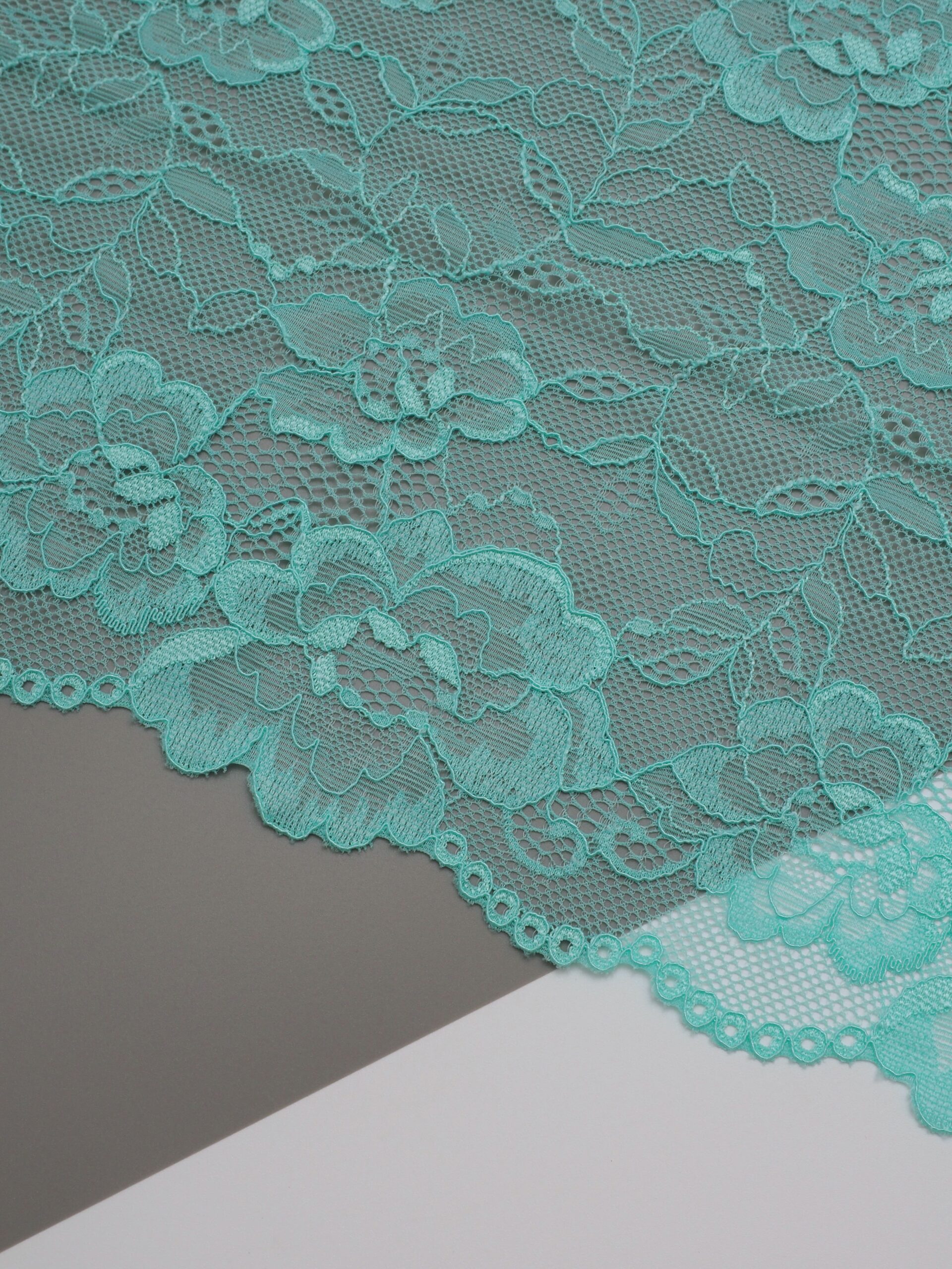 Кружево эластичное мятного оттенка. Стрейч кружево ментоловое с цветочным рисунком.