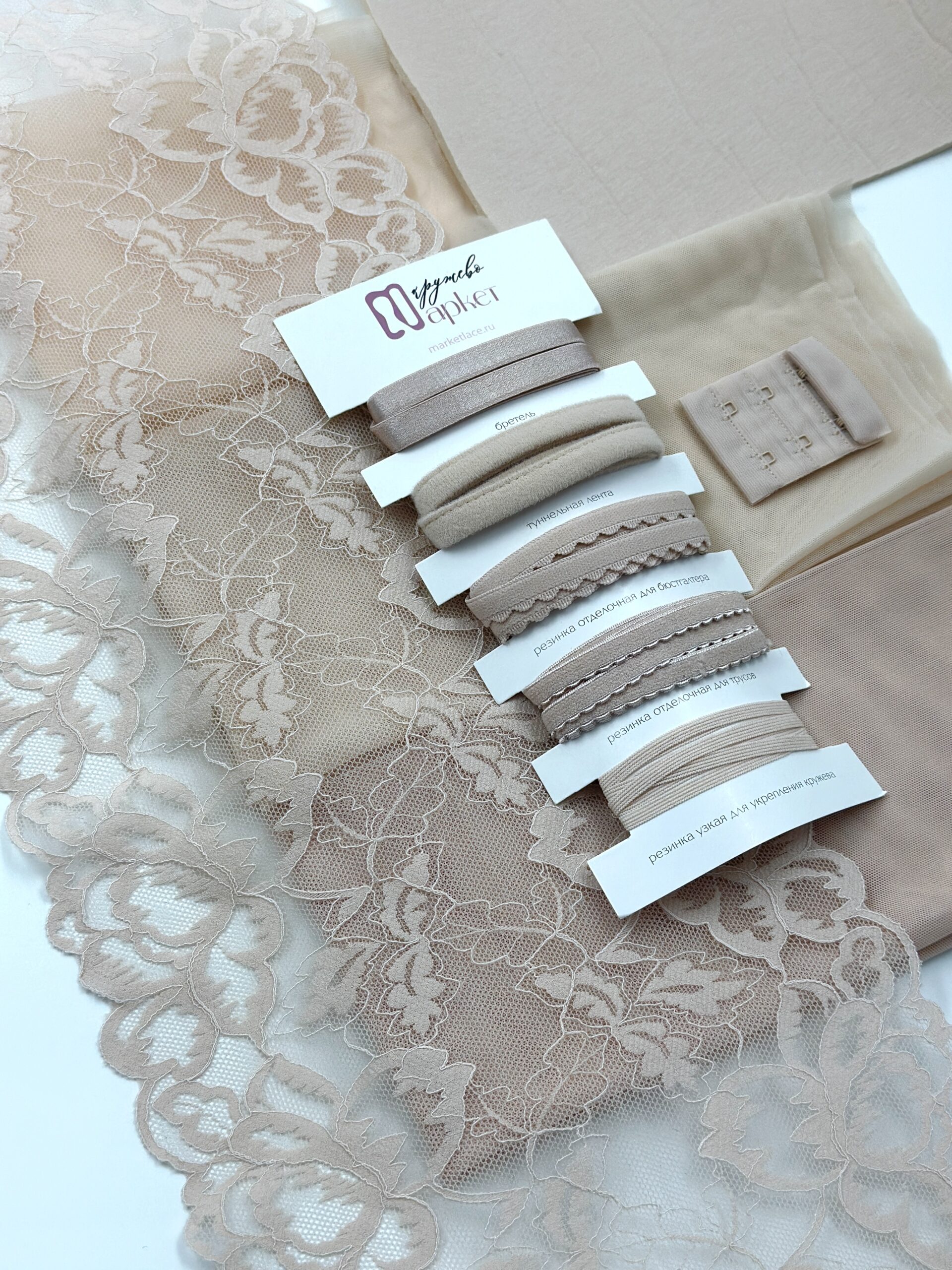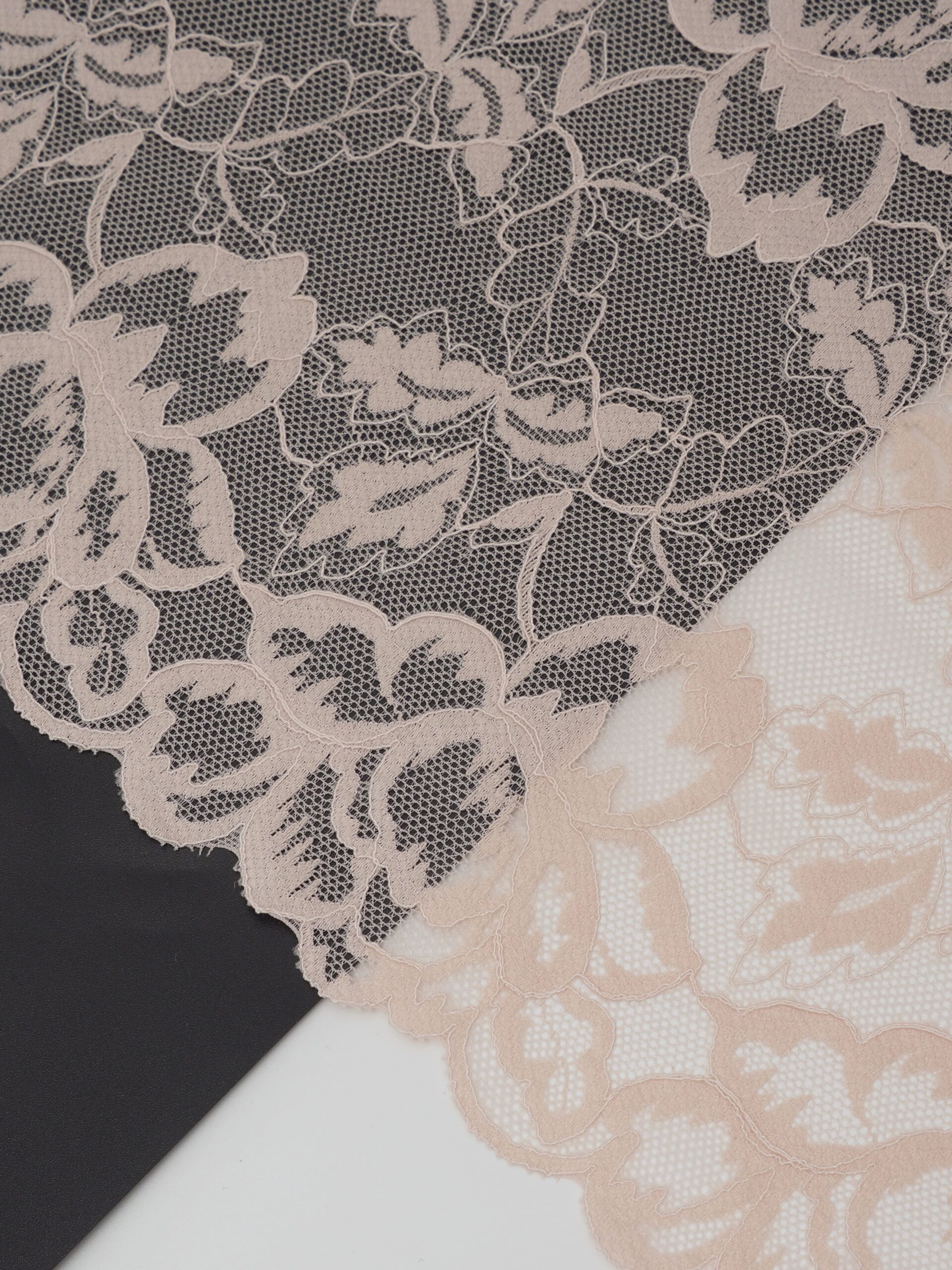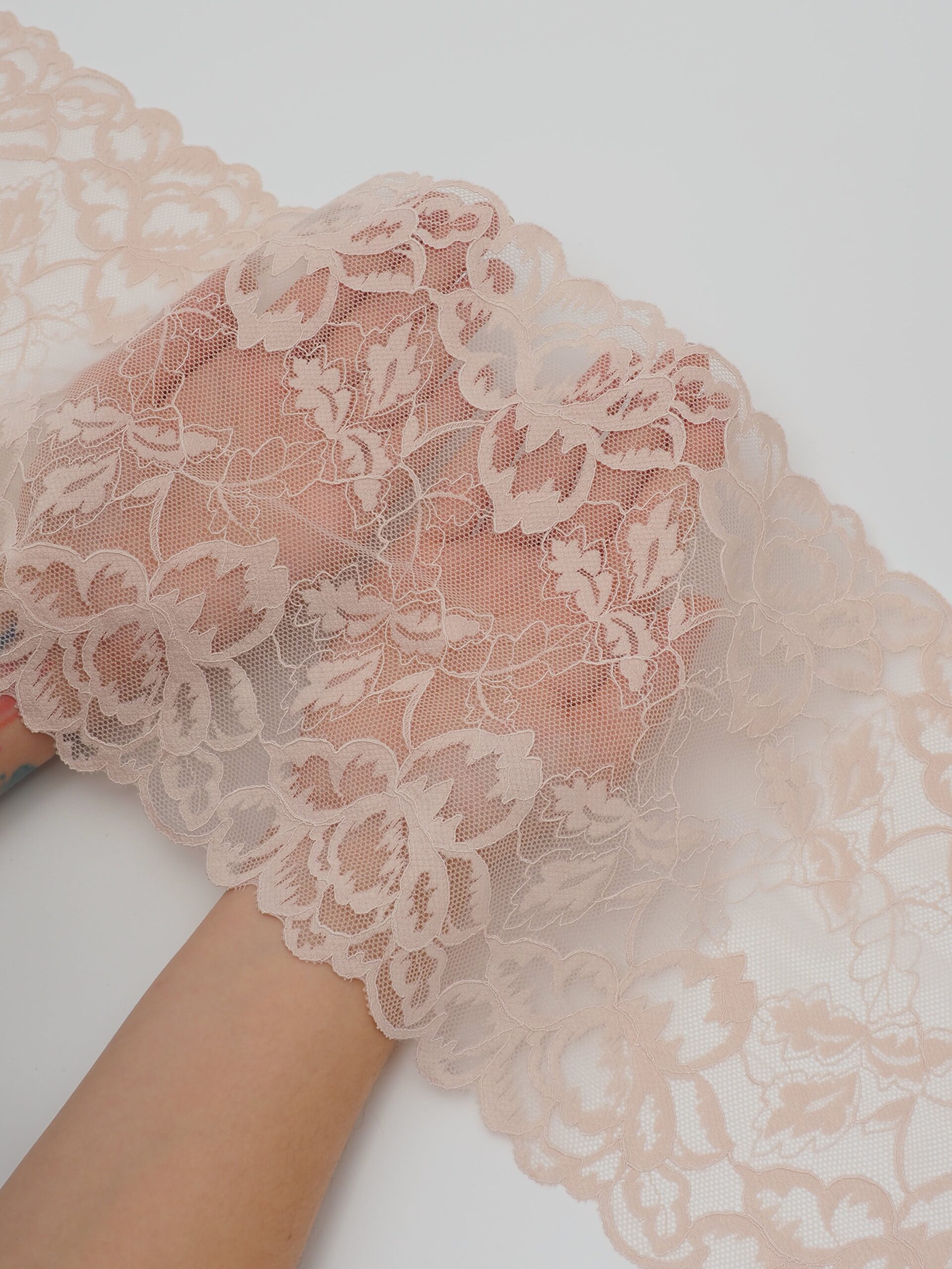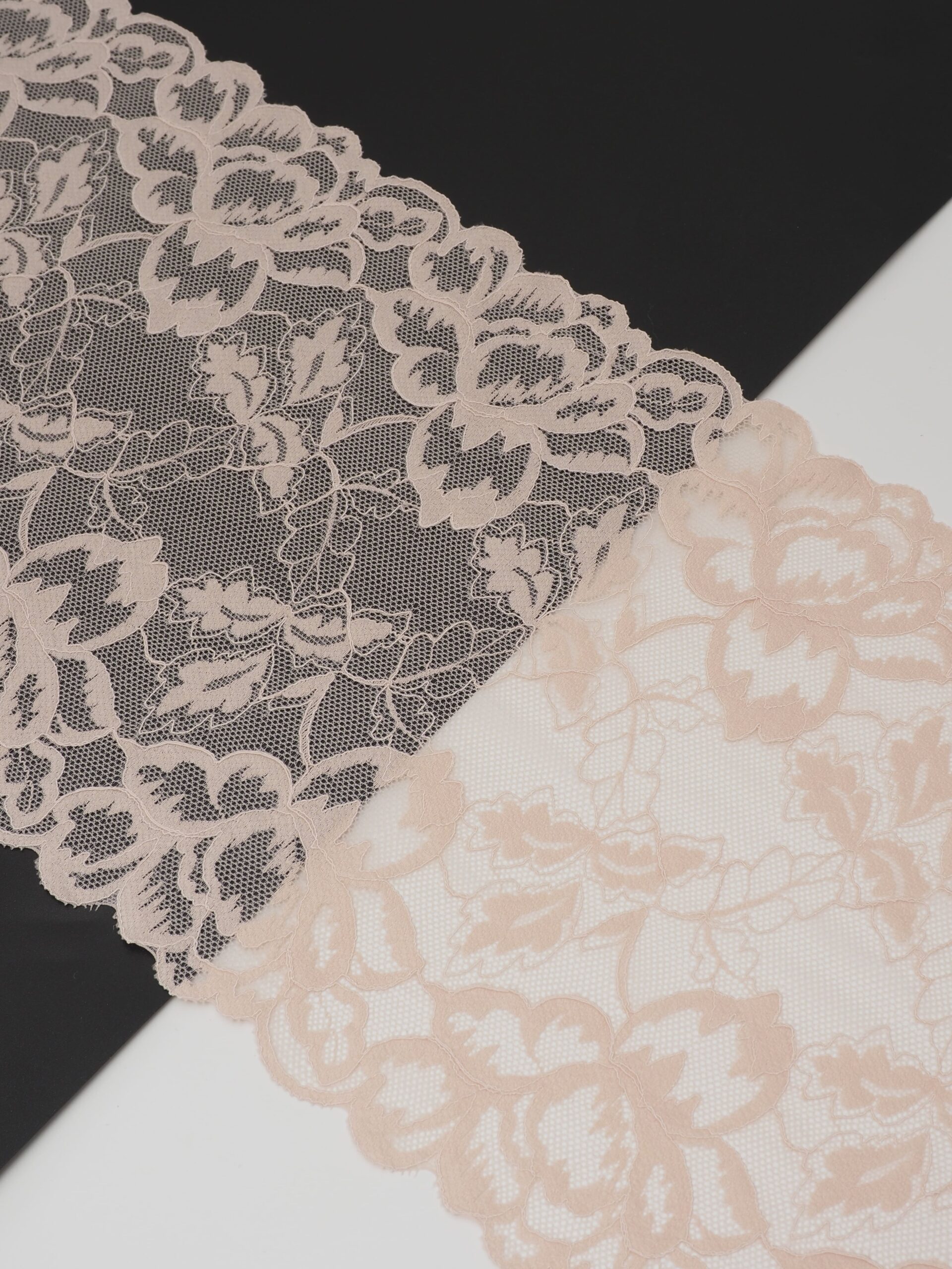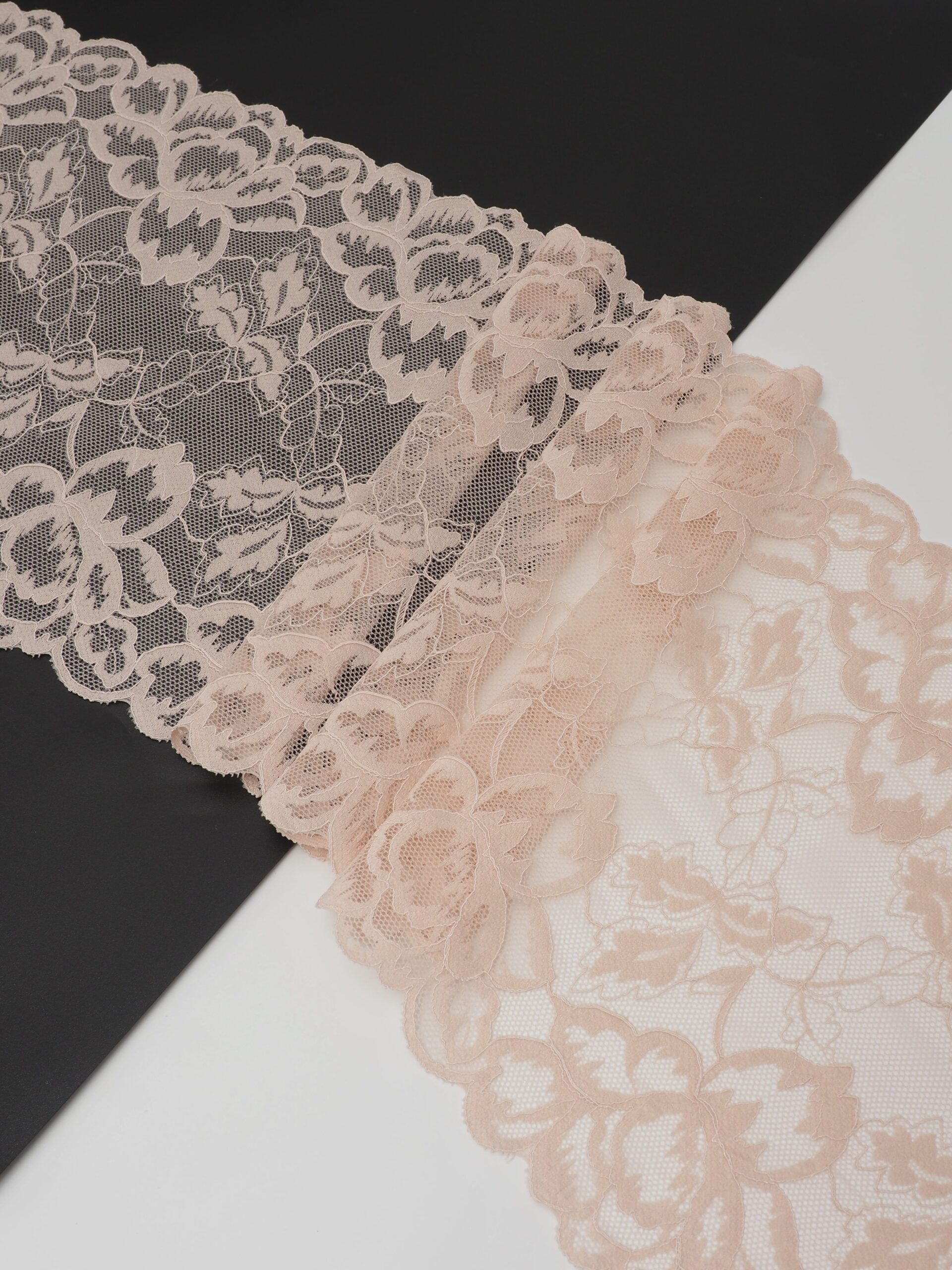 Кружево эластичное бежевого цвета. Стрейч кружево оттенка серебристый пион с розовинкой с цветочным рисунком.
