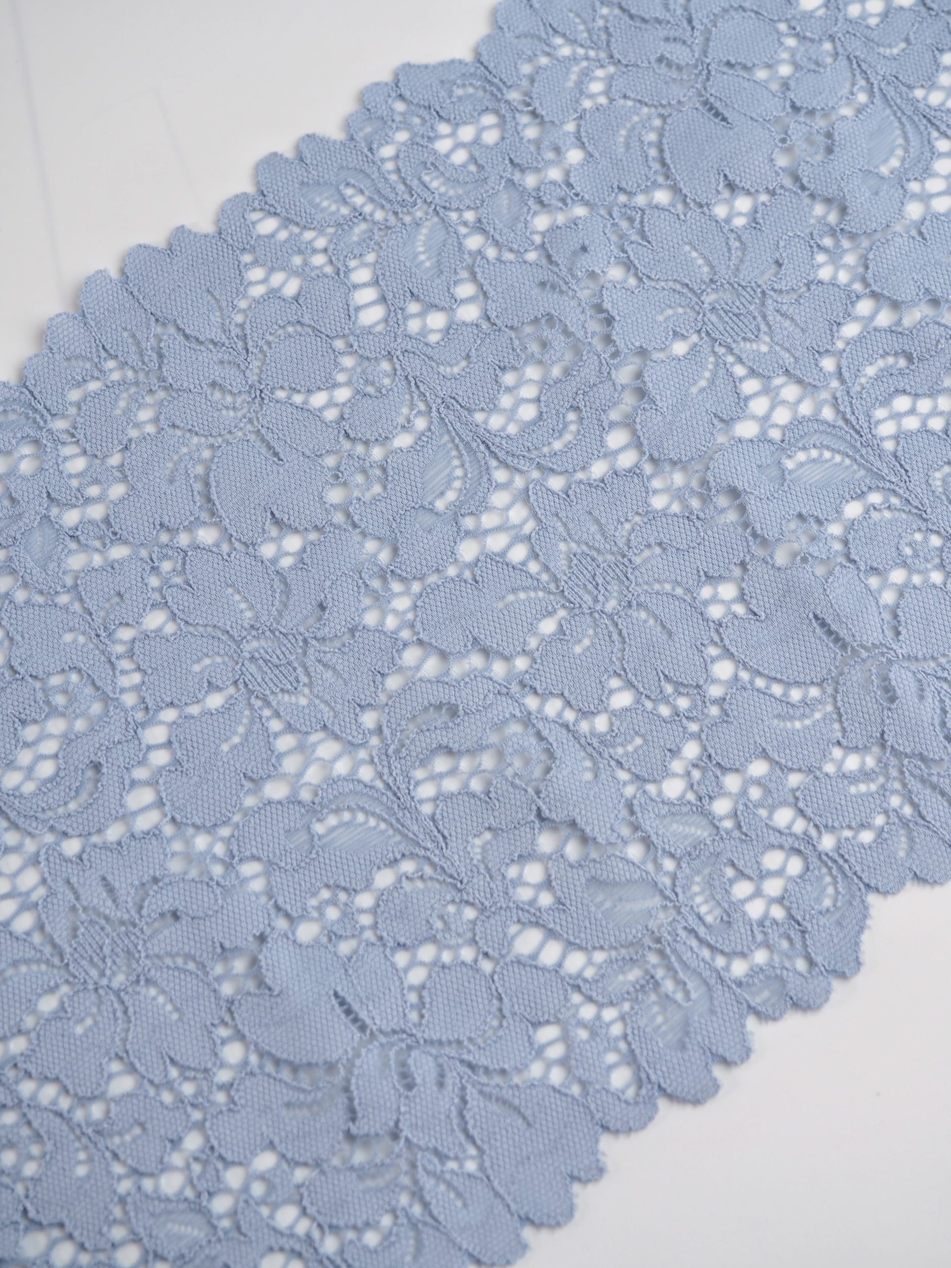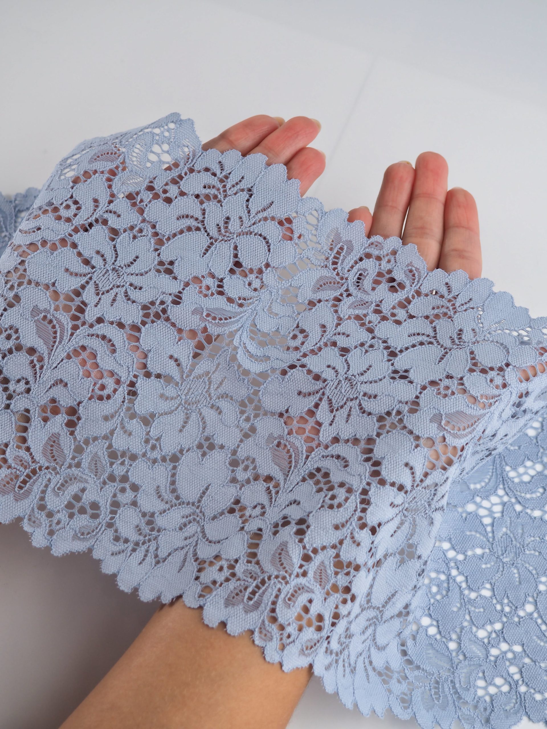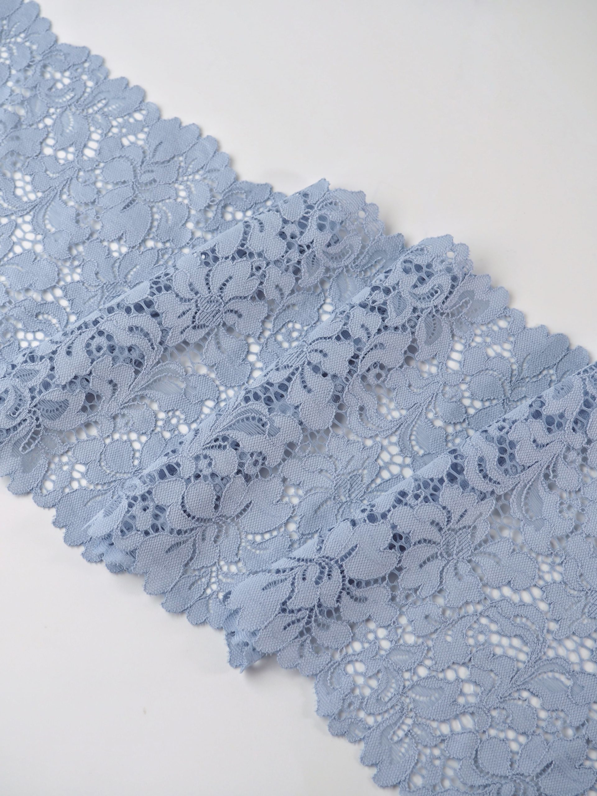 Эластичное кружево серо-голубое ширина 19 см ОТРЕЗЫ