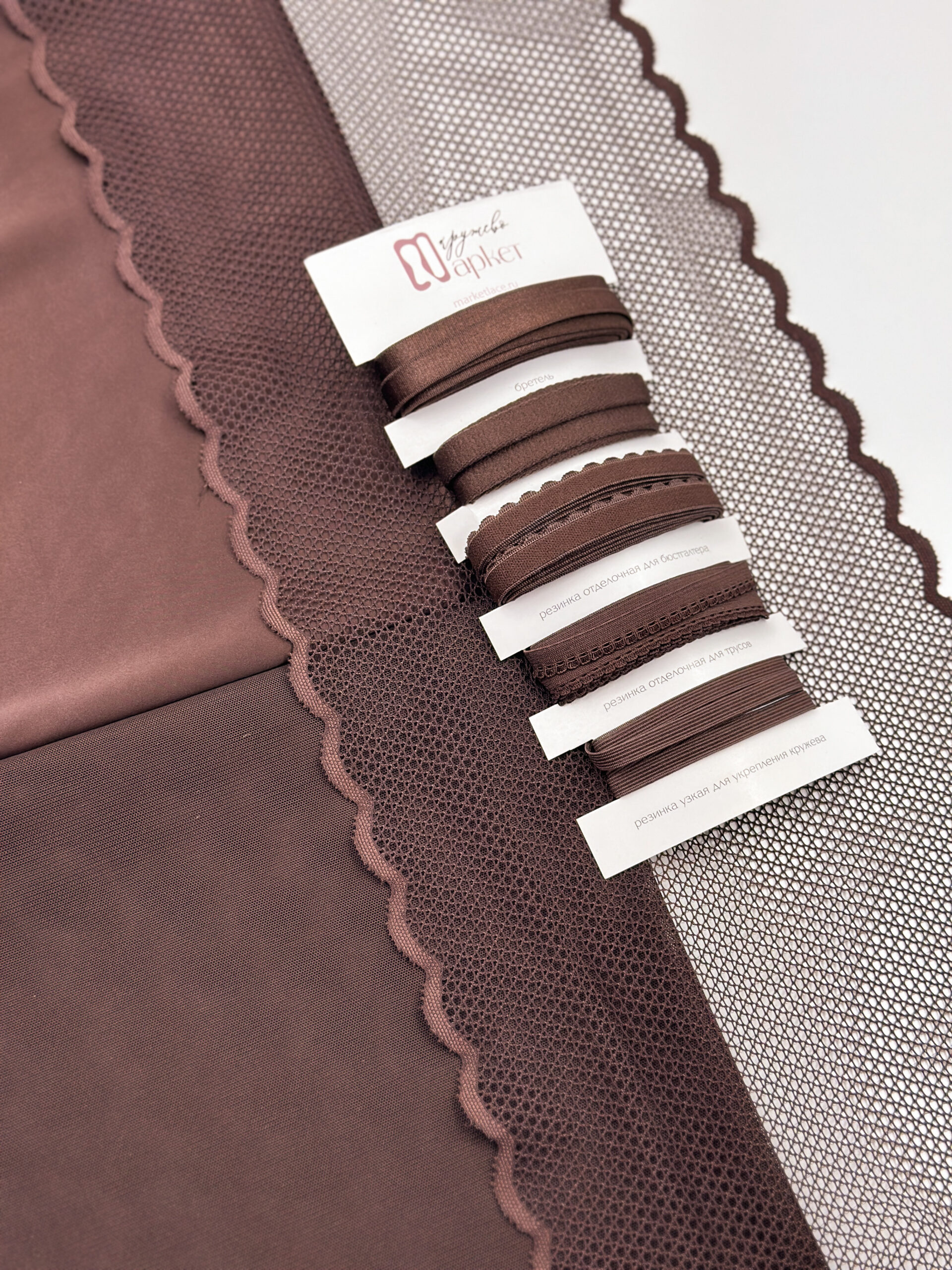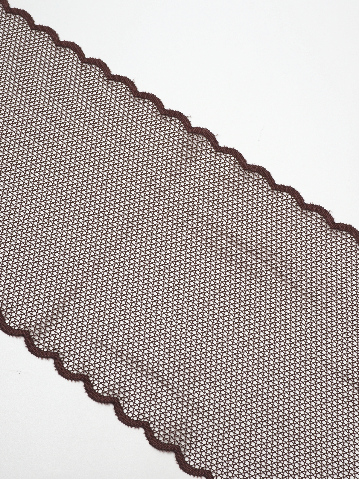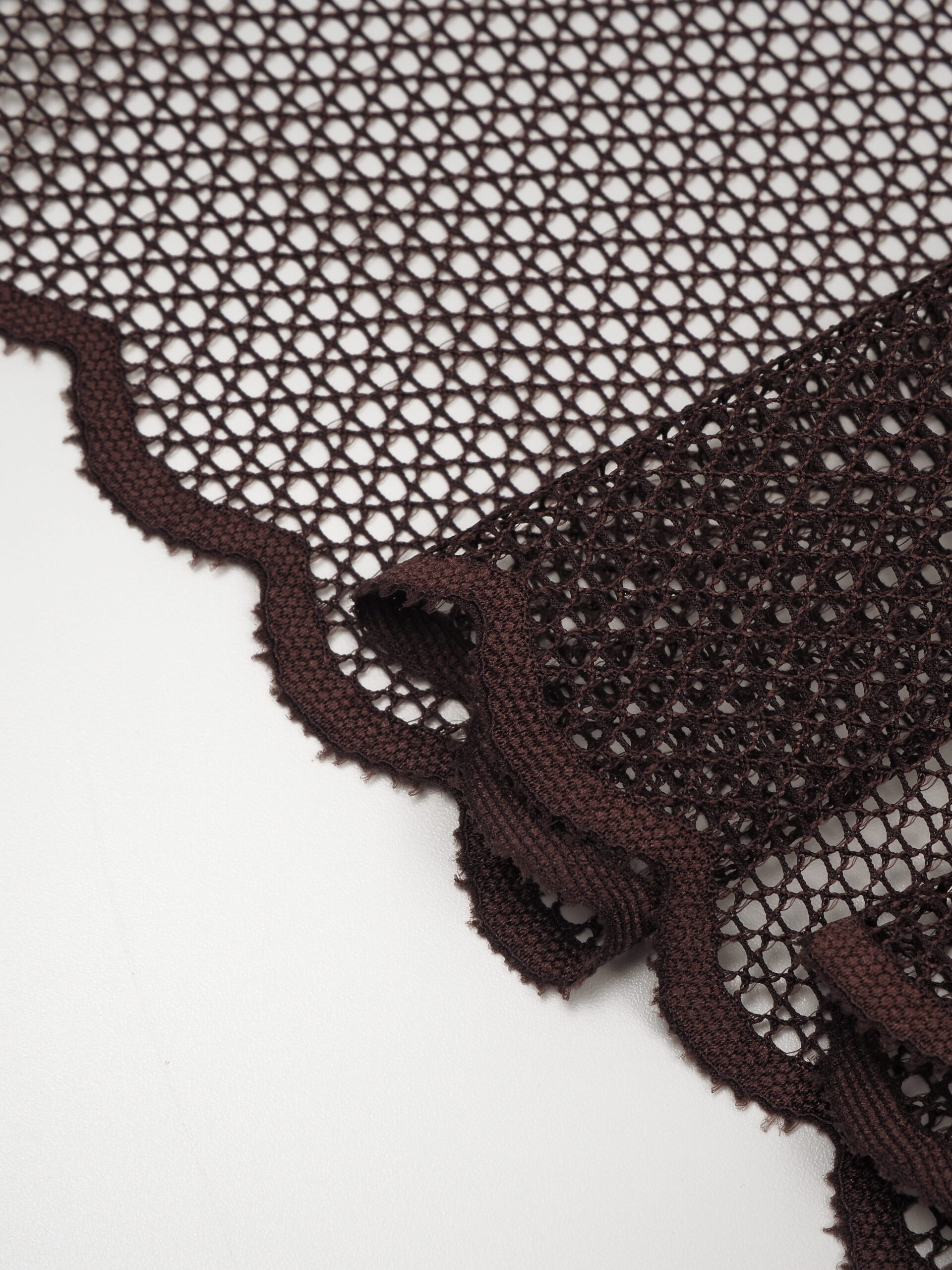 Изысканное стрейч кружево в коричневом цвете станет идеальным выбором для создания роскошного нижнего белья. Ширина полотна позволяет использовать материал как для декоративных элементов, так и для основного кроя.