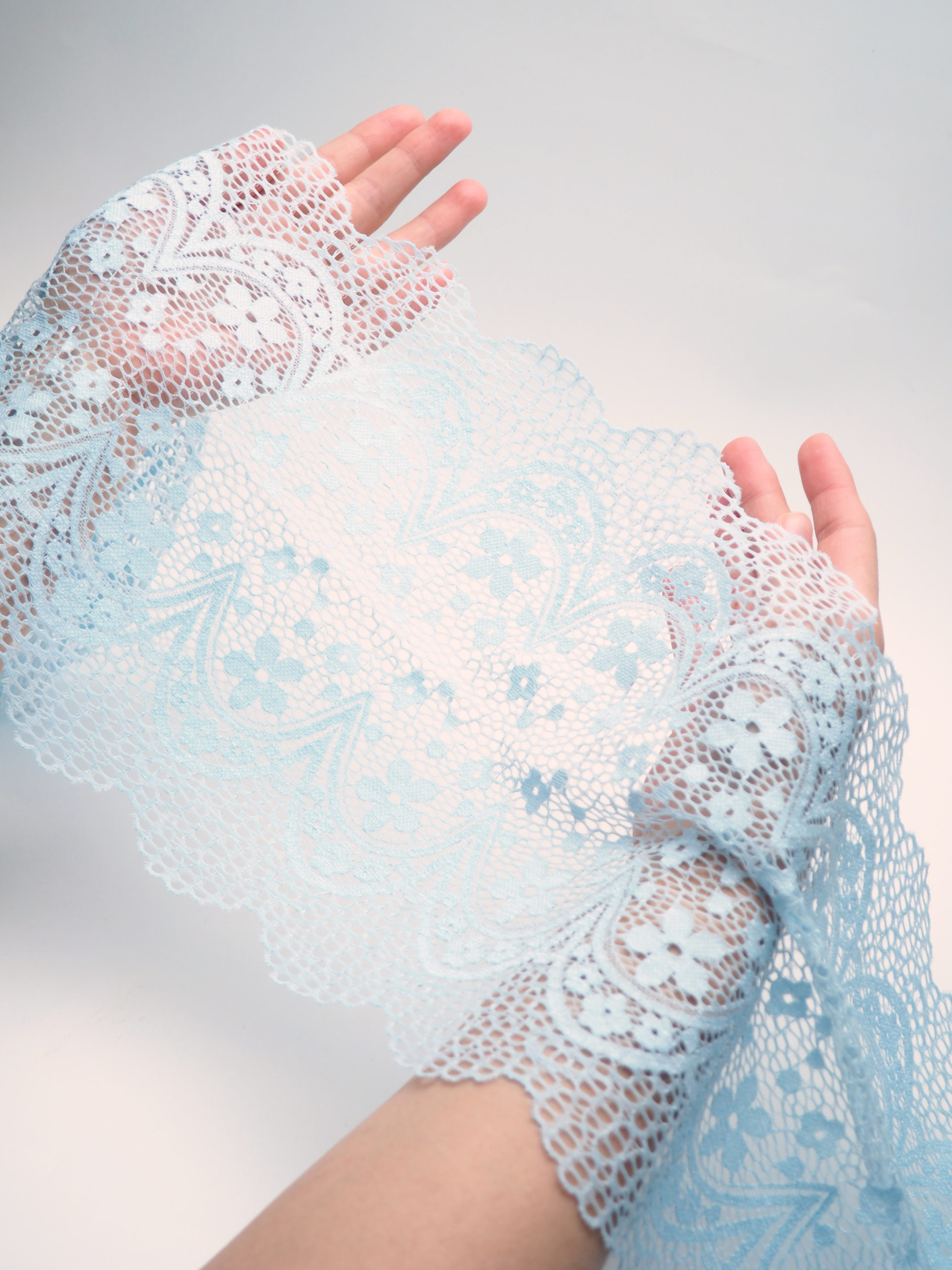 Эластичное кружево светло-голубое ширина 19.5 см