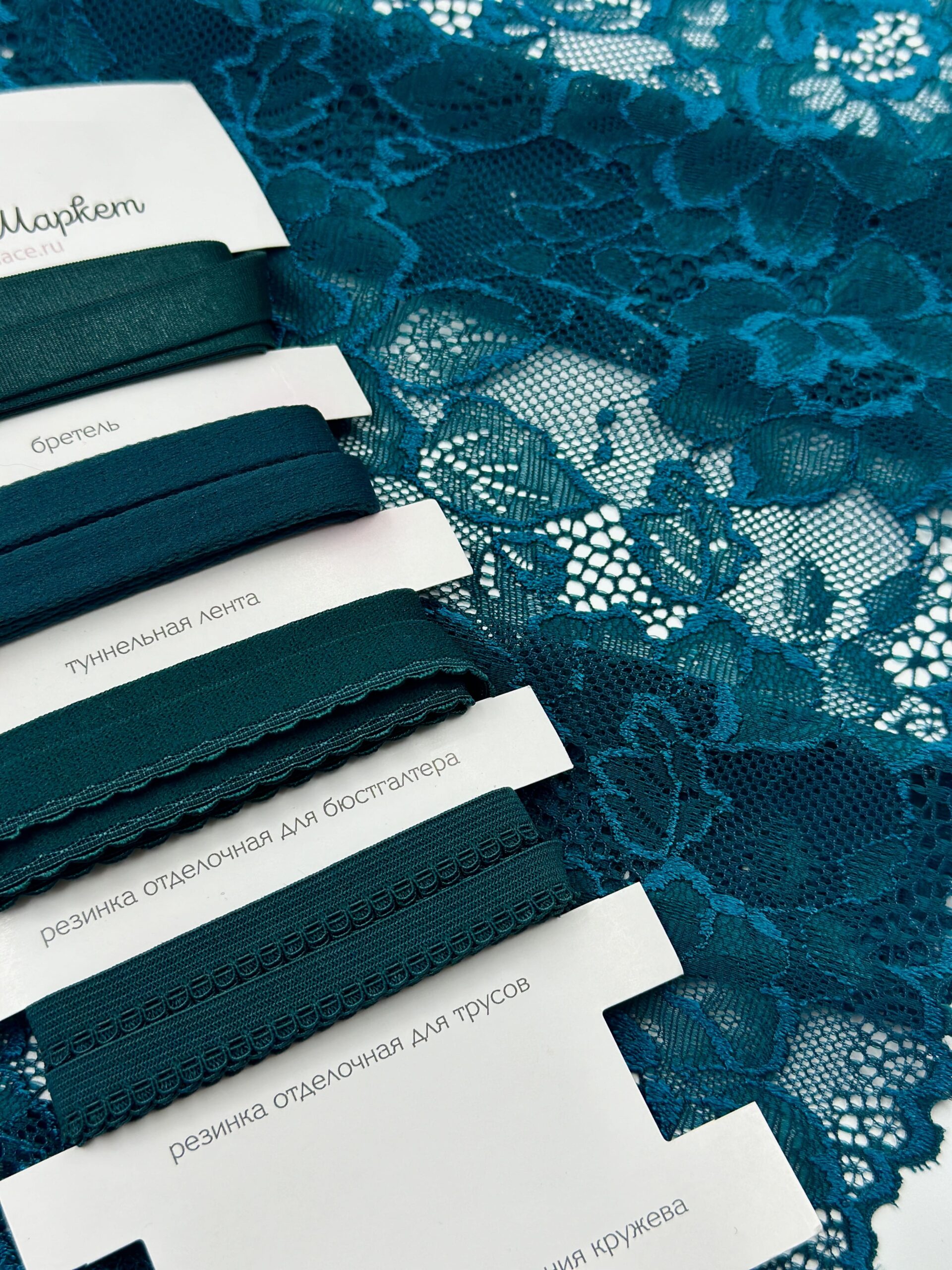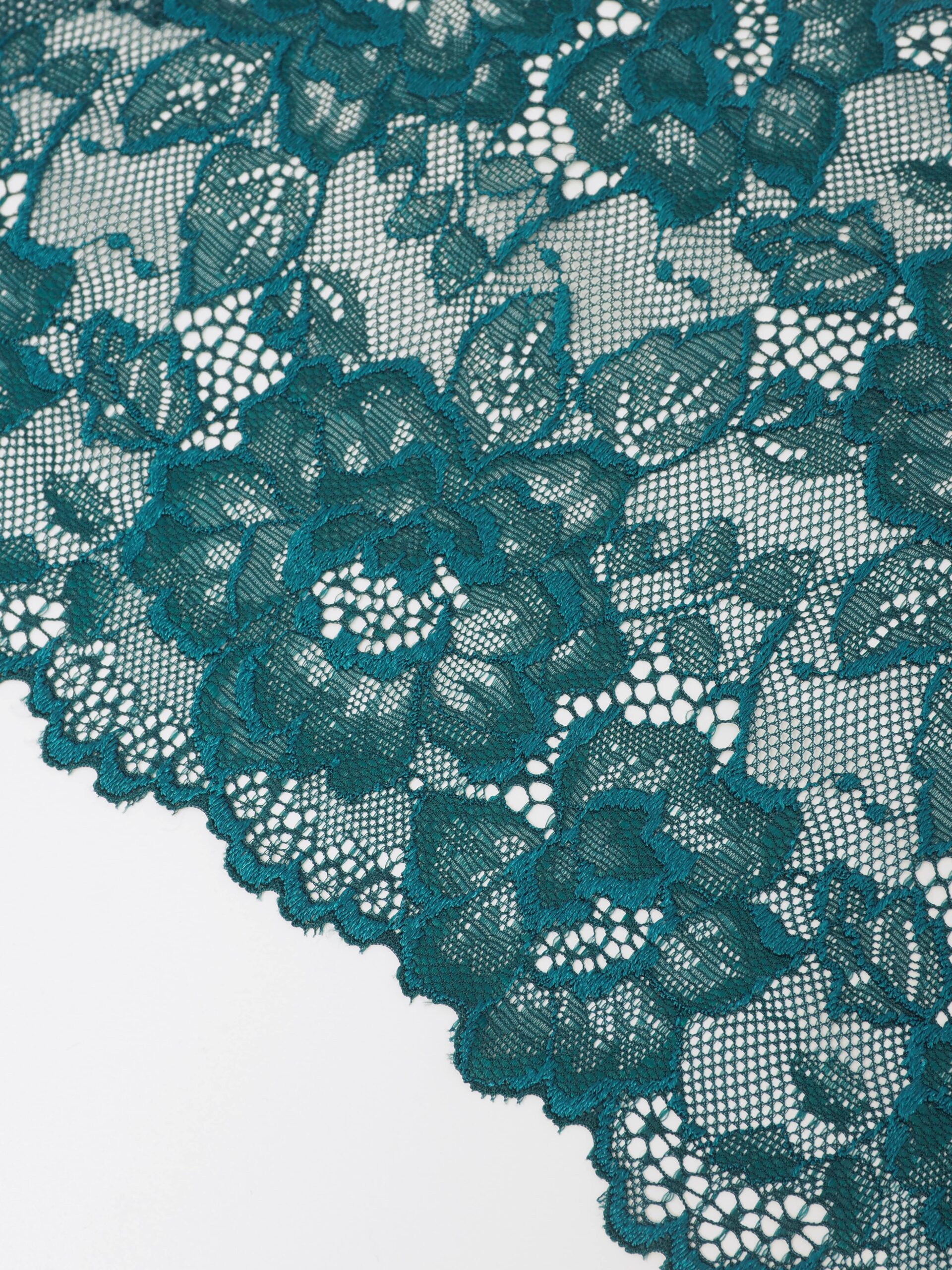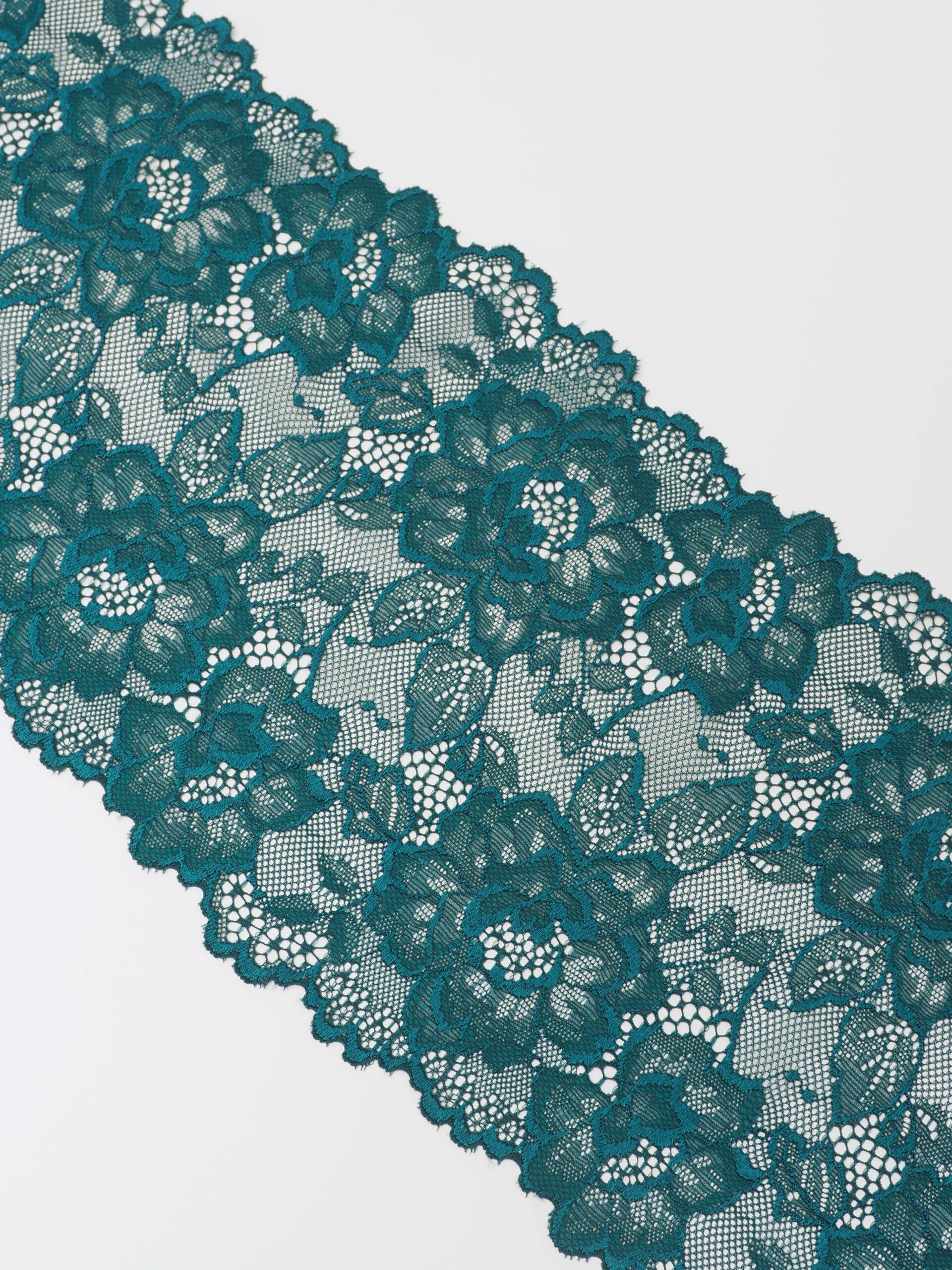 Кружево эластичное зеленого цвета. Стрейч кружево темно-зеленого цвета с цветочным рисунком.