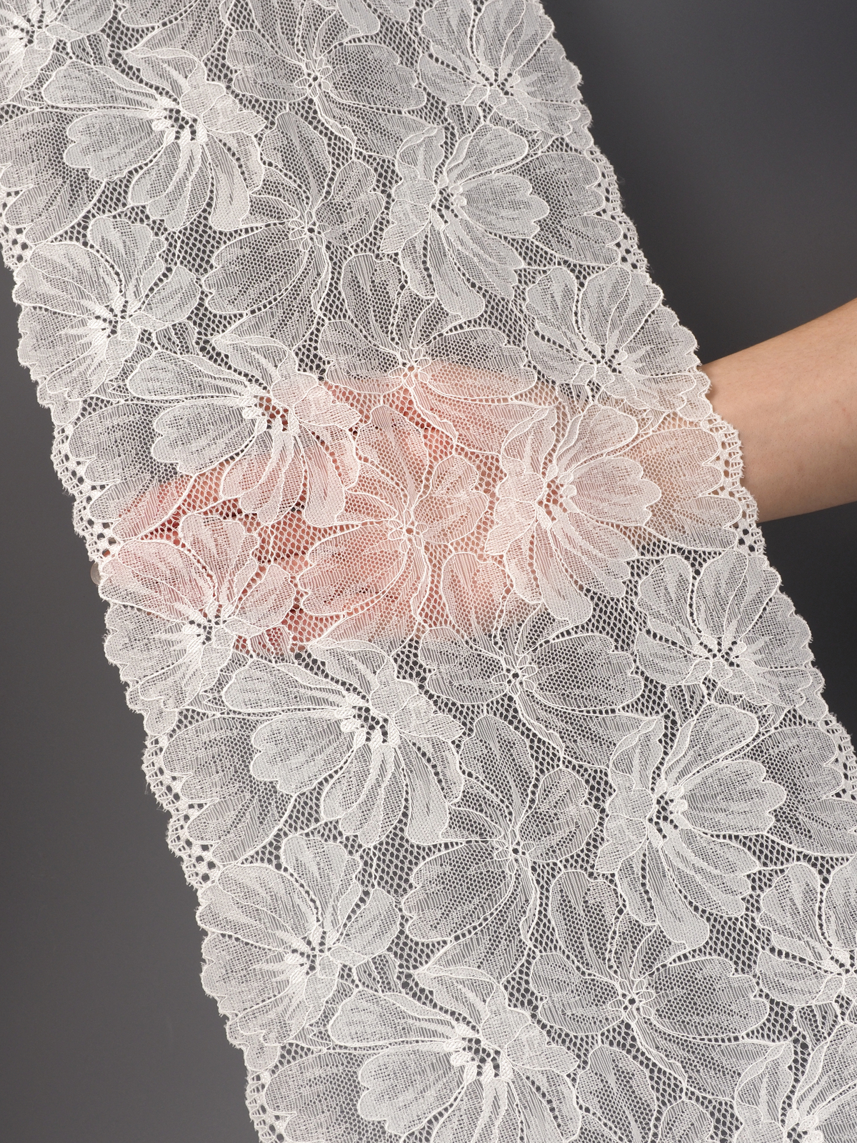 Изысканное стрейч кружево станет идеальным выбором для создания роскошного нижнего белья. Ширина полотна позволяет использовать материал как для декоративных элементов, так и для основного кроя.