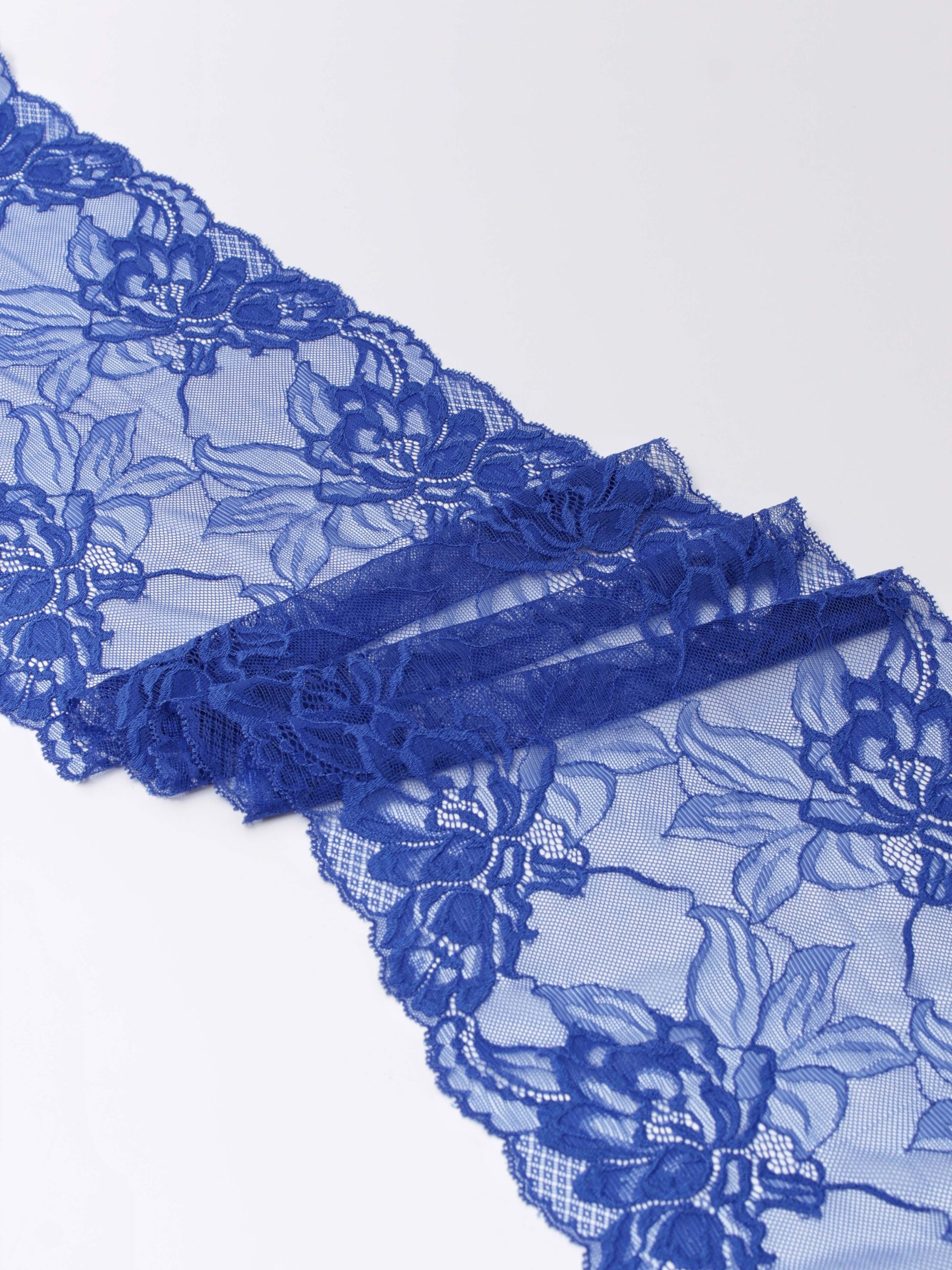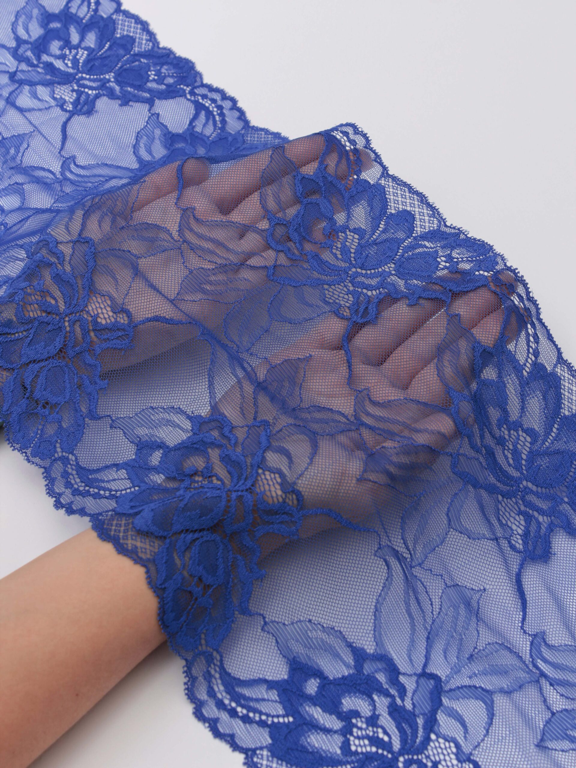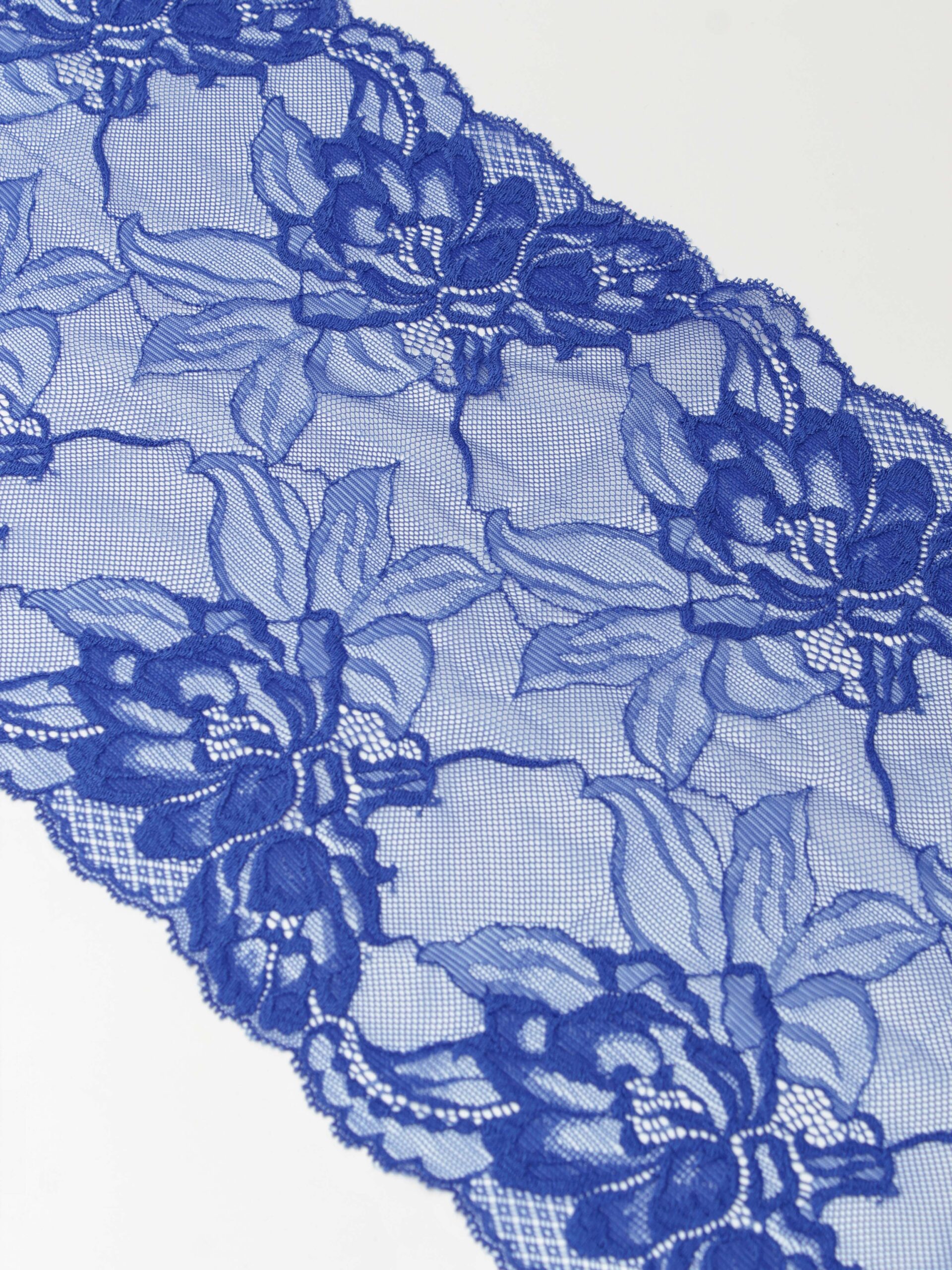 Кружево эластичное синее. Стрейч кружево васильковое с цветочным узором.
