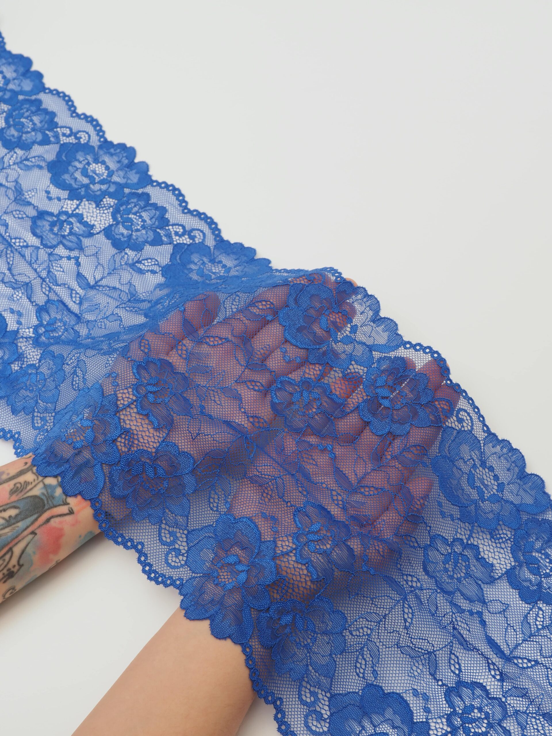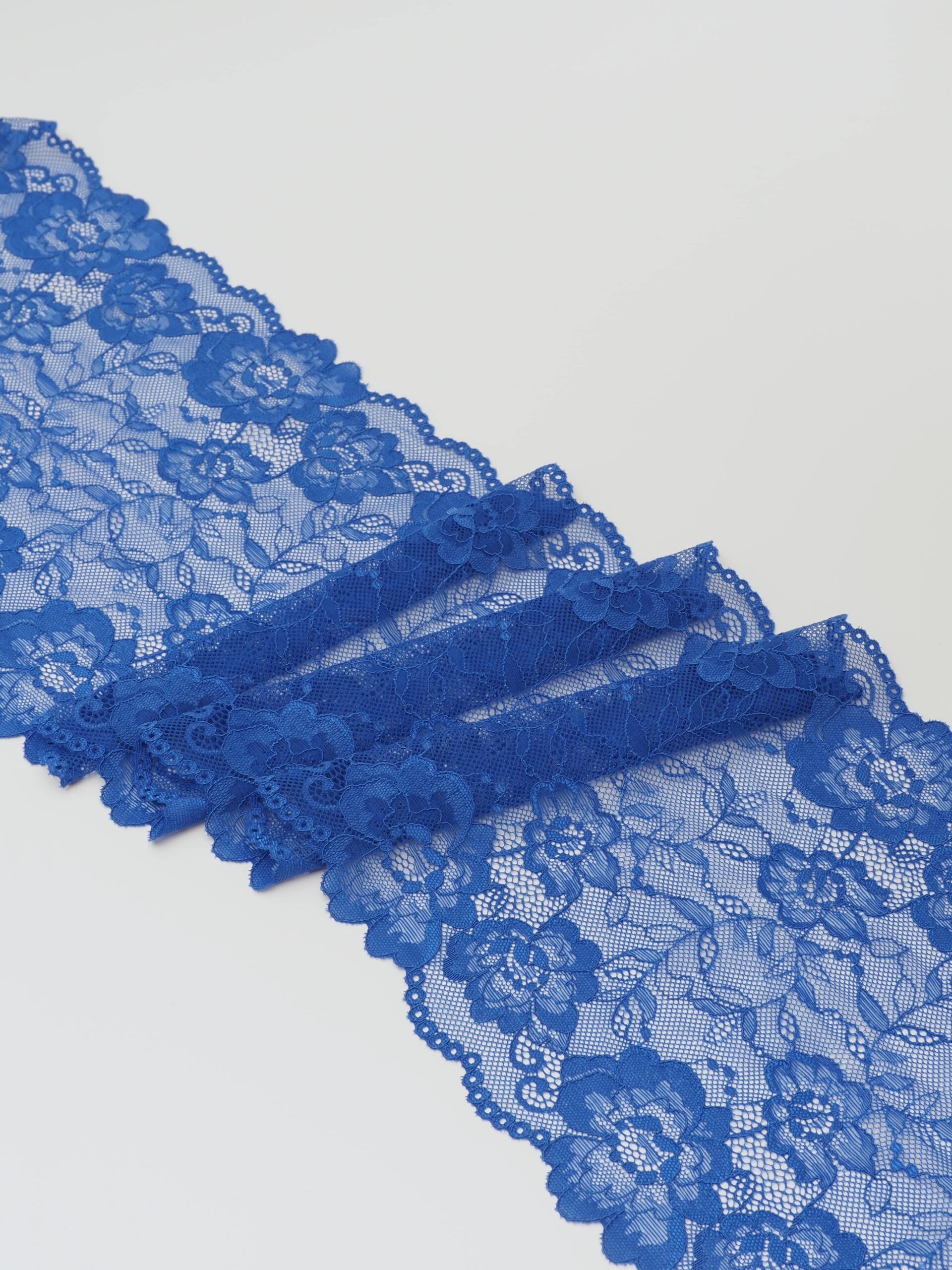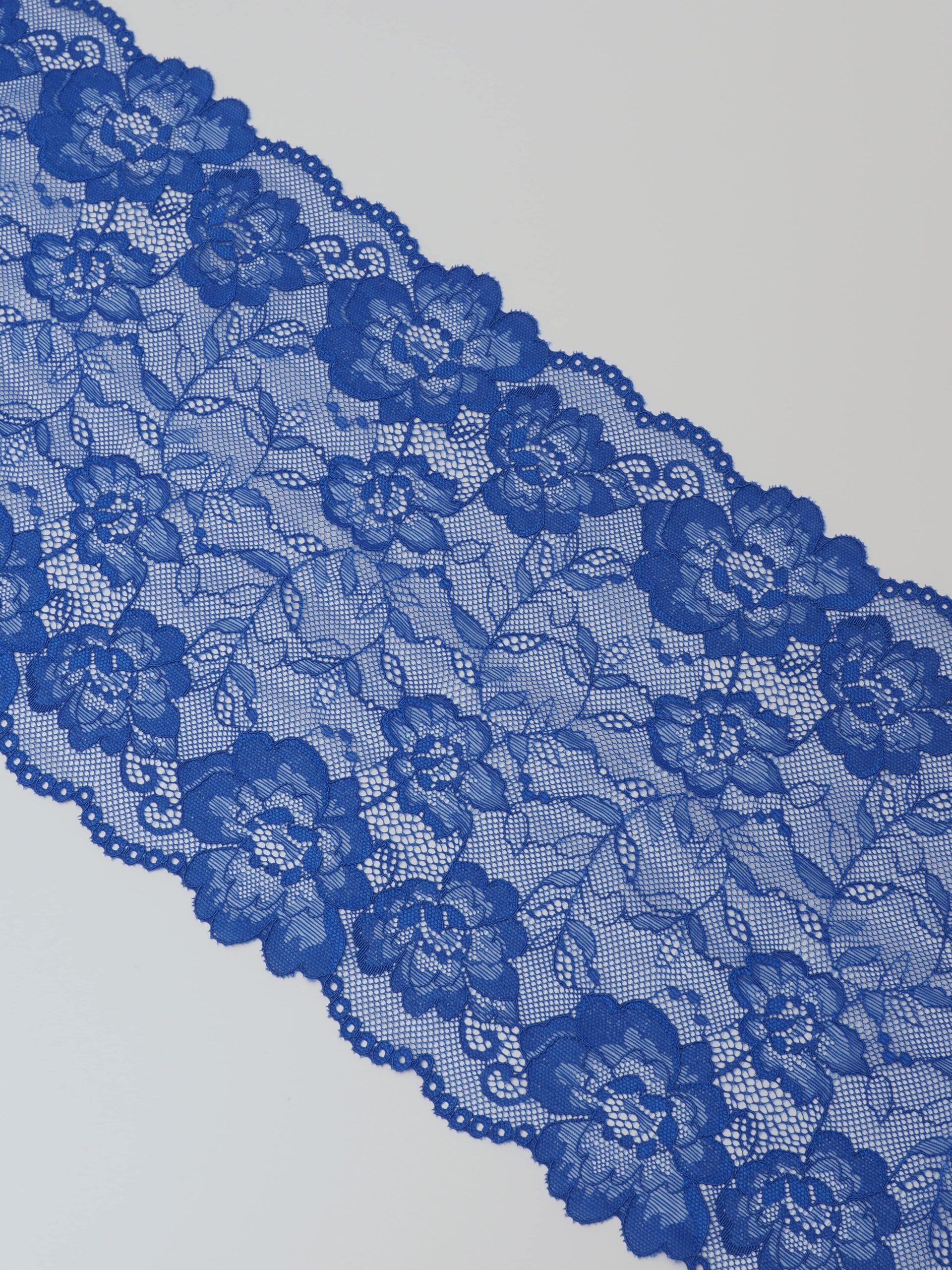 Кружево эластичное синее. Стрейч кружево васильковое с цветочным узором.