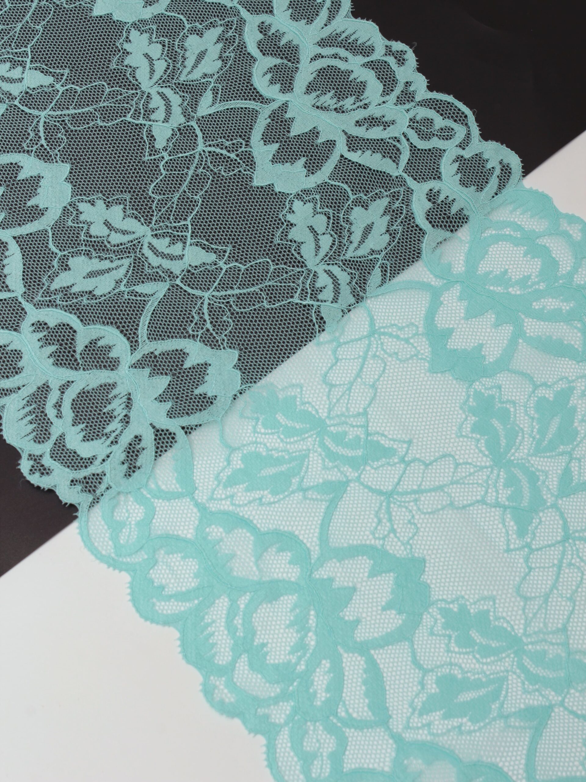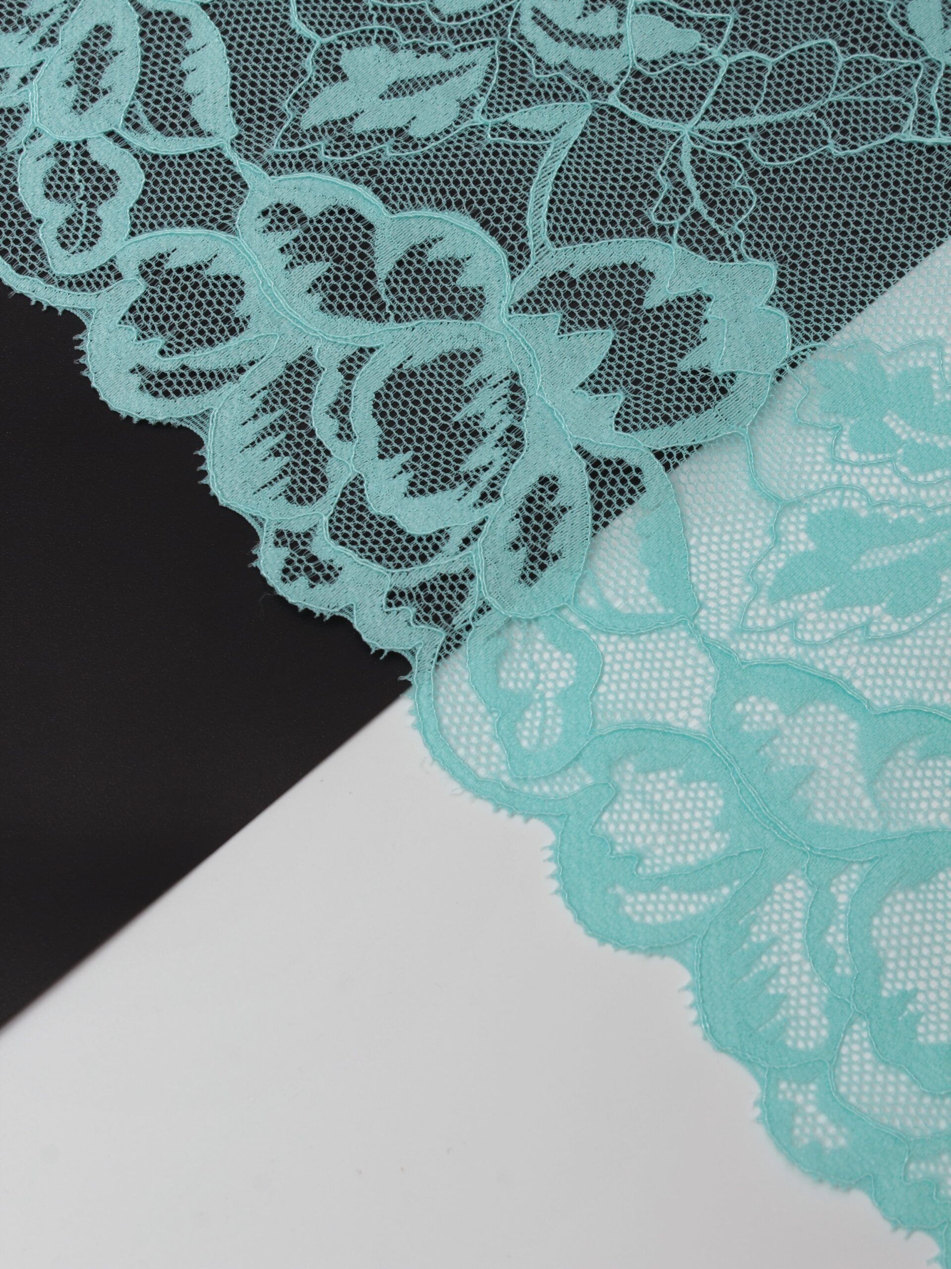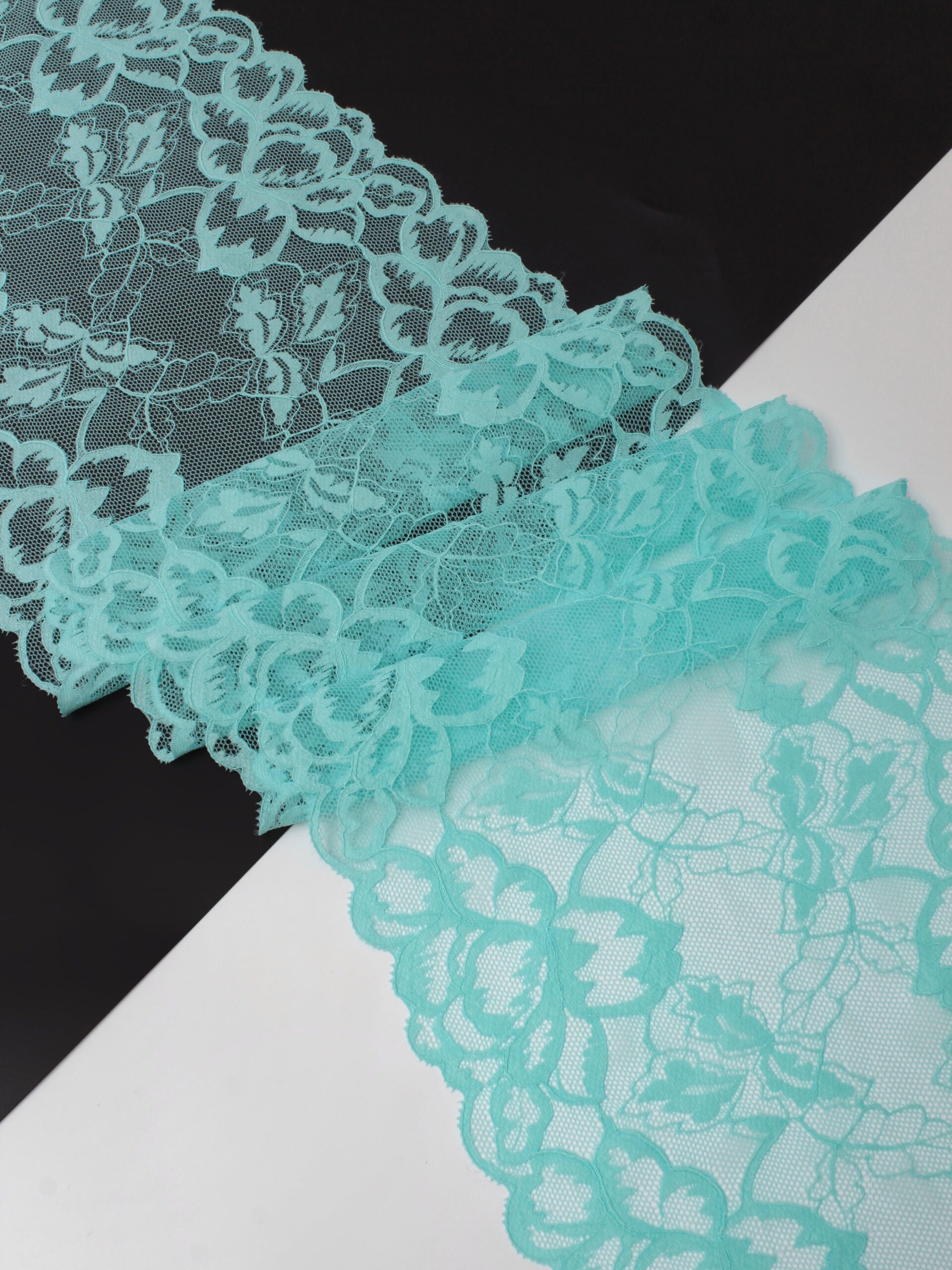 Кружево эластичное голубого цвета. Кружево стрейч оттенка яркий тиффани. Голубой опал по Lauma (422).