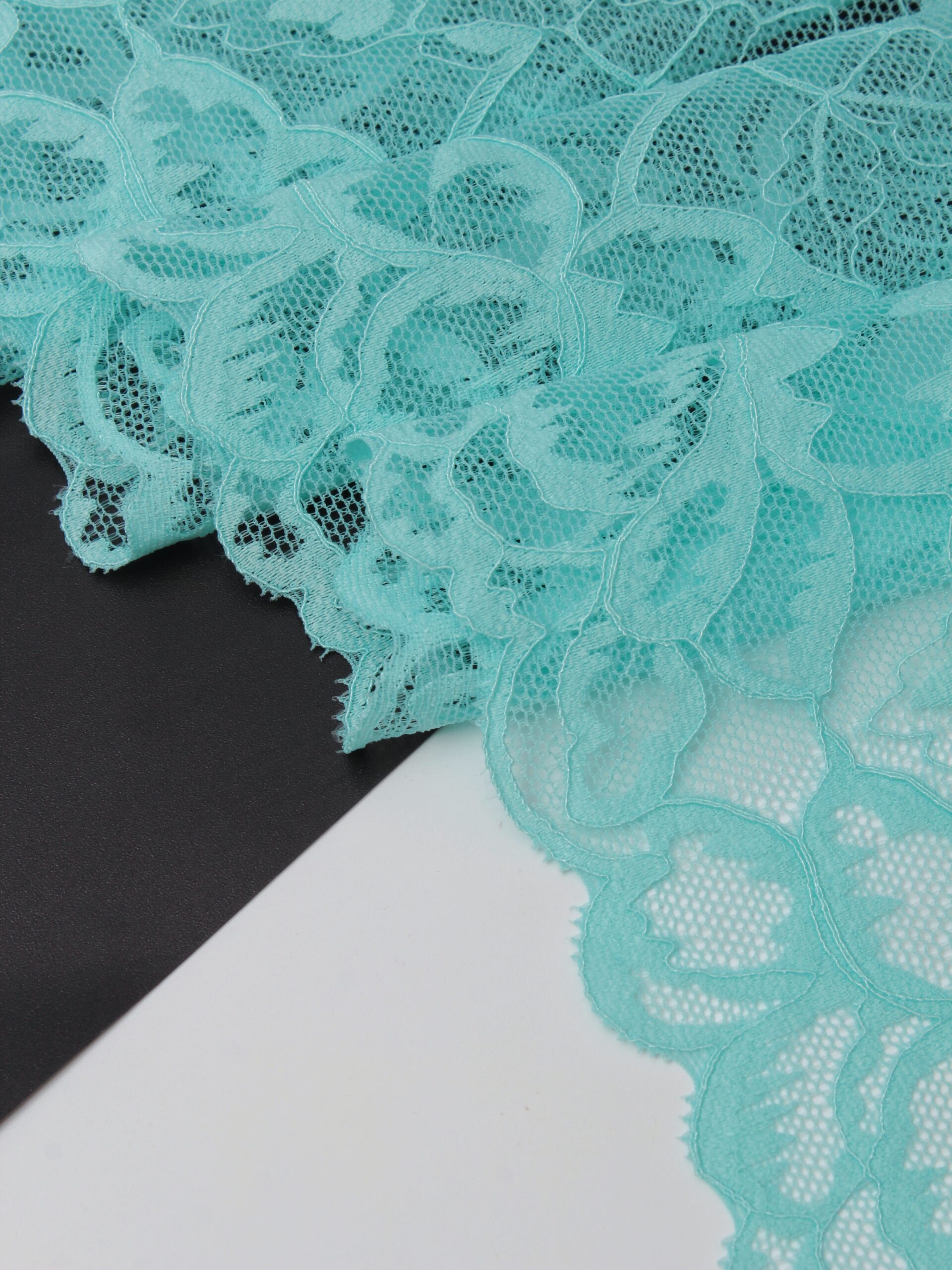 Кружево эластичное голубого цвета. Кружево стрейч оттенка яркий тиффани. Голубой опал по Lauma (422).