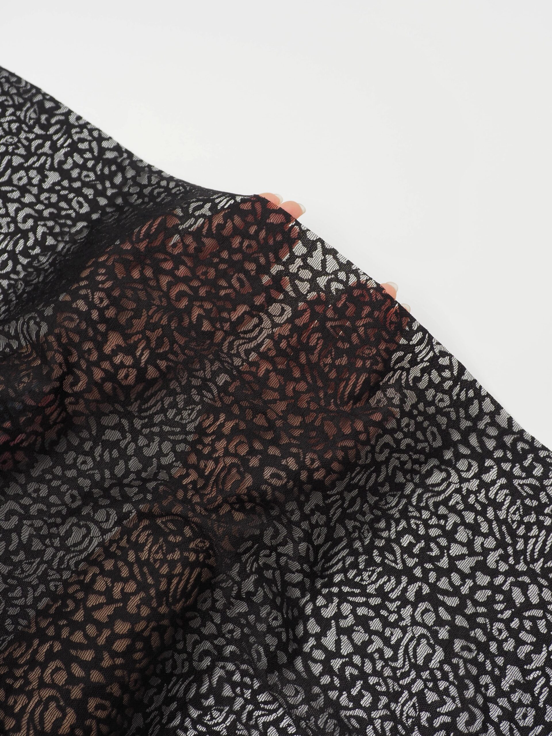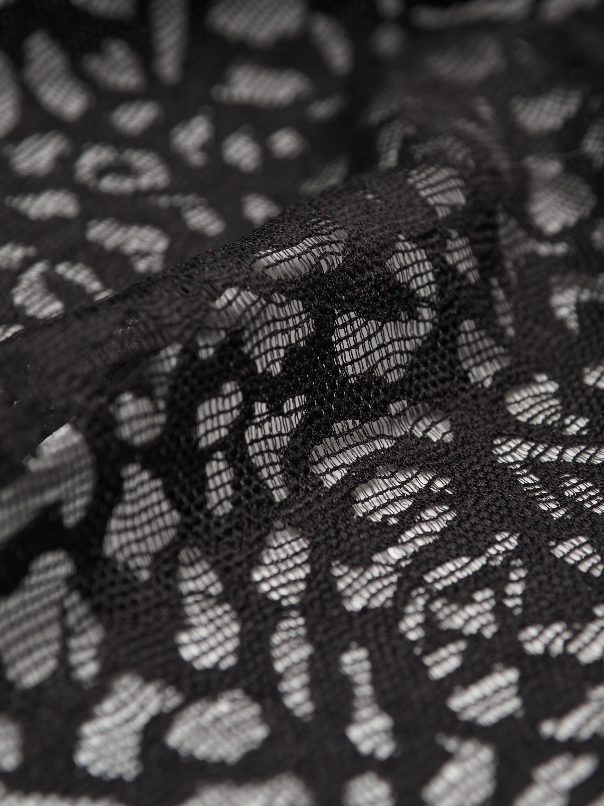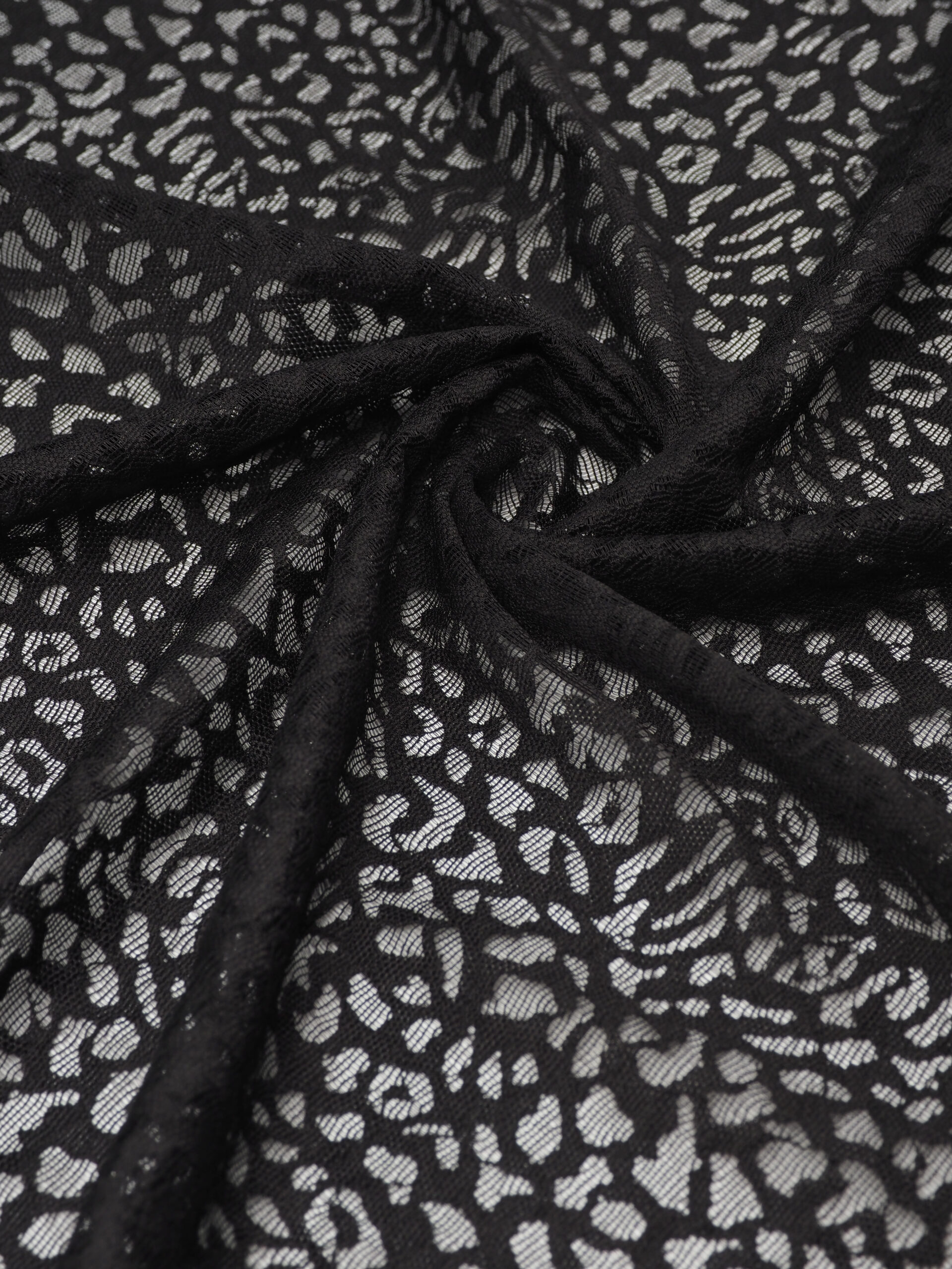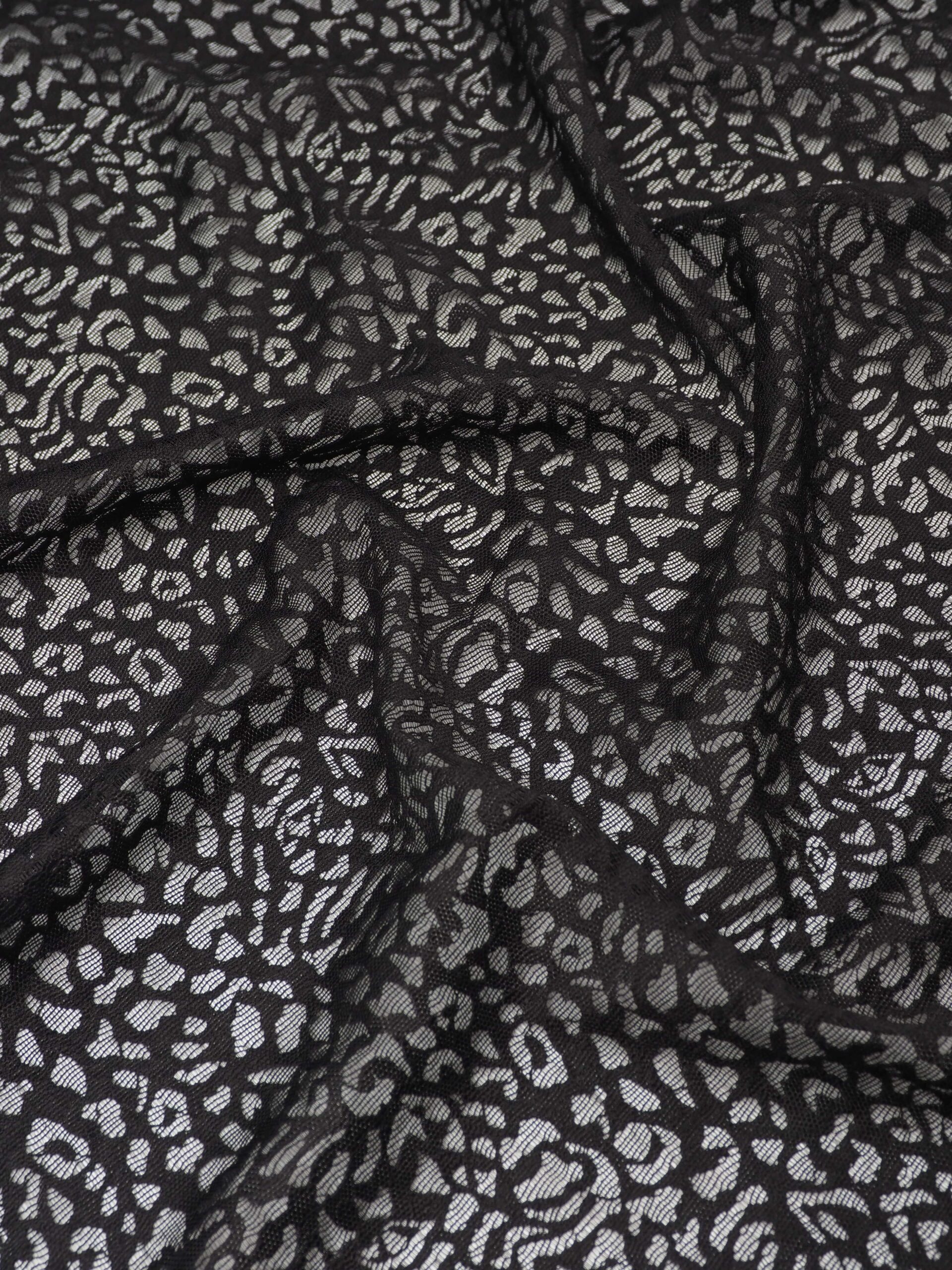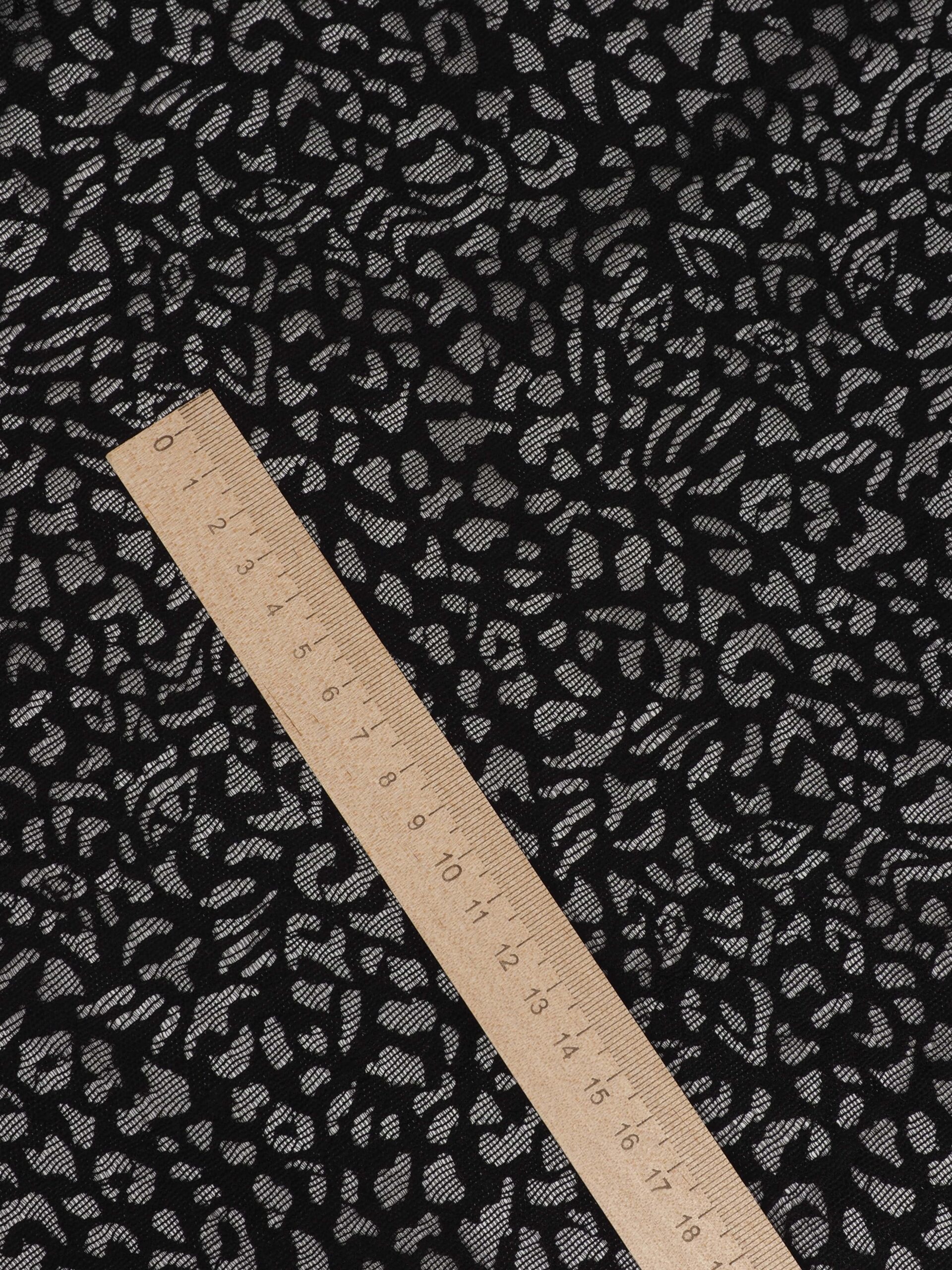 Ткань гипюр стрейч - кружевное полотно для шитья с леопардовым рисунком. Леопардовый анималистический принт. ТЯНЕТСЯ ТОЛЬКО В ОДНУ СТОРОНУ.