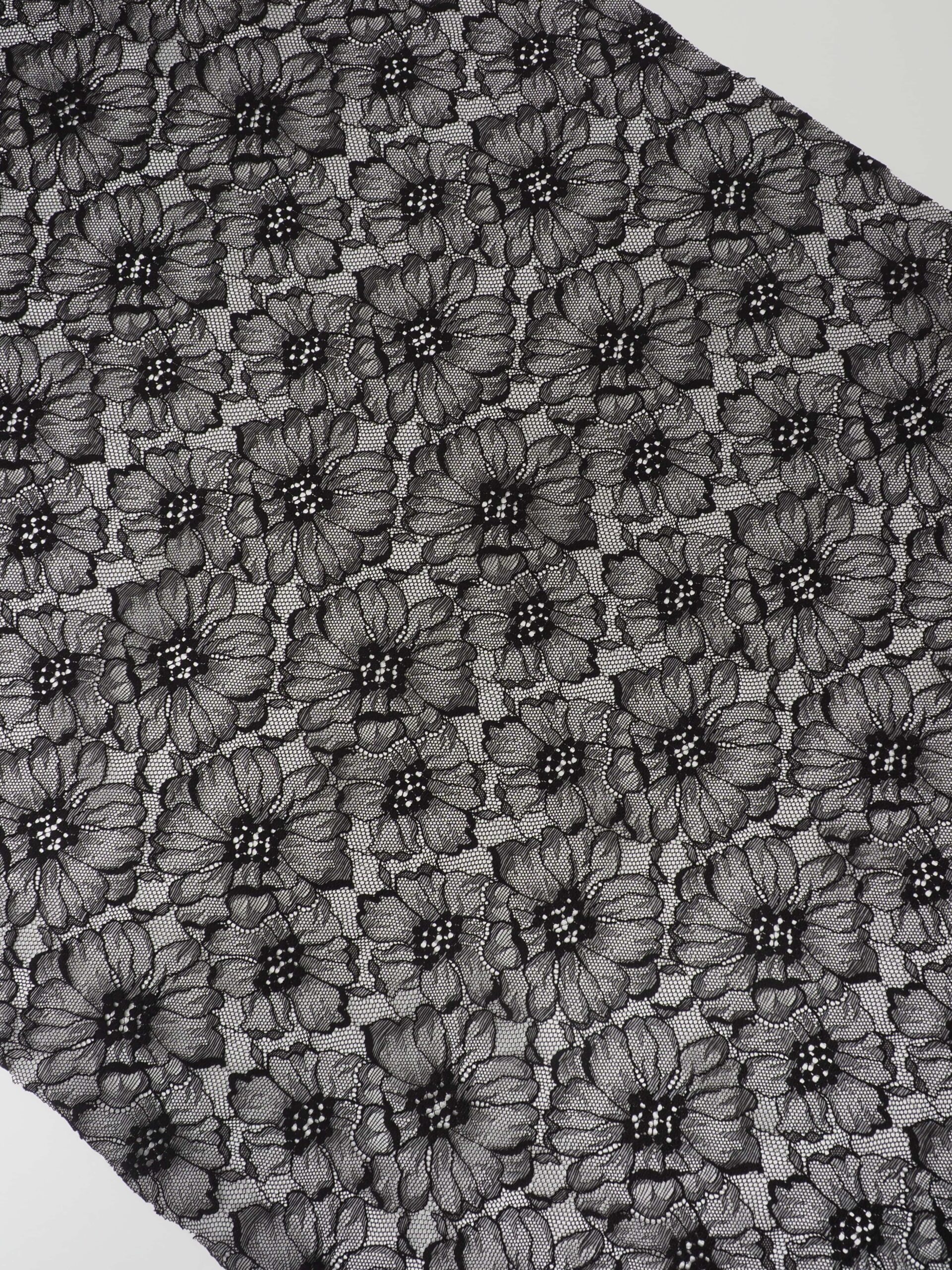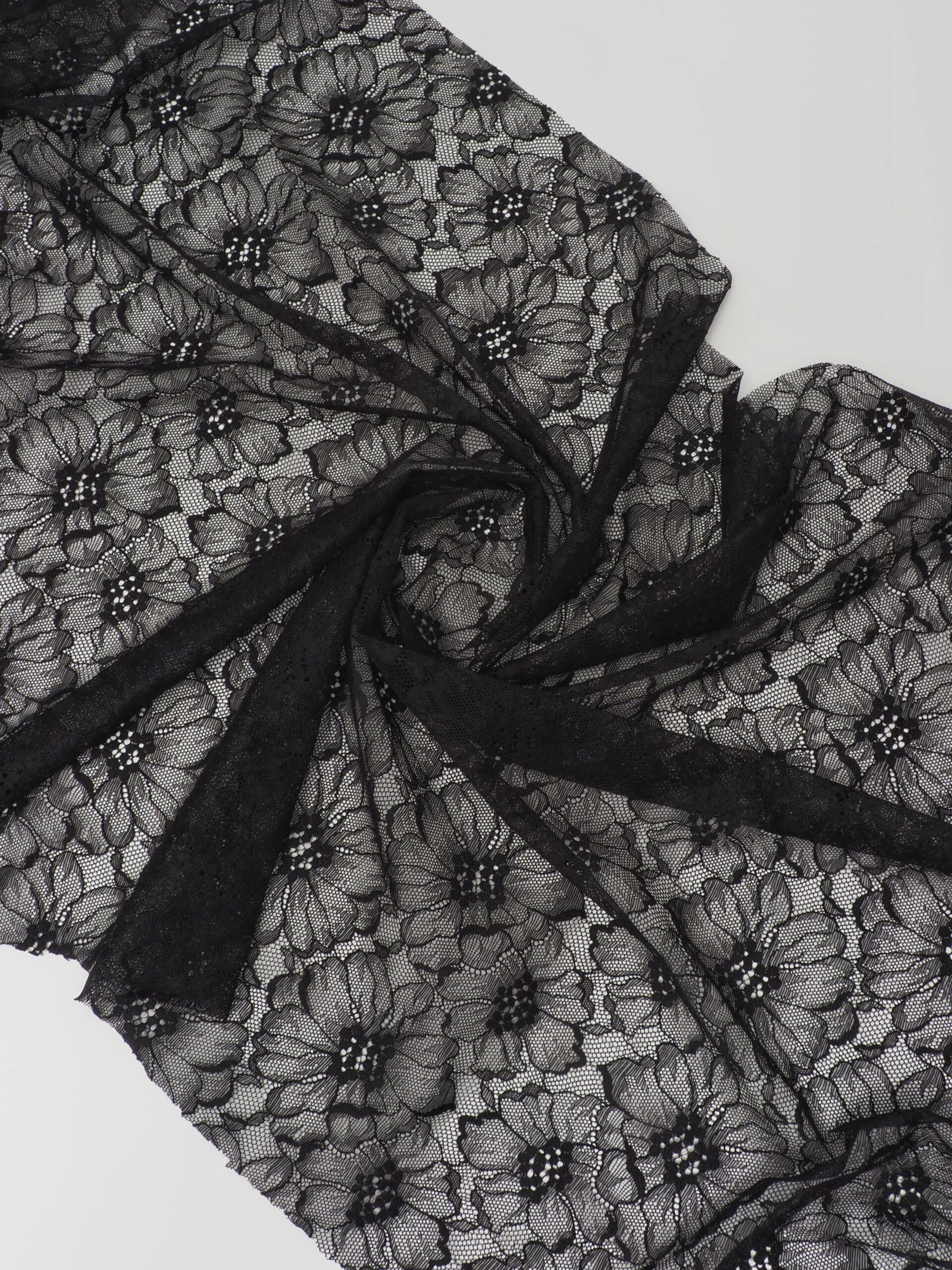 Гипюр эластичный черный ширина 150 см