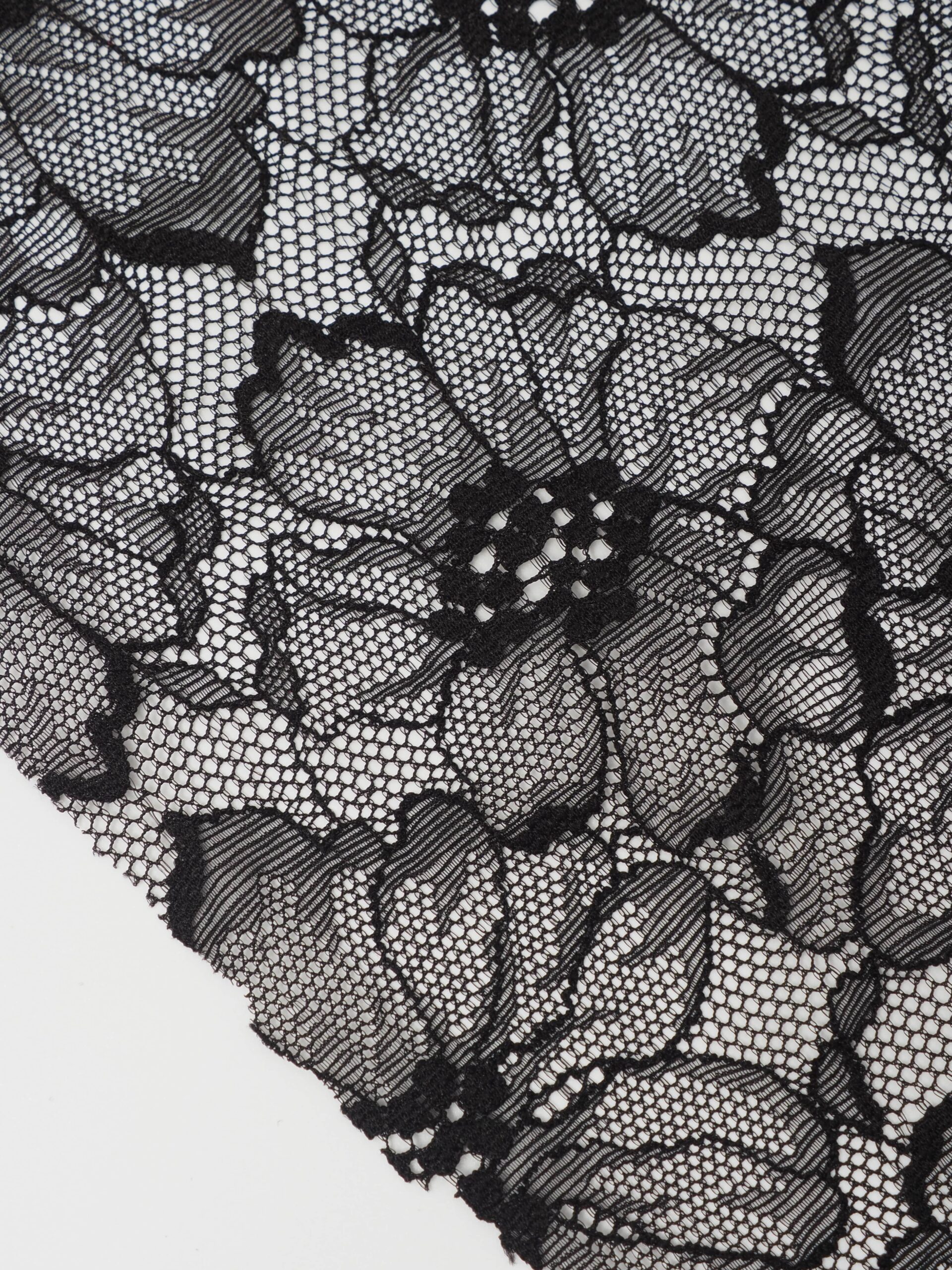 гипюр, кружевное полотно, с эластаном, черный, эластичное