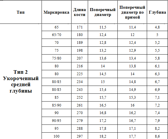 Тип 2 укороченные средней глубины