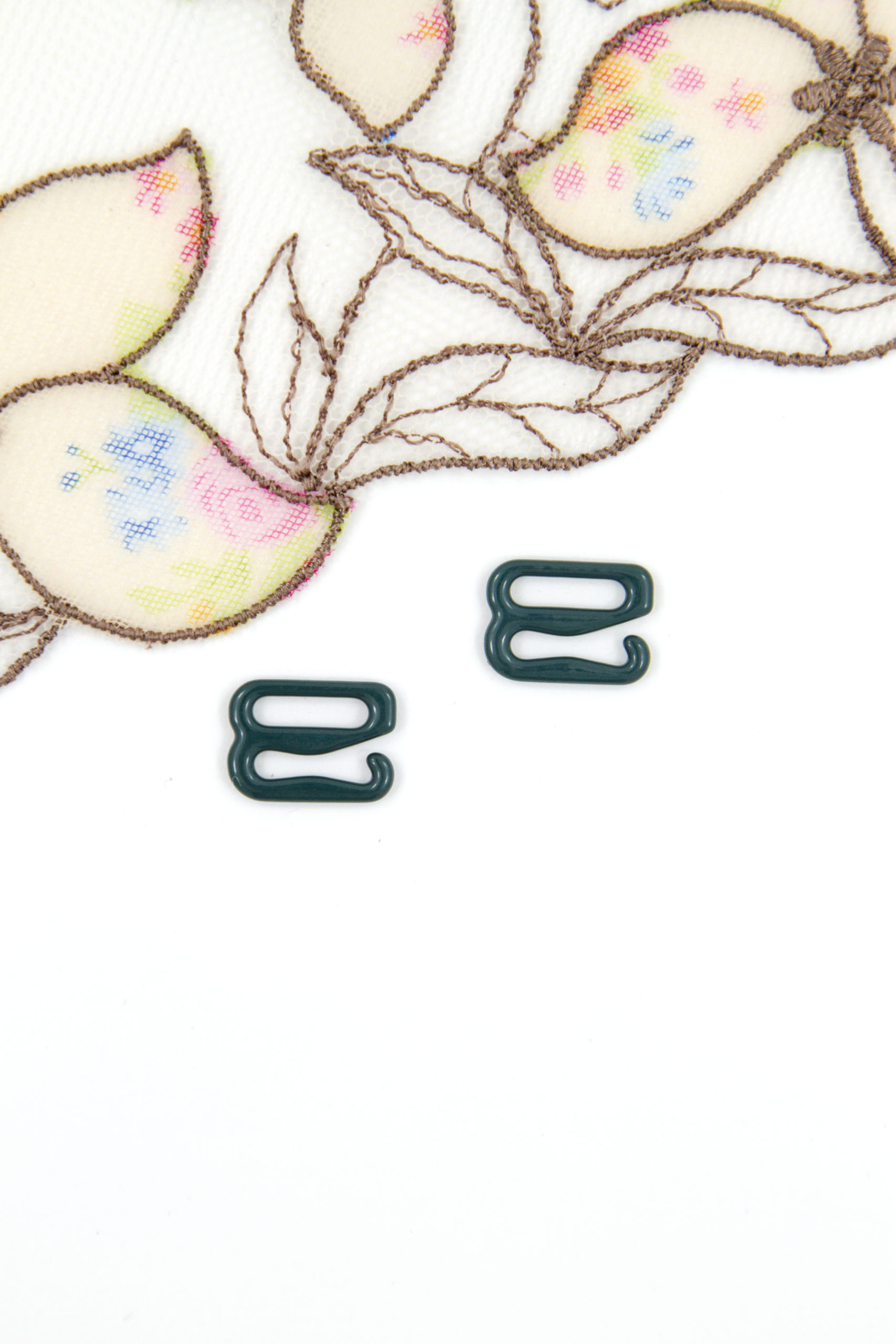 Бельевая фурнитура металлическая с нейлоновым покрытием.