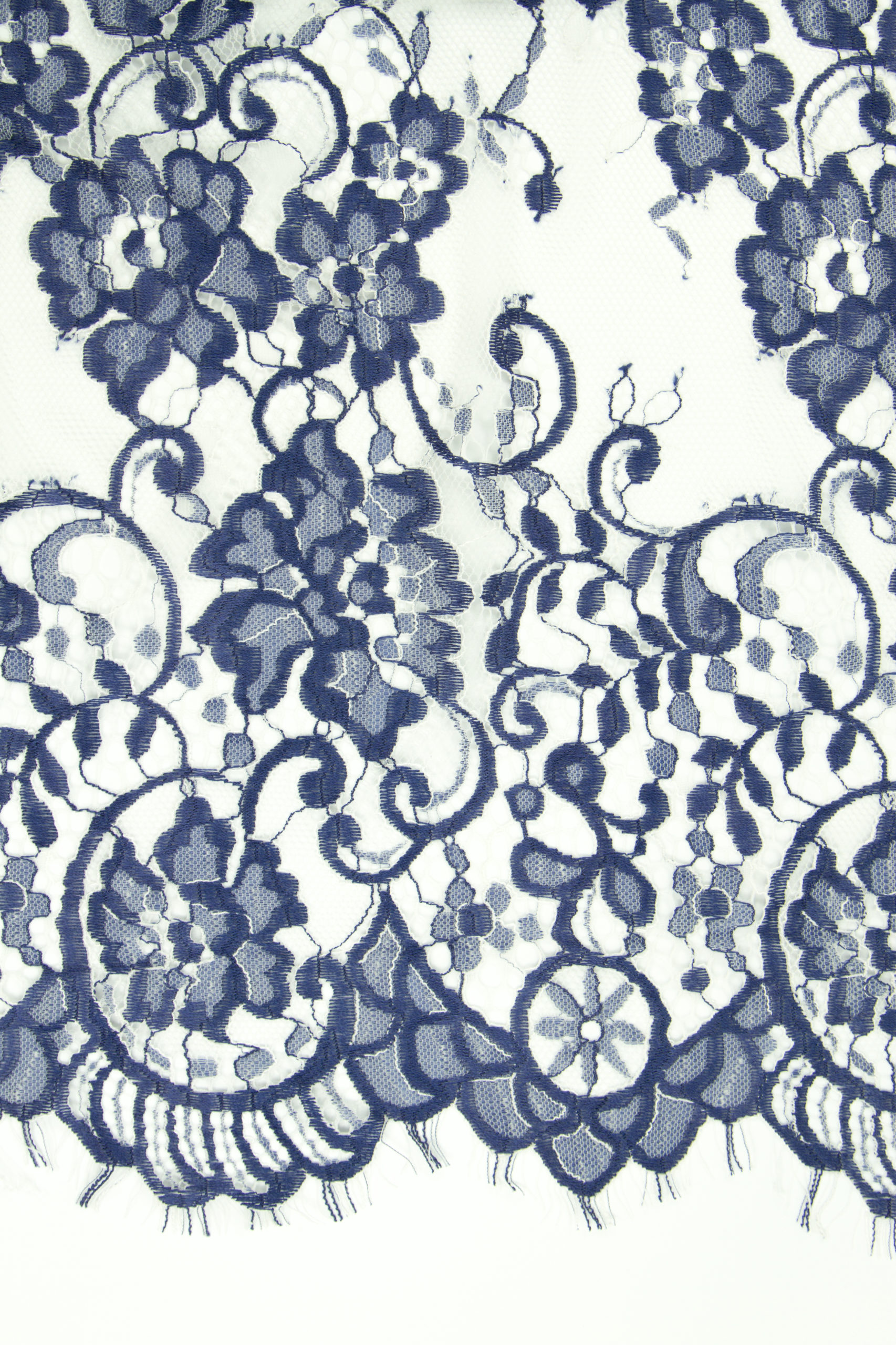 Кружевное полотно неэластичное используется для пошива халатов, пеньюаров и будуарных платьев. Фестон кружева с двух сторон.
