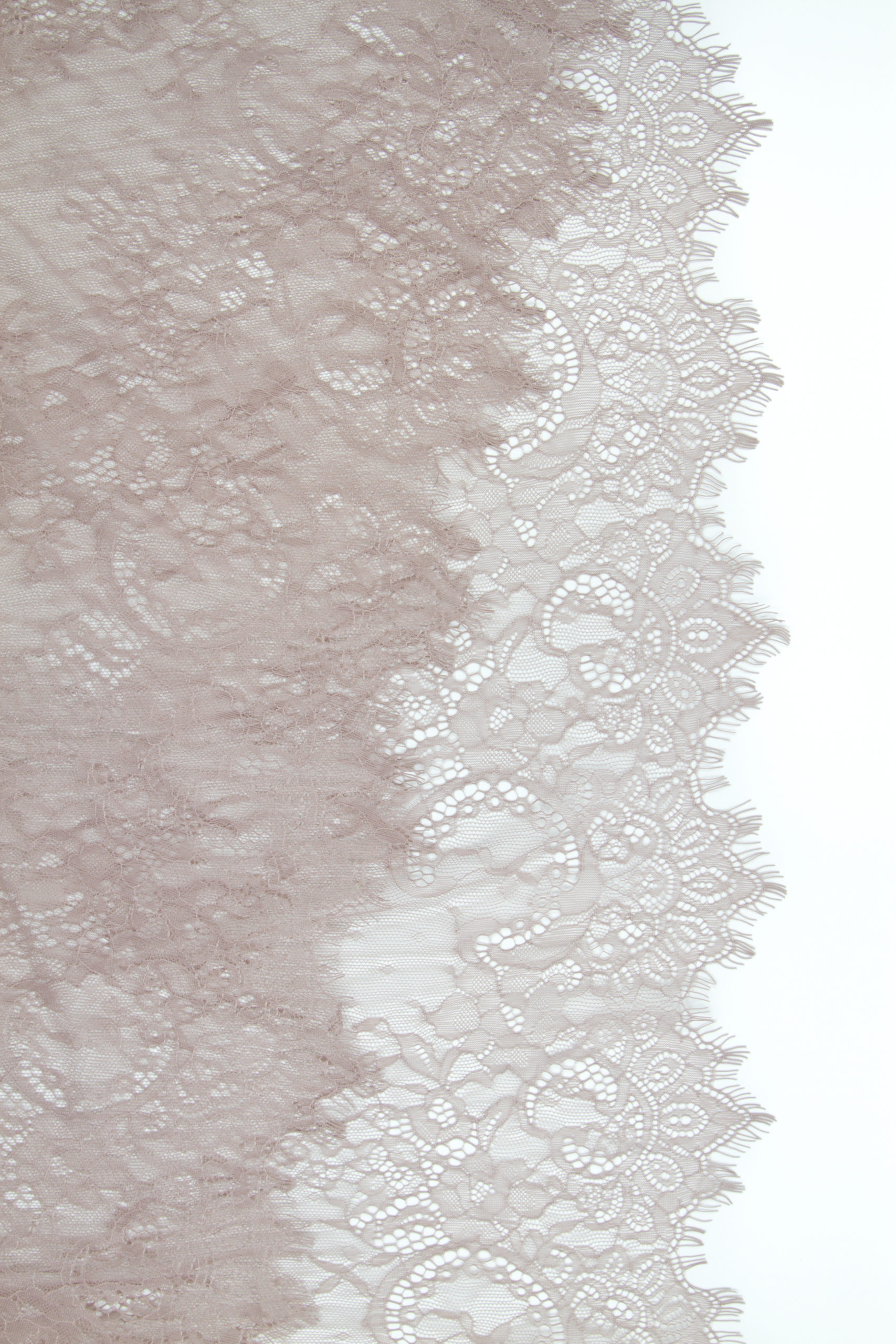 Кружевное полотно неэластичное используется для пошива халатов, пеньюаров и будуарных платьев. Фестон кружева с одной стороны.